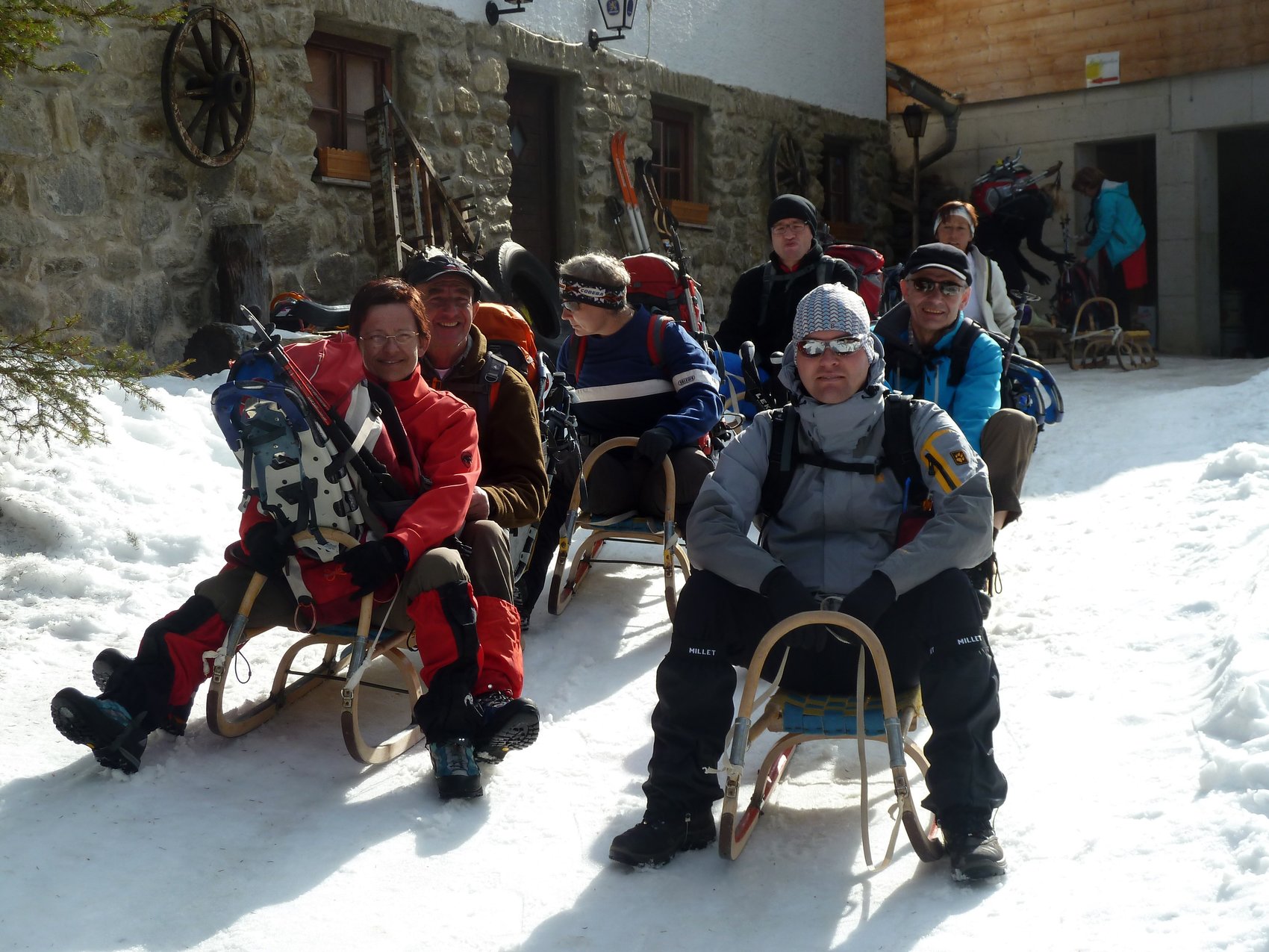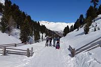Bessere Verhältnisse hätten wir uns für diese Tour nicht wünschen können. Die Schnee-, Lawinen- und Witterungsbedingungen waren optimal, welche wir für unsere Schneeschuhtour gut nutzen konnten. Nach dem kurzen Anstieg zum Alpengasthof Bergheim (1 464 m) und einer fast schlaflosen Nacht ging es am Sonntag unserem Gipfelziel entgegen. Die 4-stündigen Anstrengungen im Aufstieg waren am Gipfel fast vergessen. Bei traumhafter Sicht konnte die umliegende Stubaier Berglandschaft genossen werden. Nach der obligatorischen Gipfelbrotzeit folgte der eigentlich lustige Teil beim Schneeschuhgehen – der Abstieg. Die kleinen Steilstufen zwangen einige Teilnehmer hin und wieder mal zu einer Rutscheinlage auf dem Allerwertesten. Pulverschnee sei Dank, kam bei jeder Rutscheinlage mindestens ein Lächeln heraus! Doch mit dem Rutschen war es noch nicht vorbei. Der Abstieg vom Alpengasthof Bergheim zum Talort Sellrain wurde mit einer rasanten Schlittenabfahrt absolviert.