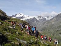 Das Martelltal, eingerahmt von 30 Dreitausender inmitten des Nationalparks Stilfser Joch, war das Ziel für die Tourentage 2012. Bekannt ist das Tal nicht nur für seine Gletscher, sondern auch für die zahlreichen Erdbeerfelder, die bis auf einer Höhe von 1 700 m anzutreffen sind und immer noch viele Blüten und reife Früchte aufwiesen.