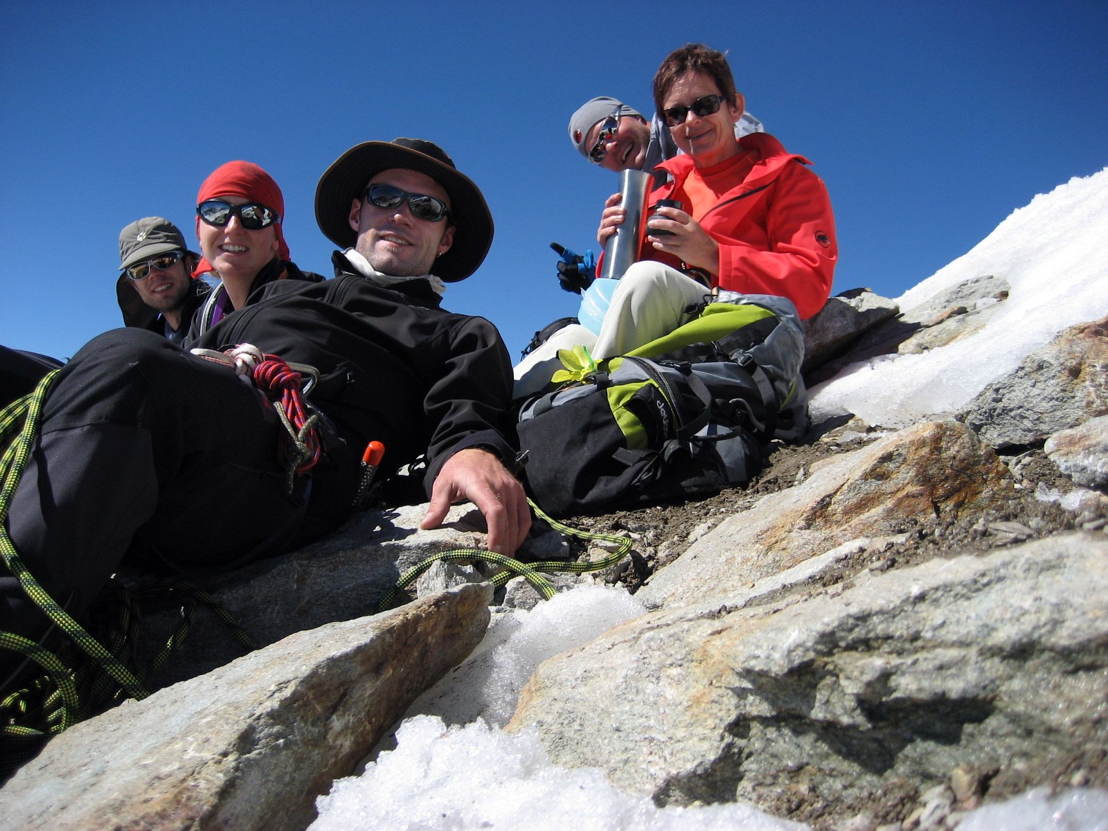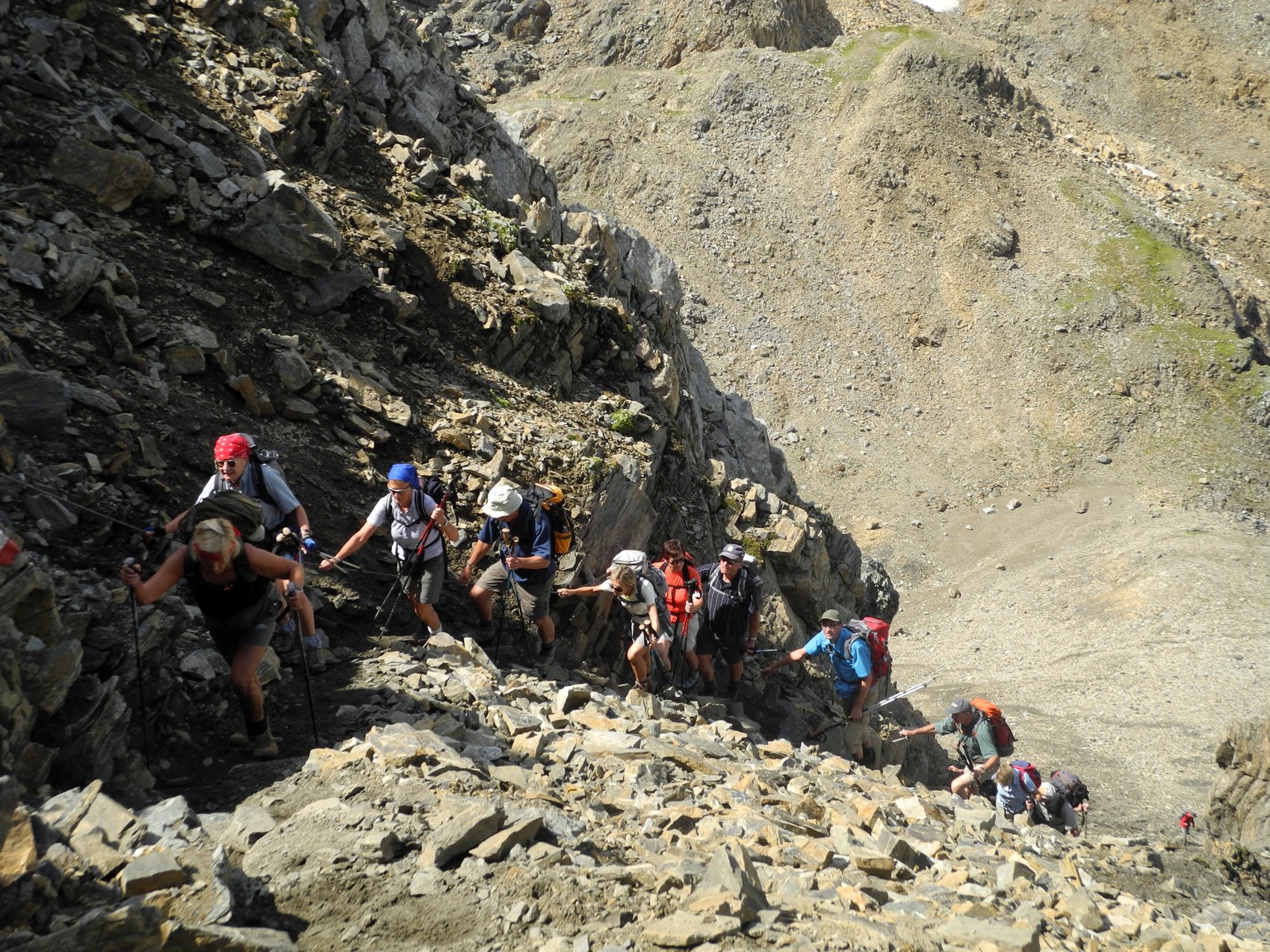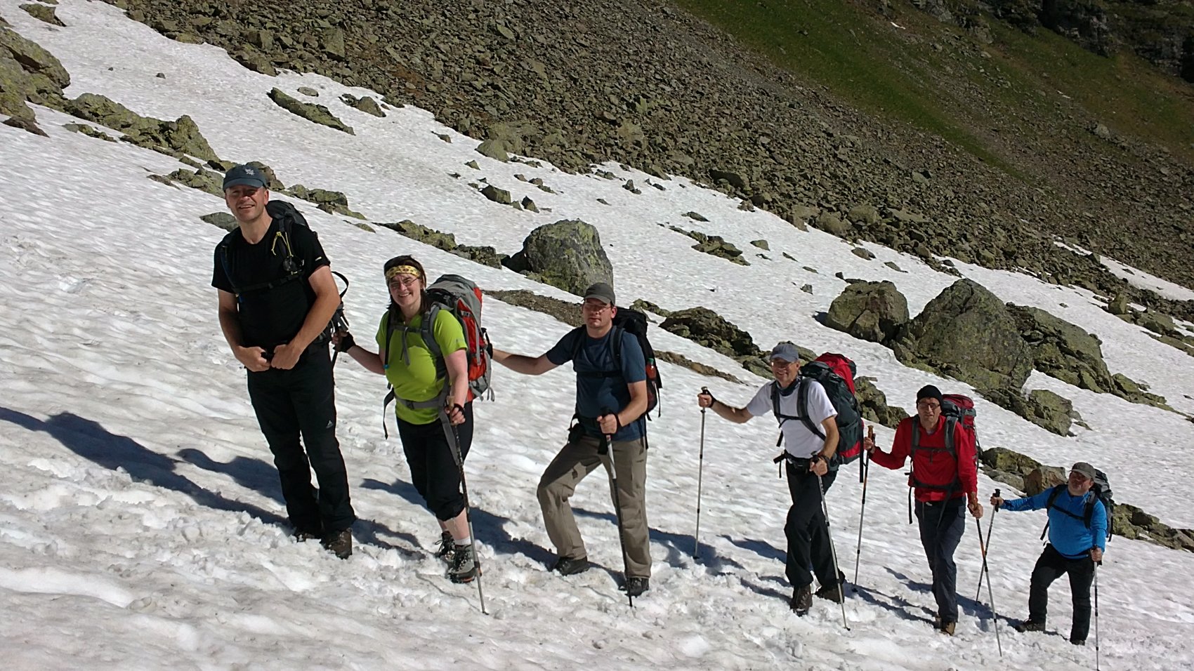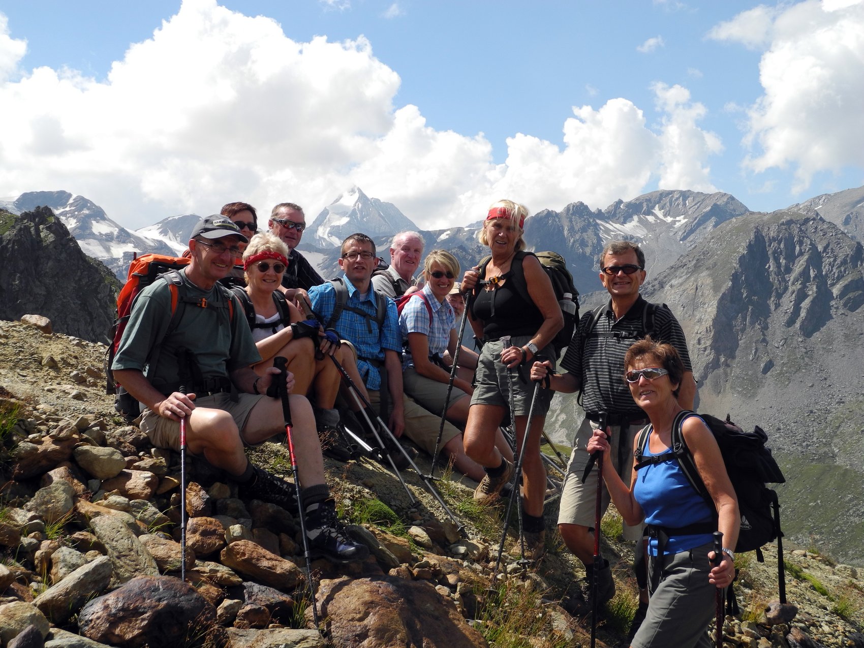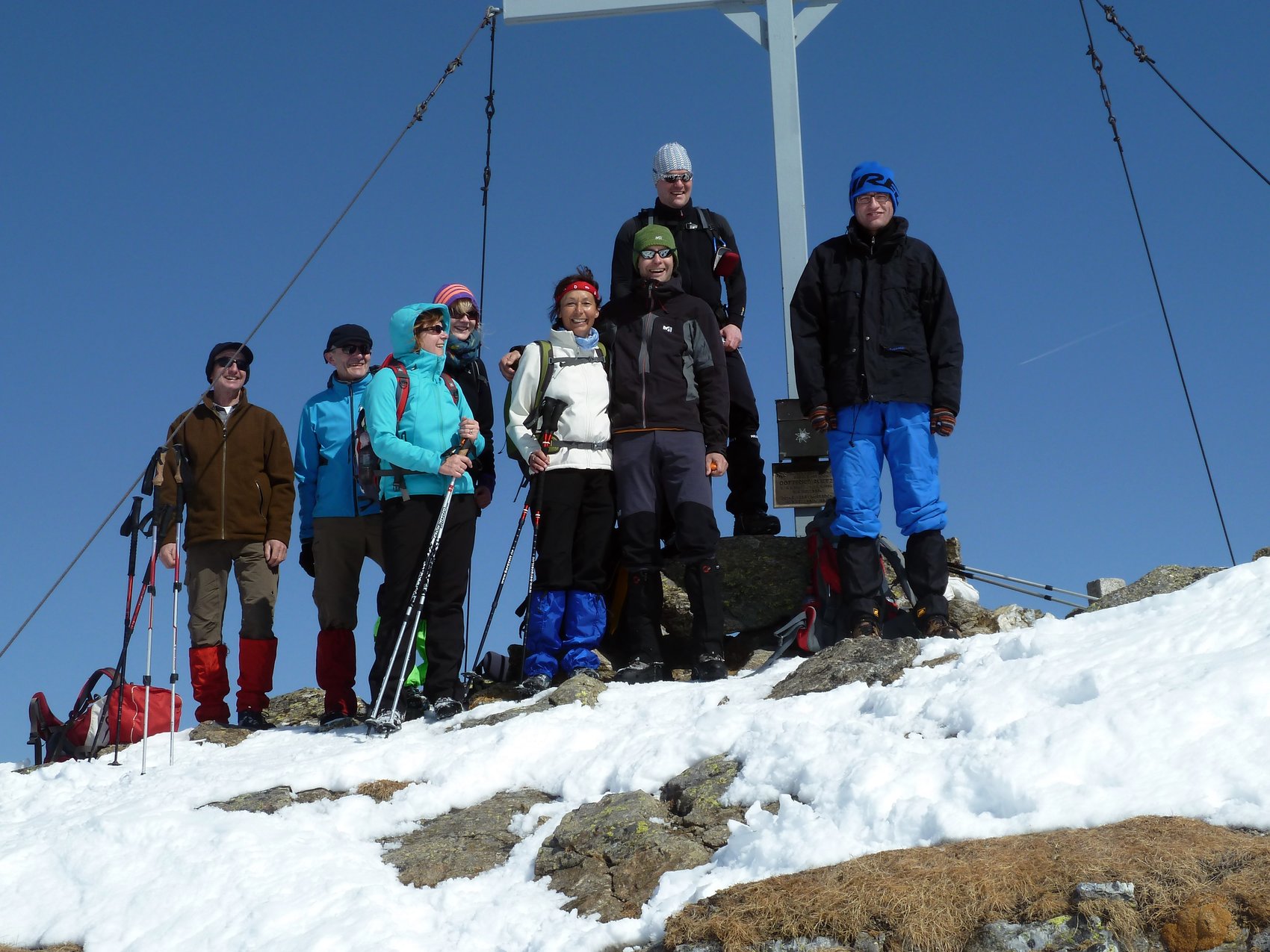 Fazit: Bei dieser Unternehmung lagen Glück und Pech sehr dicht beieinander. Glück hatten wir mit dem Wetter – all die Tage wolkenfreier, blauer Himmel mit bester Fernsicht. Und auch einige der Gruppe konnten die gewählten Ziele erreichen, aber ein Teil der Gruppe hatte bedingt durch kleinere Verletzungen Pech und ihnen blieb leider der begehrte Gipfel verwehrt.