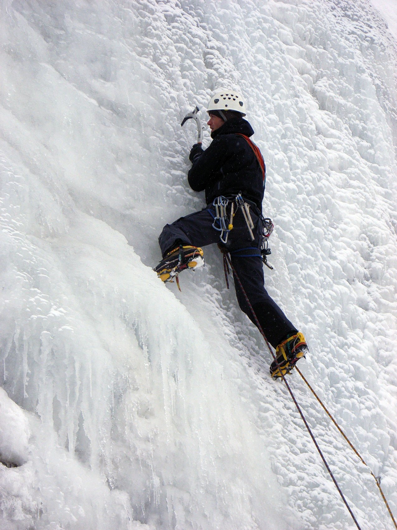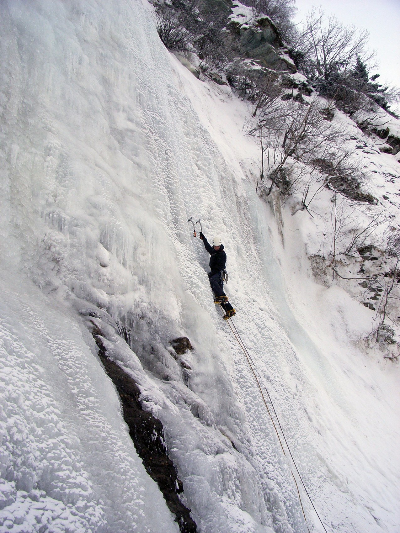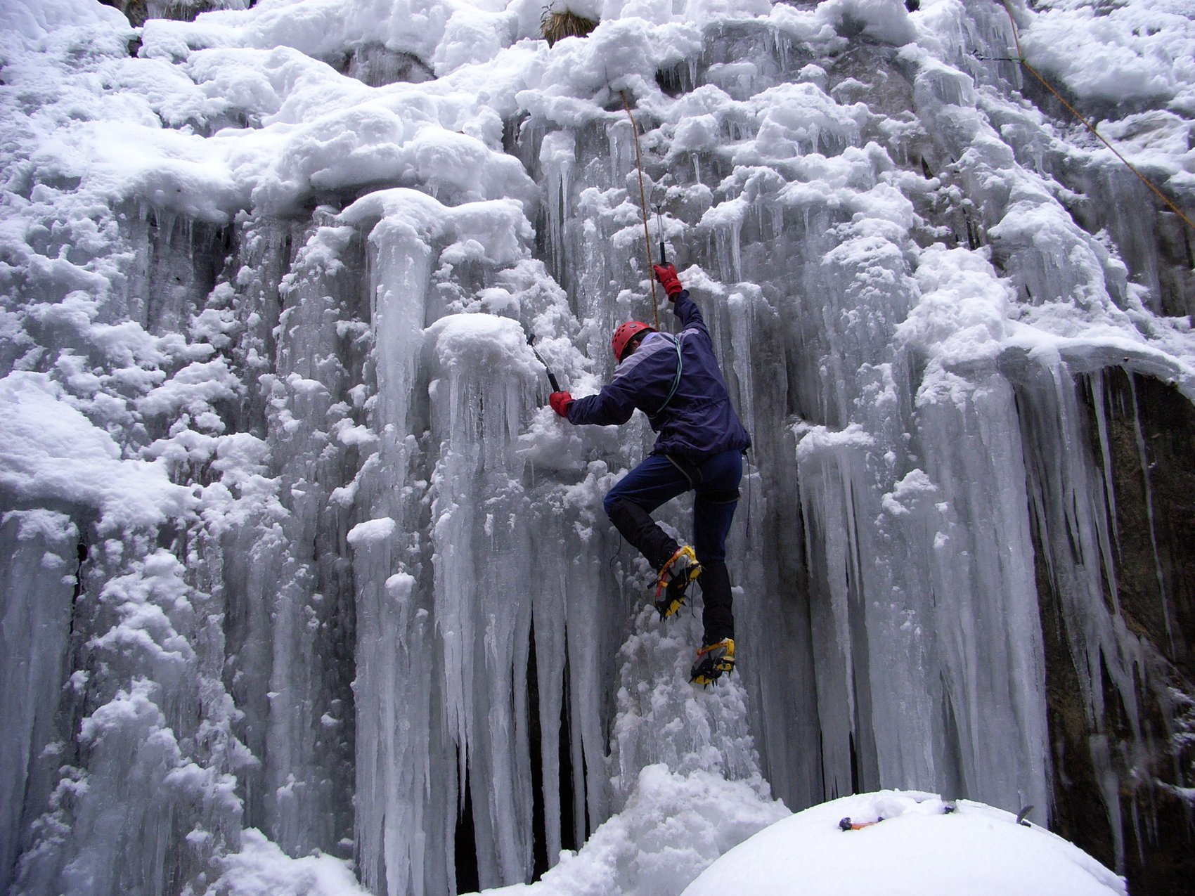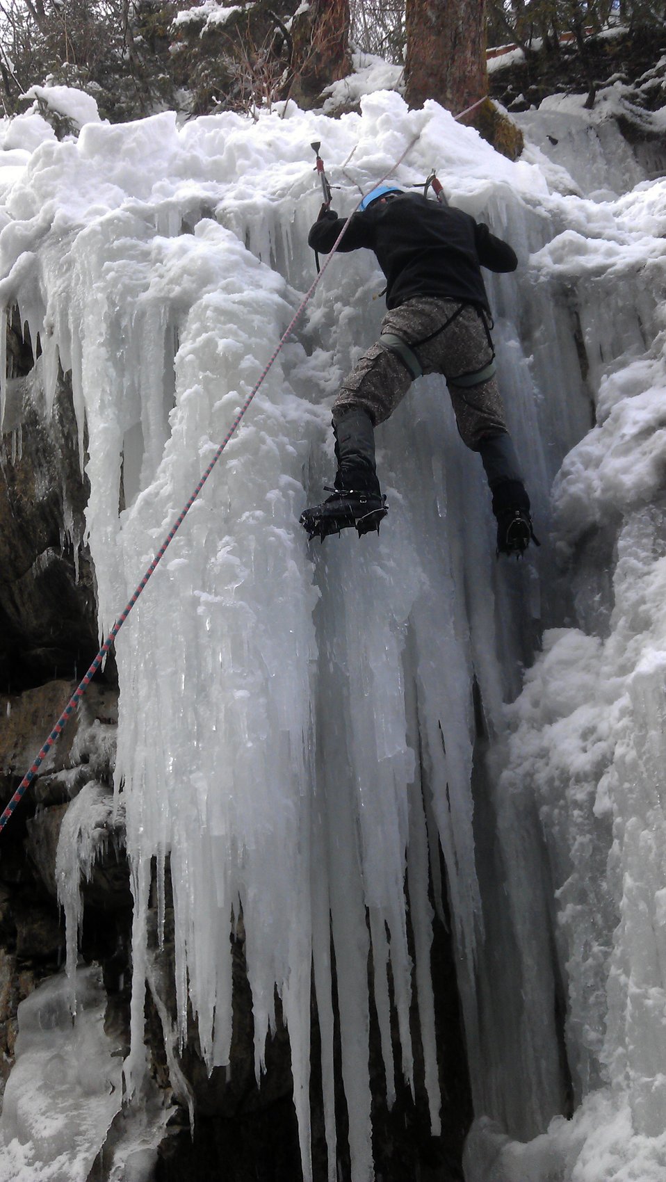 Die Radstädter Tauern zwischen Unter- und Obertauern bieten auf engstem Raum zahlreiche Eisklettermöglichkeiten. Aufgrund der besonderen Lage gibt es hier meist gutes Eis und es besteht keine Lawinengefahr. Für diesen Tag haben wir uns den 30 m hohen Eisfall THE BEGINNER ausgesucht. Verschiedene Linien im Schwierigkeitsgrad WI2 und WI3 konnten geklettert werden. Weitere Klettermöglichkeiten boten uns zwei kurze knackige Eissäulen im Grad WI4+.