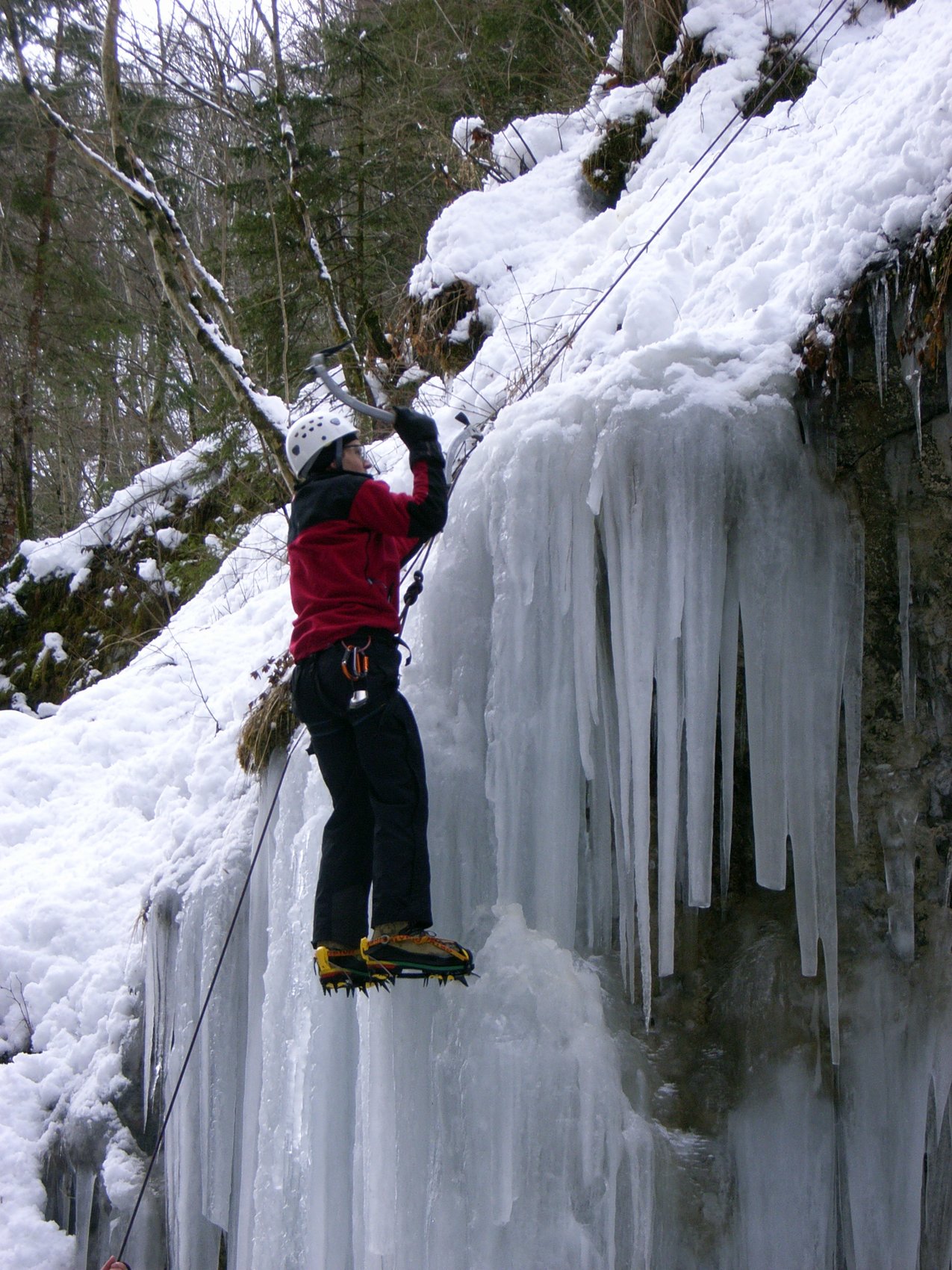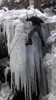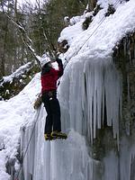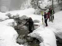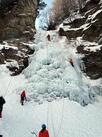 Die Sigmund-Thum-Schlucht hat sich auch dieses Jahr als eissicheres Tagesziel bewährt. Der Eisklettergarten bietet Sportkletterrouten in verschiedenen Schwierigkeitsgraden von 5 m bis 30 m Länge. Nach etwas Übung im Umgang mit Steigeisen und Eisgeräten an geneigten Eisplatten haben wir uns an senkrechtem Eis, Eissäulen und Eisvorhängen versucht. Sowohl die Eisneulinge als auch die alten Hasen sind an diesen Tag auf ihre Kosten gekommen.