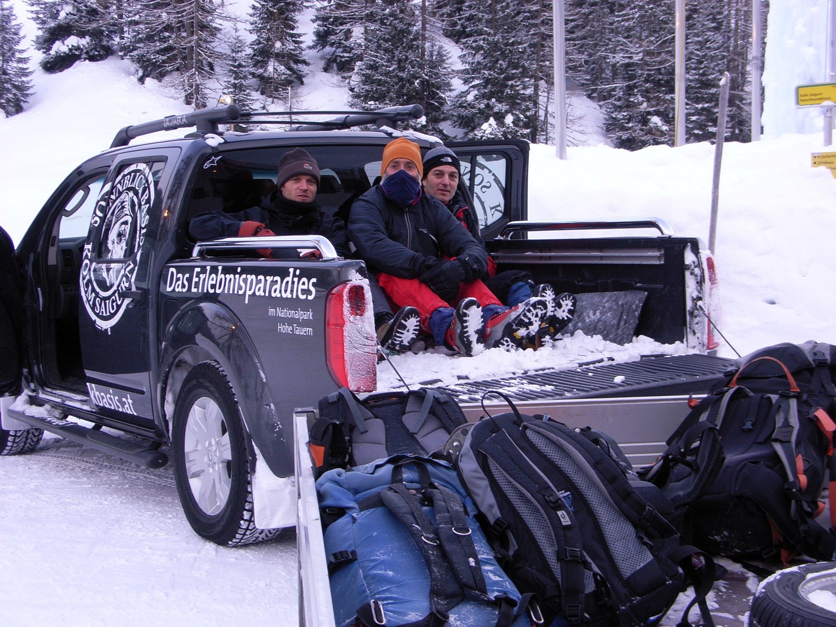 Bei eisigen minus 20 Grad machten wir uns auf zu den Eisfällen im Talschluss des Rauriser Tals. Am Samstag hatten wir mit dem breiten Eisschild der unteren Stufe des Eisfalls Vergissmeinnicht ideale Bedingungen, um 35 m hohe Topropes einzuhängen. Je nach Routenwahl kletterten wir Touren im dritten und vierten Schwierigkeitsgrad. Am Abend konnten wir unsere Glieder in der hauseigenen Sauna unserer Pension wieder auftauen. Am Sonntag zog es uns in die Eisarena Kolm-Saigurn. Mit einem Shuttleservice wurden wir vom Gasthaus Bodenhaus auf der Ladefläche eines Geländewagens in die Eisarena gebracht. Dort angekommen, machten wir uns gleich über die zahlreichen Wasserfälle her. Bis in den späten Nachmittag hinein kletterten wir an den bis zu 40 Meter hohen Eisfällen.