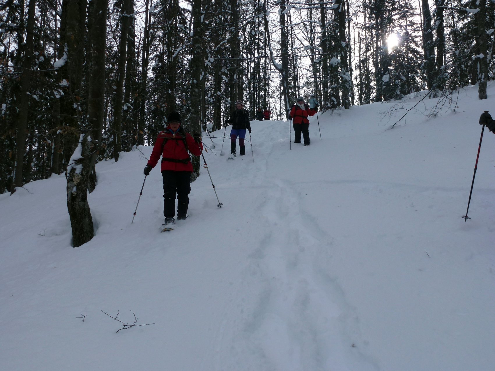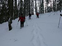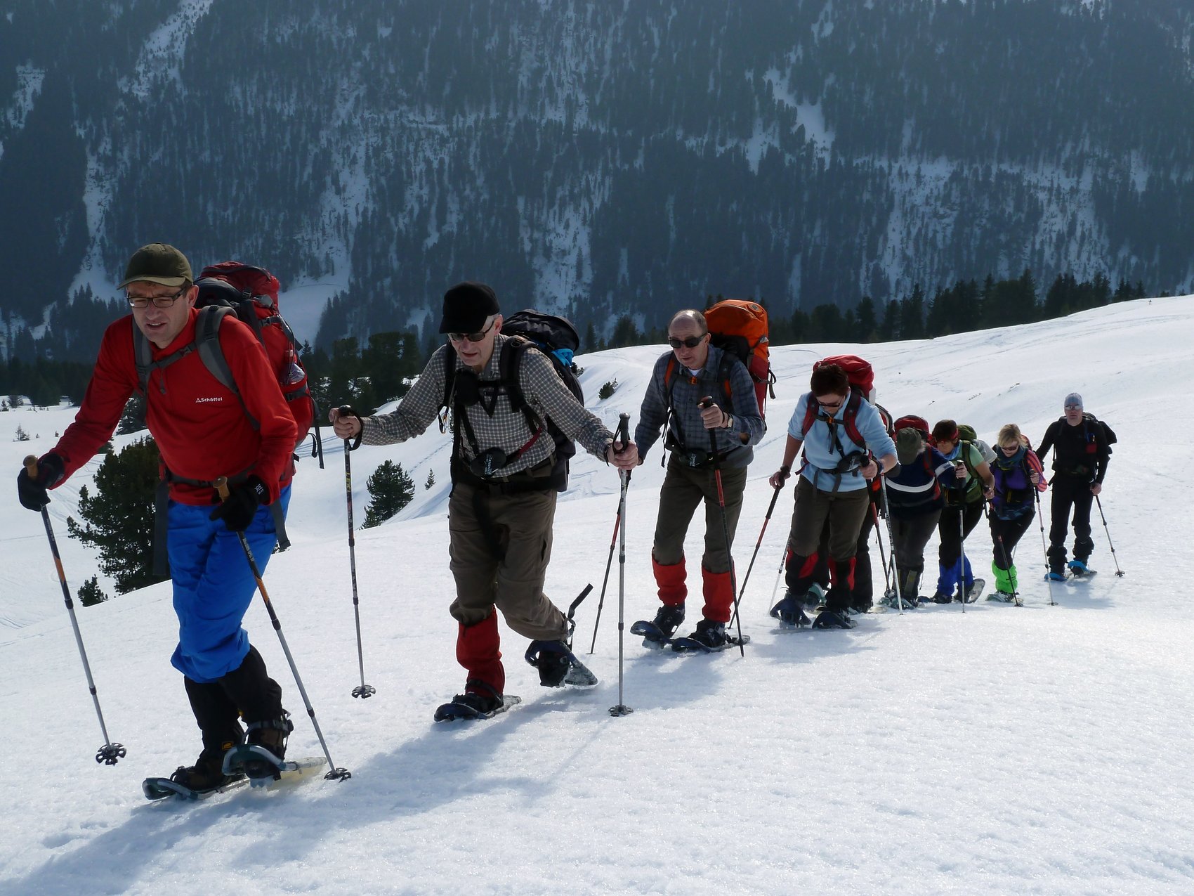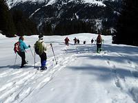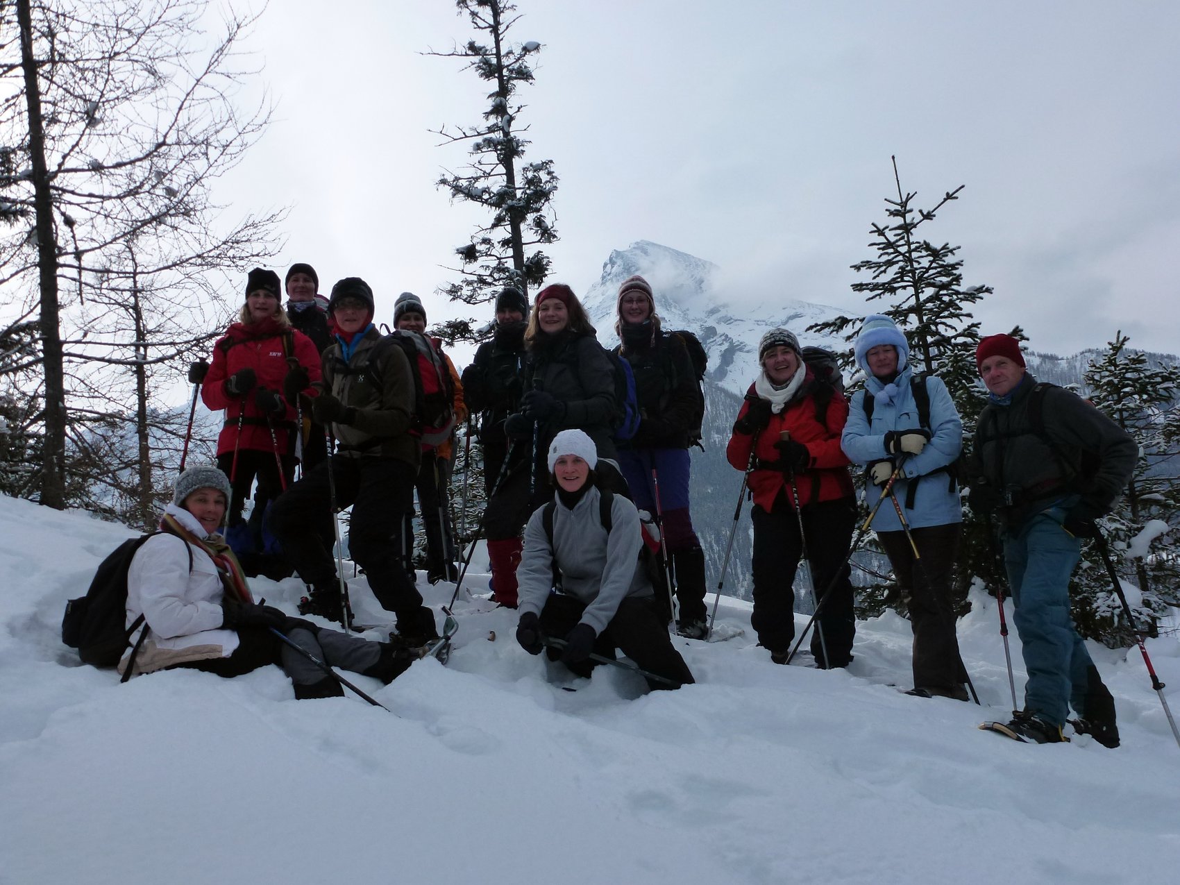 Bei schönem, aber eiskaltem Winterwetter machten sich elf Frauen und zwei Männer mit Schneeschuhen auf den Weg zum Schapbachriedel am Königssee. Durch lichten Bergwald entlang des Bergrückens zogen sie ihre Spur durch unberührten Schnee. Für die Mühen des Aufstiegs wurden sie immer wieder mit grandiosen Ausblicken auf Hochkalter, Watzmann und Watzmannkar belohnt. Nach einem kurzen Abstieg zum Grünsteinhaus folgte noch ein Anstieg zum Grünstein. Nach nur kurzer Gipfelrast, jedoch mit Tiefblick zum Königssee und guter Fernsicht auf die umliegenden Berge, folgte der Abstieg. Über weichen Pulverschnee schwebte die Gruppe fast auf ihren Schneeschuhen zu Tal. Alle Teilnehmer waren der Meinung, es hat sich gelohnt, der Kälte zu trotzen.