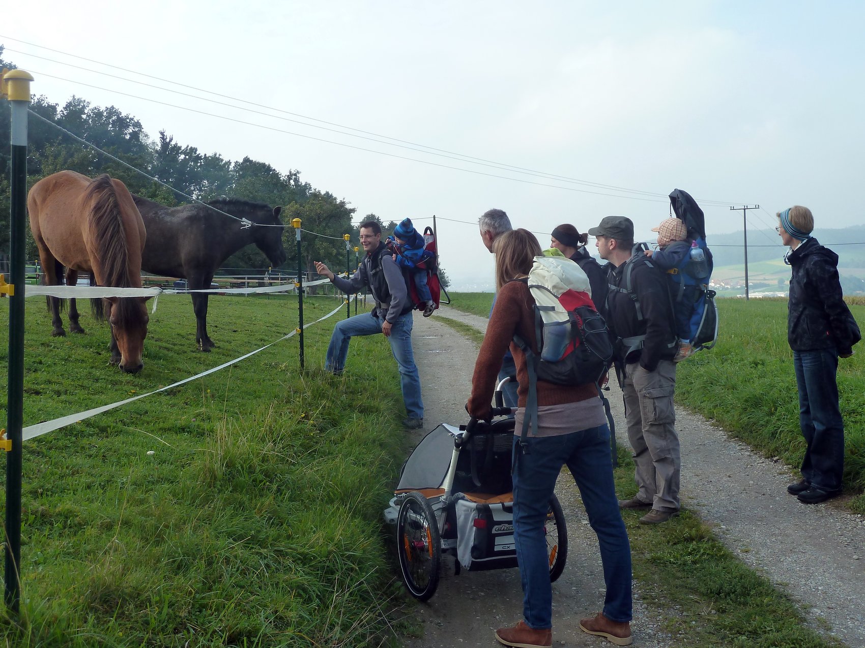 Der höchsten Erhebung des Landkreises Rottal-Inn haben wir einen Besuch abgestattet. Die Voraussetzungen für unsere Tour waren gut – Sonnenschein und ein breiter Wanderweg, wo die Kinder einige Streckenabschnitte selbst bewältigen konnten. Bei Obersimbach, unweit der Asenbergalm, begann unsere Wanderung. Hier waren die Pferde und Ponys, die von den Kindern einige Steicheleinheiten erhielten, das Höchste. Danach schlängelte sich der Weg durch den Mischwald. Nach einer knappen Stunde kamen wir an der Waldkapelle an. Neugierig blickten wir ins Innere der kleinen hölzernen Kirche. Von hier an war es nur noch ein kurzes Stück bis zu unserm Tagesziel, dem Schellenberghaus. Nach ausgiebiger Stärkung ging es zum „Gipfel“ des Schellenberges. Die Enttäuschung war groß, als dieser Gipfel sich als viereckiger Vermessungspunkt mitten im Wald entpuppte. Dafür kamen wir bei unserem Rückweg an einem großen Fernsehturm vorbei. Kurz bevor wir an unserem Ausgangspunkt wieder ankamen, war auch das letzte Kind wieder hellwach. Schließlich wollte niemand die Tiere der Asenbergalm verschlafen!