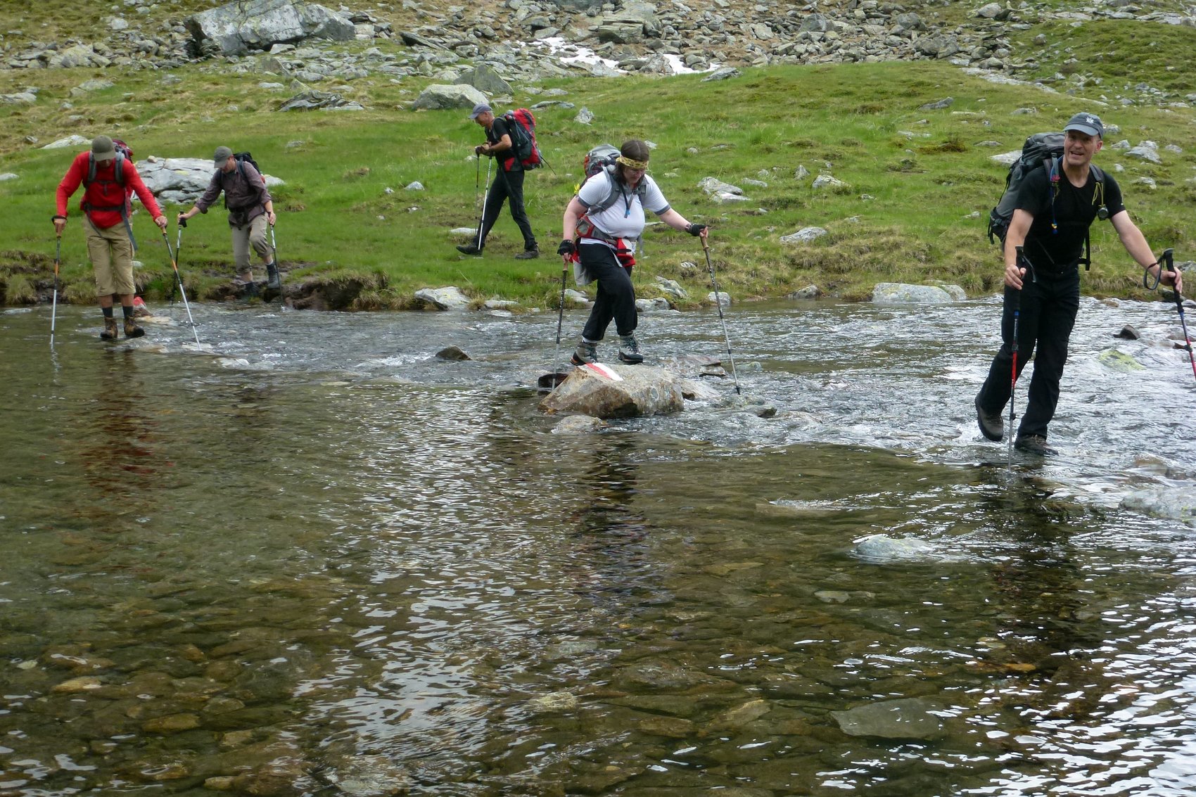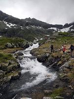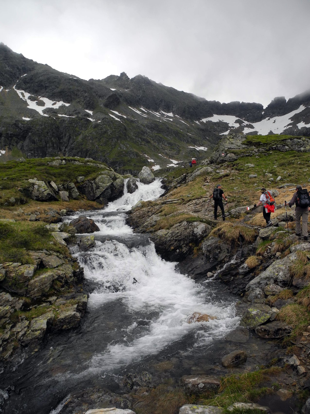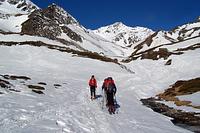 Der obere See war mit einer dicken schwimmenden Eisscholle bedeckt und einige Passagen und Bachübergänge waren stark überfluten und wir mussten diese respektierlich umgehen.