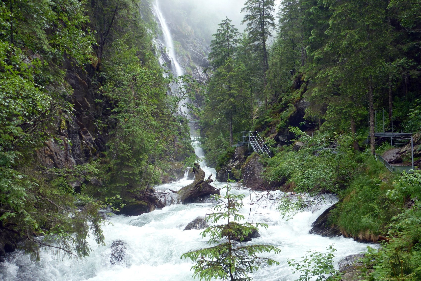 Beim Rückweg über die Preinthaler Hütte und den Riesachsee wollten wir die Urgewalt des Wasserfalls nochmal erleben und sind, dem Wasser folgend, den alpinen Steig abgestiegen.