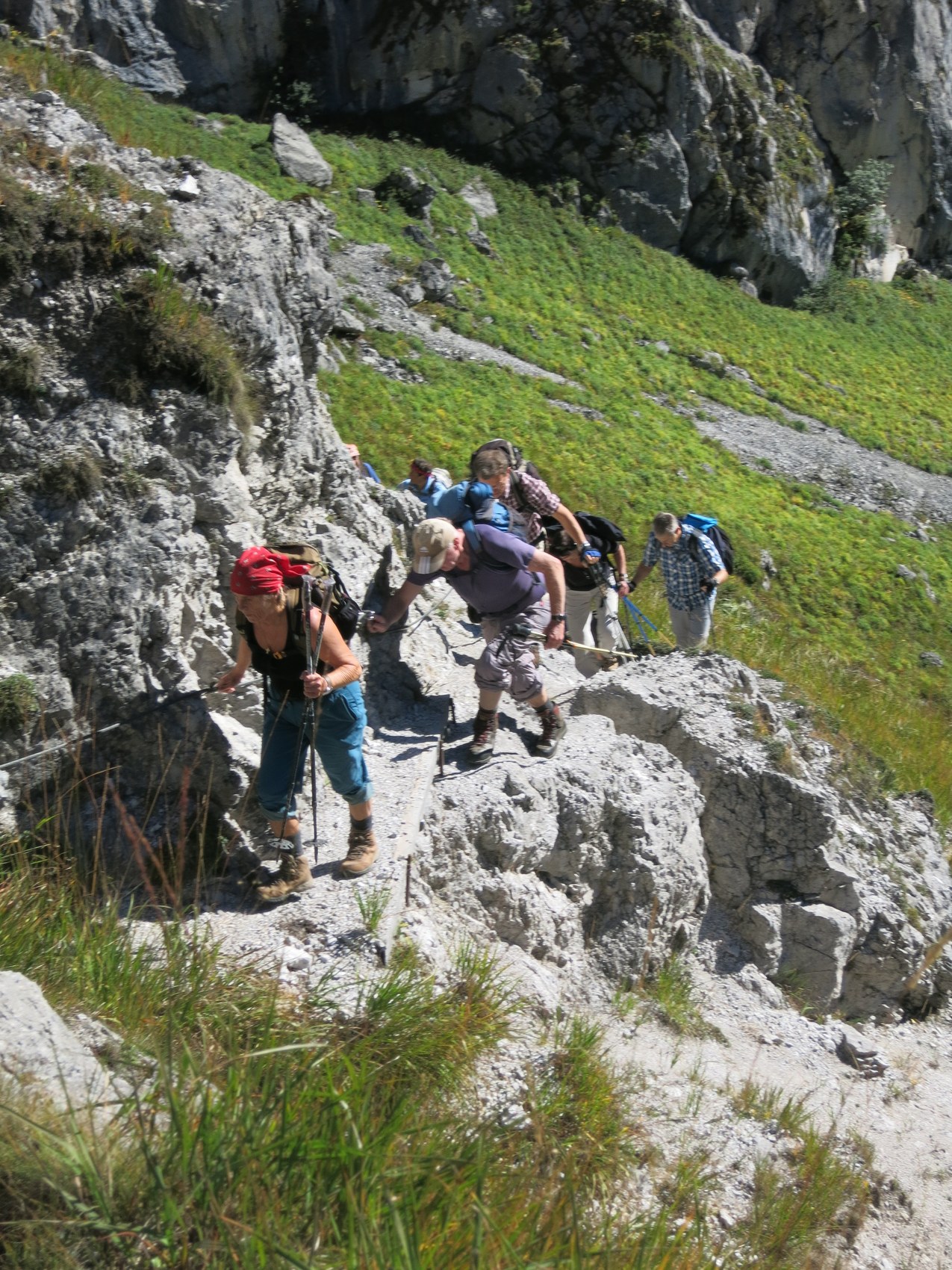 Auf dem Weg zum Brett konnten wir einige Rudel Gemsen beobachten, die uns ziemlich nahe rankommen ließen. Oberhalb vom Stahlhaus wurde es neblig und es hatte nur noch 12 Grad, also keine Sicht. Dafür war der Abstieg durch den Nebel glatt und anstrengend. Am Stahlhaus verabschiedeten wir uns von Michael, der leider nach Wurmannsquick zurück musste. Am nächsten Tag war es ab dem Schneibstein-Gipfel schön und sonnig und auf dem Weg zum Seeleinsee sahen wir einige Steinböck mit ihren Jungen. Es wurde doch 17.00 Uhr bis die kleine Reib’n zuende war.