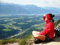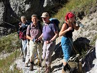 Daß für eine gelungene Bergtour nicht unbedingt das Erreichen eines Gipfels erforderlich ist, bewiesen wir mit dieser Unternehmung. Bei für diese Jahreszeit recht kühlem, aber sonnigem Wetter ging es durch die romantische Wimbachklamm das Tal hinein bis zum Wimbachschloss, von da an auf einem steilen und in den Felspassagen versicherten Weg hinauf bis zur Scharte. Der ganze Anstieg war geprägt von beeindruckenden Blicken zum Watzmann und Hundstod. In der Scharte erweiterte sich der Blick hinüber zum Hochkalterstock. Bei angenehmen Temperaturen und Windstille genossen wir die Pause. Hinunter ging es über Hochalm und Eckaualm in einer schönen Runde zurück zur Wimbachbrücke.