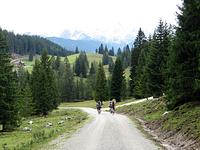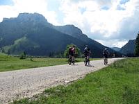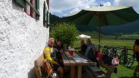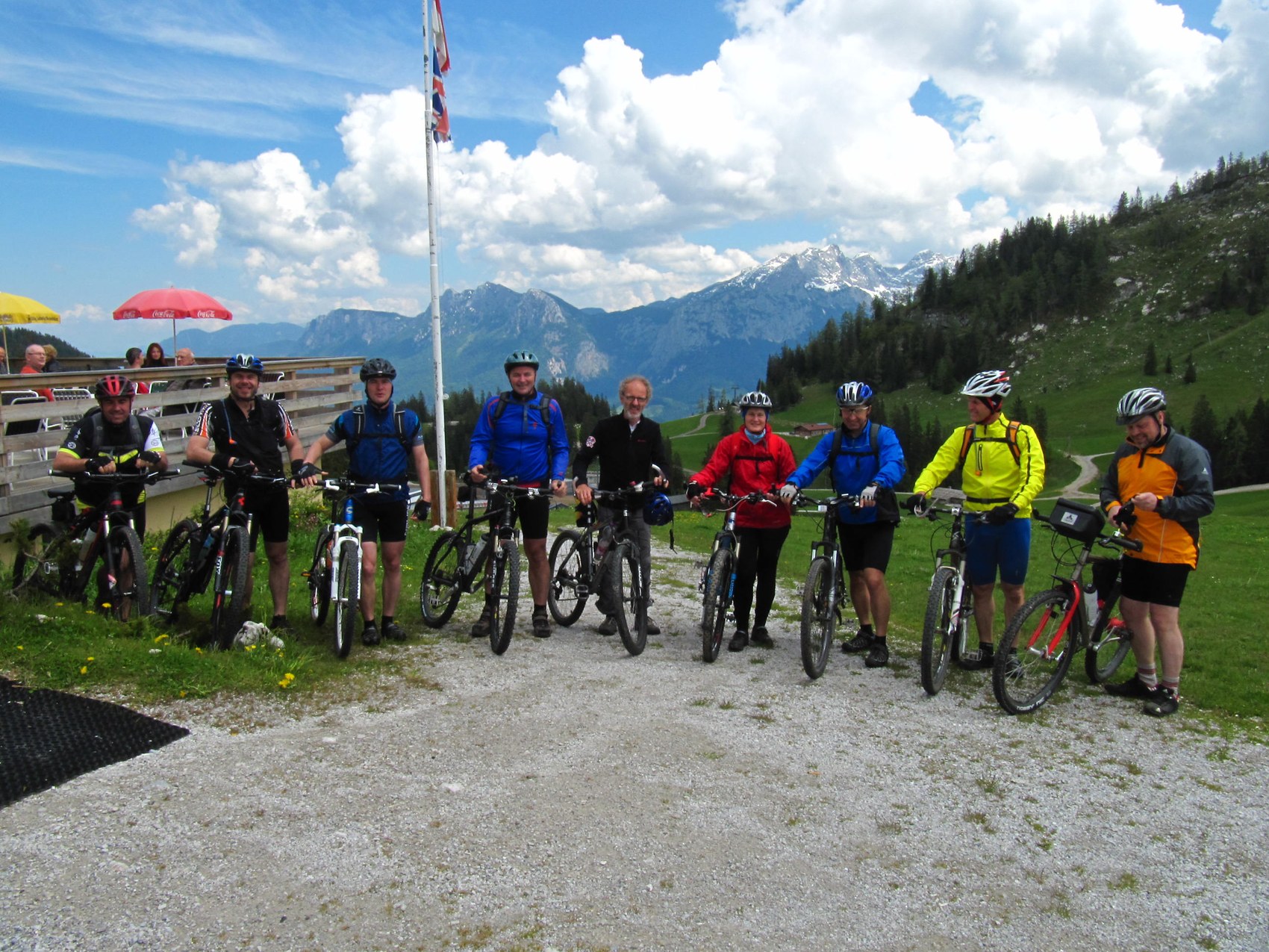 Die Auffahrt entlang des Unkenbaches und über Forst- und Almstraßen bei gemächlichem Tempo zur Loferer Alm war wahrlich ein Genuss. Auf dem Almplateau angekommen, erwartete die Radfahrer Sonne und eine Alm zur Einkehr. Gut gestärkt machte sich die Gruppe an die Abfahrt ins Tal, der Sturz eines Teilnehmers ging Gott sei Dank einigermaßen glimpflich aus.