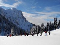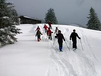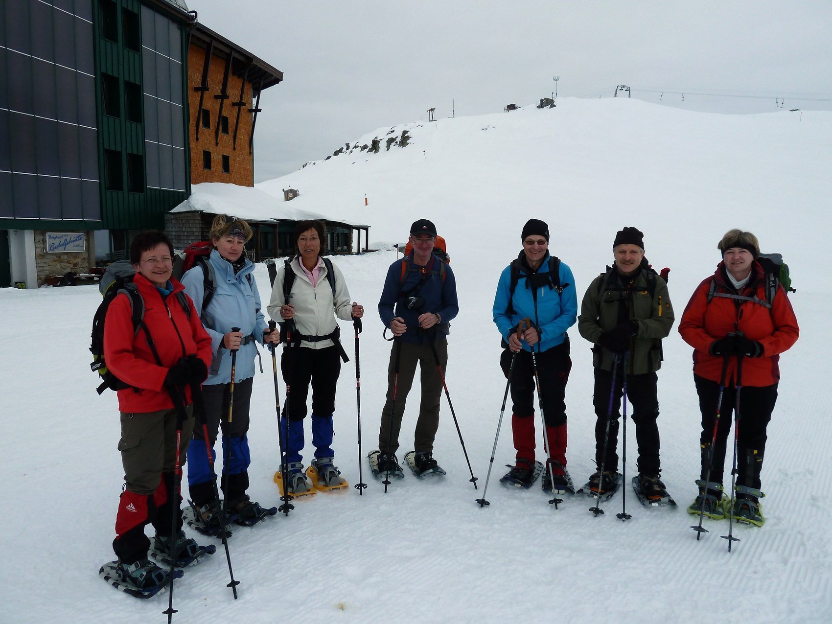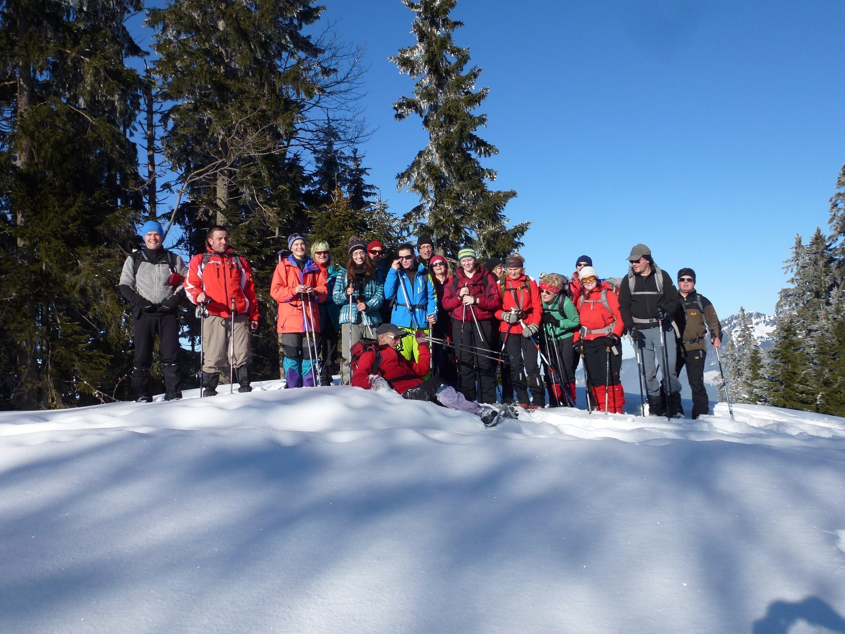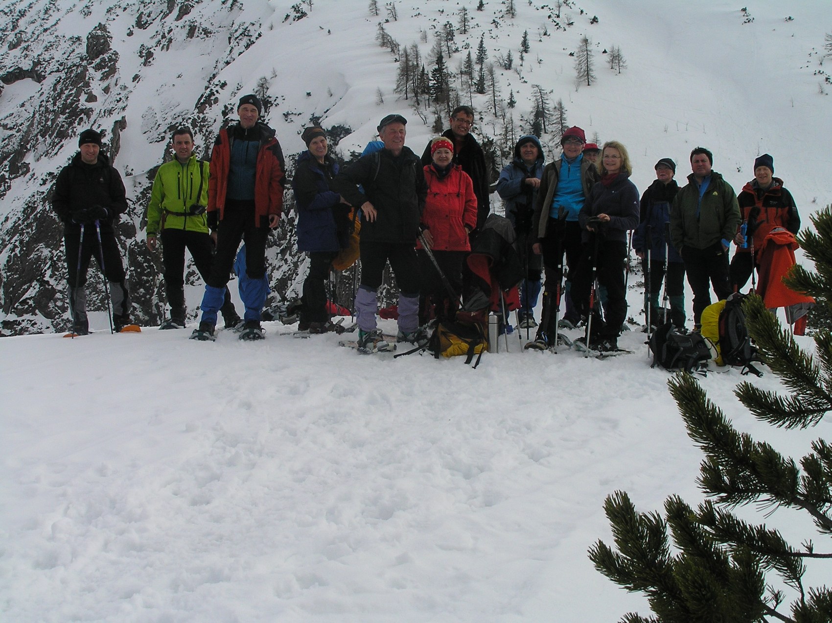 „Allzu viel Schnee ist’s aber nicht!“ war der erste Kommentar der Teilnehmer, als wir aus dem Bus stiegen. Bei sonnigem Wetter machten sich die 9 Teilnehmer über die Niederalm an den Aufstieg zum Gipfel des Floch.