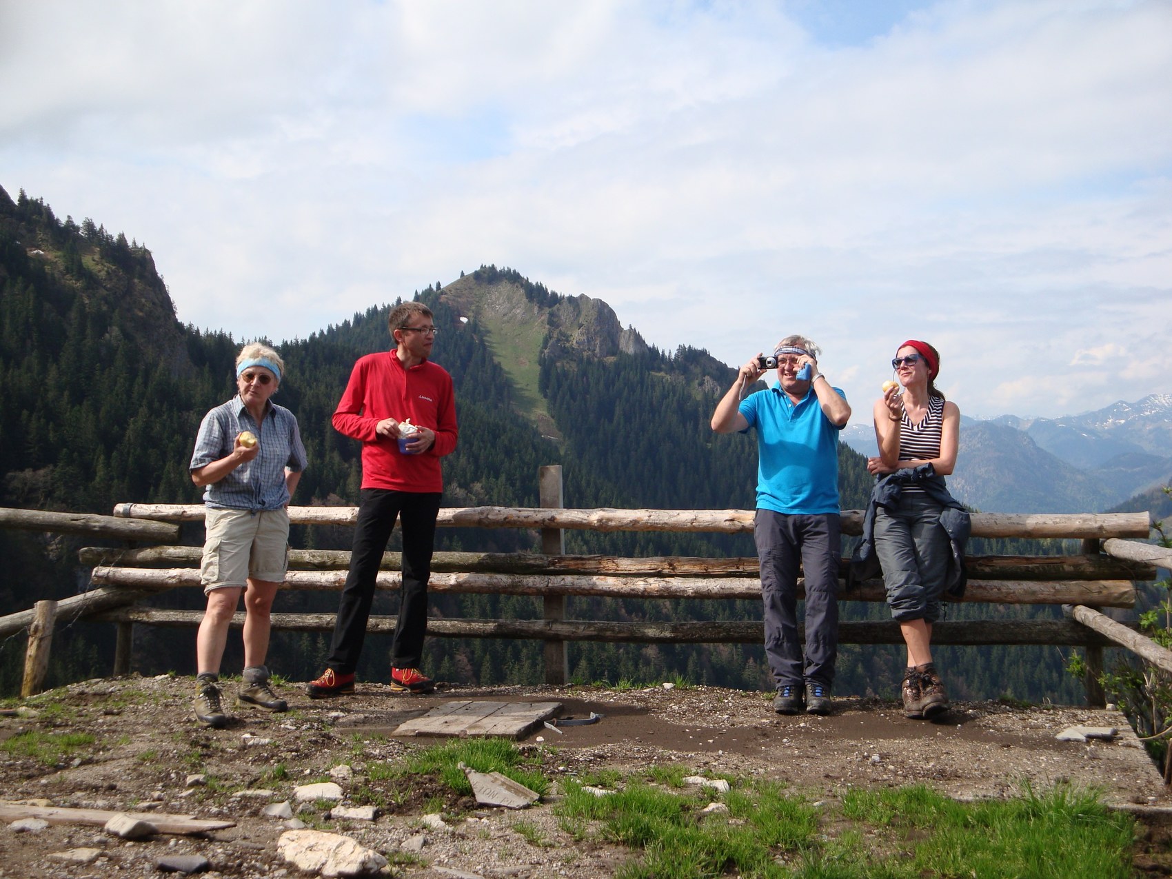 An diesem schönen Mai-Tag waren wir zu Zwölft auf drei Berggipfel unterwegs. Das erste Ziel war der Hochries, den wir nach ca. zwei Stunden erreichten. Am Gipfelhaus wurde zum ersten Mal eingekehrt. Nun ging es zum nächsten Gipfel, dem Karkopf. Der Abstieg von diesem verlangte etwas Trittsicherheit. Zu guter letzt ging es noch auf das Feichteck, wo wir noch eine größere Gipfelrast einlegten. Der Abstieg ins Tal führte uns dann noch an der Doaglalm vorbei. Hier wurde noch mal Eingekehrt und nach einer halben knappen Stunde waren wir wieder am Parkplatz.