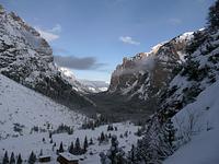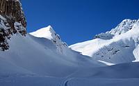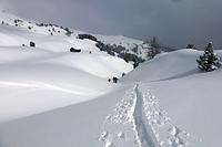 Die letze Tour führte uns noch ins Val Tamersc in Richtung Lavinores (2 240 m). Über eine steile alte Militärstraße ging es hinauf zur Forcla Lavinores. Bei Pulverschnee legten wir unsere Spur zur Fedara-Hütte und hatten die letzten unverspurten Hänge ganz für uns.