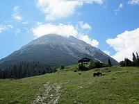 Aufgeschoben ist nicht aufgehoben. – Und so starteten ein Jahr später acht Bergsteiger in die Mieminger Berge. Gemütlich gestaltete sich der erste Tag, da nur der Aufstieg auf die Rauthhütte auf dem Programm stand. Wenn auch nicht lang, aber steil und schweißtreibend war der Weg, der im Winter als Rodelbahn genutzt wird. Gut ausgeruht machten wir uns am nächsten Tag auf den Weg zum Ostgipfel der Hohen Munde. Durch die felsige Latschengasse des Hütterrinners ging es zu den freien, von Steilstufen durchsetzten Osthängen. Über Gras, Schutt und viele Karstfelsen, in Kehren aufwärts erreichten wir über den Grat den Ostgipfel auf der geräumigen, sehr steinigen Hochfläche. Während sich die nahe Zugspitze in den Wolken versteckte, konnten wir aber die Tiefblicke ins Inntal, in den langgestreckten breiten Talboden von Leutasch und auf die schneebedeckten Stubaier Berge genießen. Nach ausgiebiger Gipfelrast machten wir uns an den Abstieg, der wiederum unsere ganze Konzentration forderte. Groß war die Überraschung, als sich der einsam wartende Wanderer als das Sektionsmitglied Konrad Fronhöfer entpuppte. Er war vor etlichen Jahren in die Gegend von Garmisch gezogen und nutzte die Tour, um bekannte Gesichter zu treffen. So gab es zurück an der Rauthhütte noch allerhand zu erzählen. Den Abstieg zum Bus nahmen wir ganz einfach über die alte Skipiste. Beim Blick zurück zeigte sich die Hohe Munde in ihrer ganzen Schönheit.