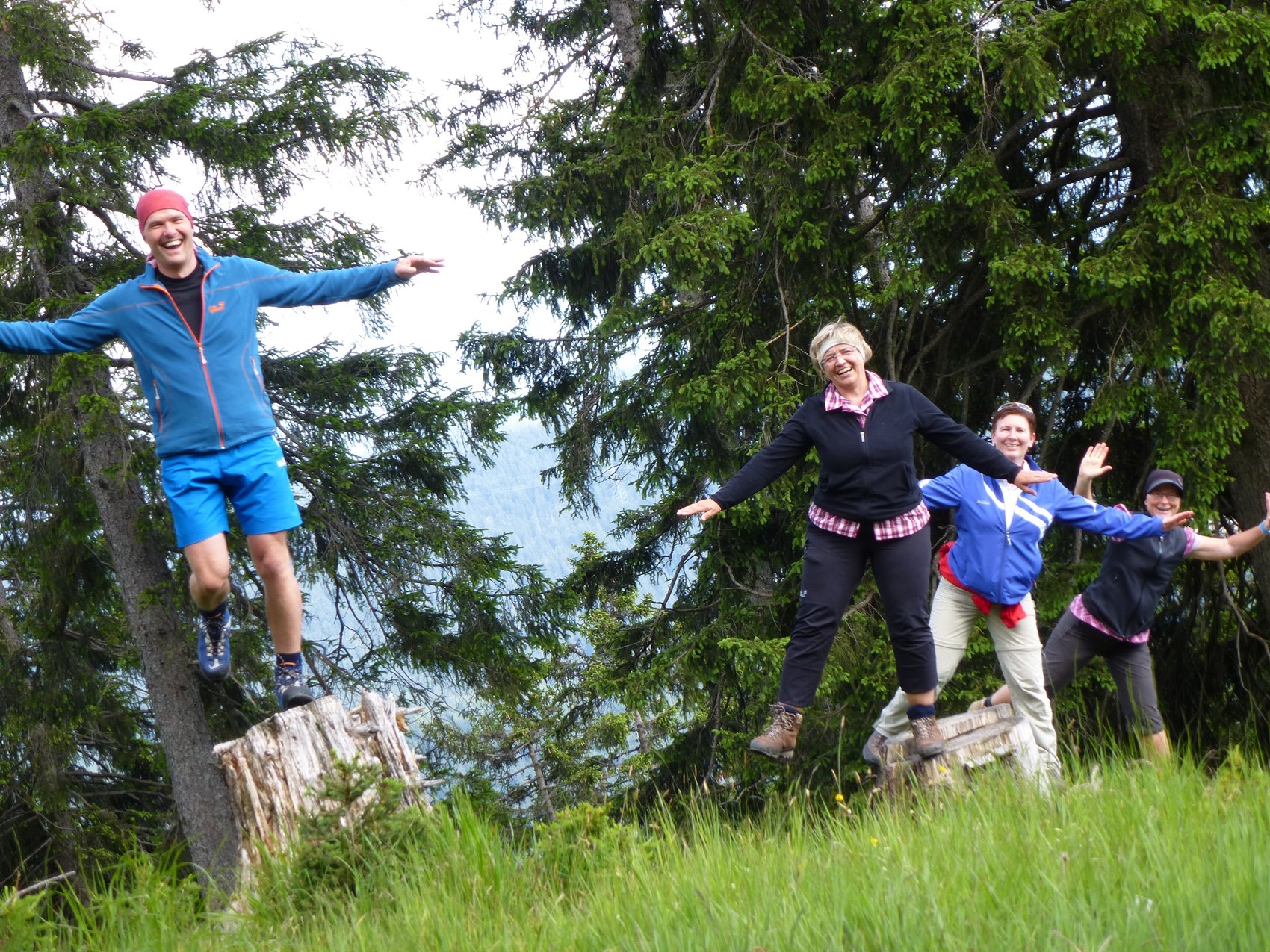 Nachdem die Anfahrt zum Bärnbadhaus aufgrund des vielen Regens nicht passierbar war, wählten wir den Anstieg vom Parkplatz Schneeberg aus. Auf dem Gipfel des Feuerköpfls angekommen, wurden wir mit einer traumhaften Aussicht auf das Inntal belohnt. Ein idealer Platz für eine kurze Pause. Dann stellte sich auf dem weiteren Weg beim Anblick des Blütenmeeres entlang des Weges die Frage: „Wem gehören diese schönen Blumen und Wälder?“ Nicht allen war bekannt, dass sich diese im Eigentum von König Drosselbart befinden. Nach einer gemütlichen Gipfelbrotzeit setzten wir unsere Rundtour fort und machten noch eine kurze Rast im Höhlensteinhaus. Trotz schon etwas dunkler werdender Wolken sind wir trocken ins Tal gekommen. Ein herrlicher gemütlicher Tag in den Bergen.