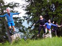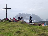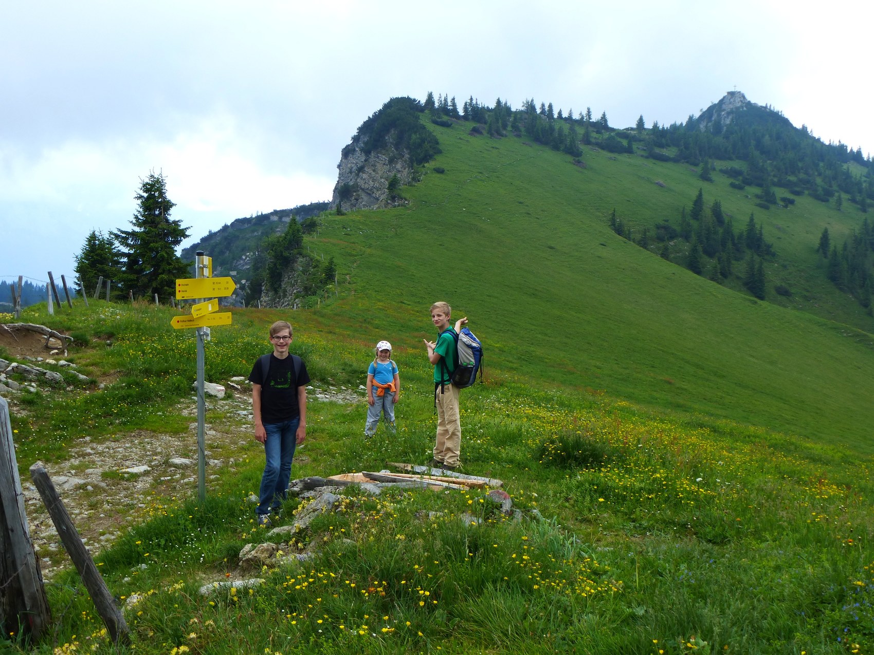 10 Kinder von 5–15 und 9 Erwachsenen haben sich angemeldet und sind über die Lerchfilzhochalm zur frisch renovierten und sehr gemütlichen Wildseeloderhütte aufgestiegen. Nach einer kurzen Brotzeit sind wir zum 2 117 m hohen Wildseelodergipfel aufgebrochen. Trotz leichtem Regen war noch genug Schnee für ein paar Schneebälle übrig. Am Gipfel war’s dann kalt, windig nass und neblig, das hat uns vom etwas ausgesetzten Rundweg abgehalten! Zurück auf der Hütte hat es den Kindern dann gereicht, den meisten Eltern aber noch nicht und so wurde auch noch der Nachbargipfel, die Henne bestiegen. Oben angekommen waren dann auch Wetter und Sicht deutlich besser und so konnten wir erahnen, wie schön die Landschaft dort ist, der See vor der Hütte liegt da wie in einem Vulkankrater.