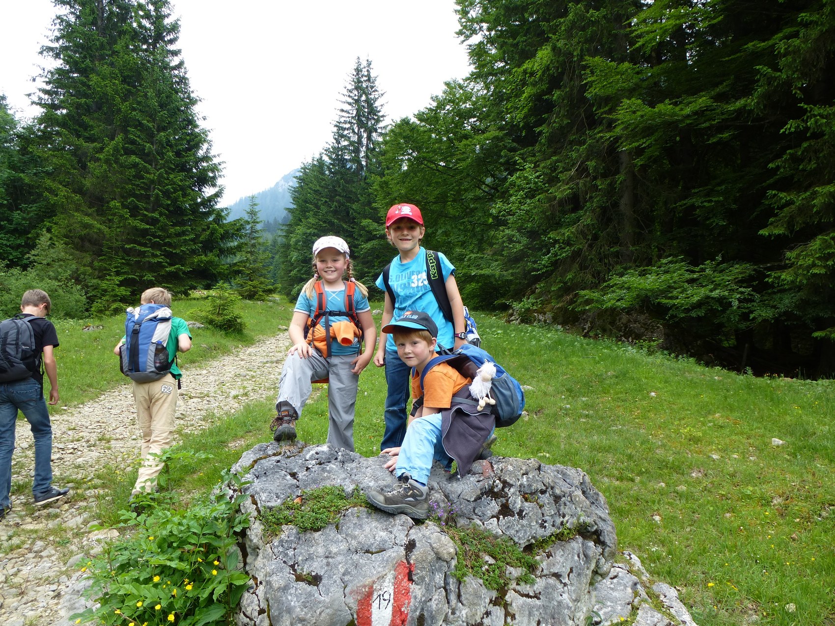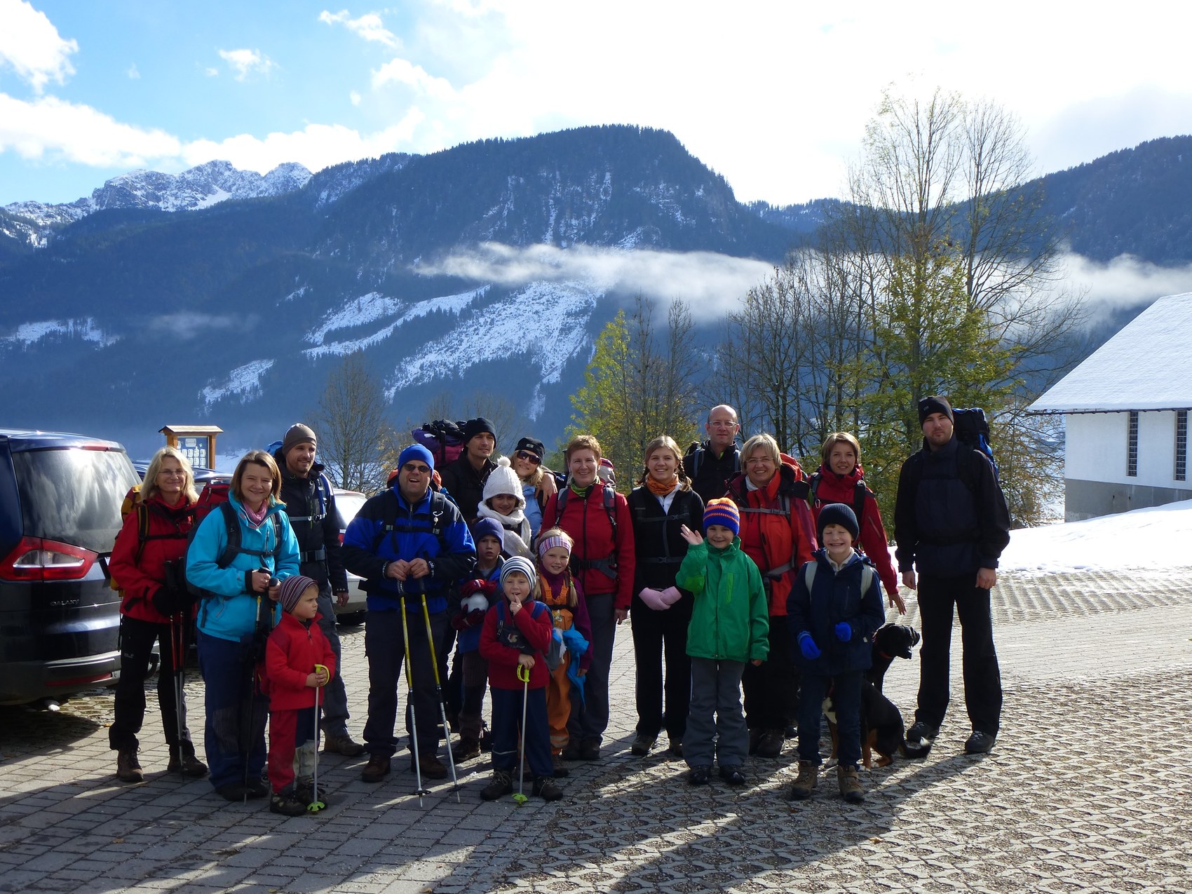 Bei bewölktem Himmel machten wir (9 Erwachsene und 8 Kinder) uns frühmorgens auf den Weg von Eggenfelden Richtung Unken/Heutal. Die Wetterprognose war nicht wirklich gut, aber wir wollten es dennoch wagen. Der Parkplatz im Heutal war fast leer und es waren auch kaum andere Leute unterwegs.