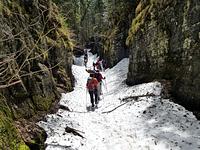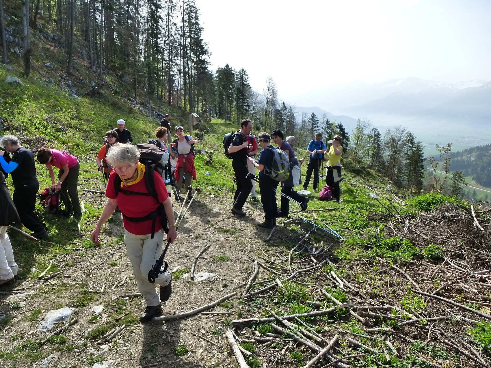 Wie sehr sich alle auf die Eröffnung der Bergwandersaison freuten, zeigte die lange Anmeldeliste. Als Auftaktwanderung galt es dem Prostkögerl auf’s Haupt zu steigen. Kaum kamen wir in Schwung, ging es auch gleich zu Beginn steil durch den Wald bergauf. Nicht lange dauerte dieser schweißtreibende Abschnitt. Gemütlich ging es weiter zur Teufelsschlucht, die wir abwärtswandernd durchstiegen. Leider lag noch sehr viel Schnee in der Schlucht, sodass sie nicht mit ihrer vollen Höhe bzw. Tiefe glänzen konnte. Auf gutem Weg und über Wiesen ging es weiter zum Gipfel. Dort prosteten wir uns mit den mitgebrachten Radlermaßen kräftig zu. Etwas mehr Sonne hätte uns gut getan und so hielt sich die Gipfelrast in Grenzen. Auf dem Rückweg ließen wir die Schlucht links liegen und erreichten so zügig den Bus. Mit einer Einkehr beim Gasthaus Mitterjäger in Griesenau auf der Terrasse beschlossen wir diese erste Tour.