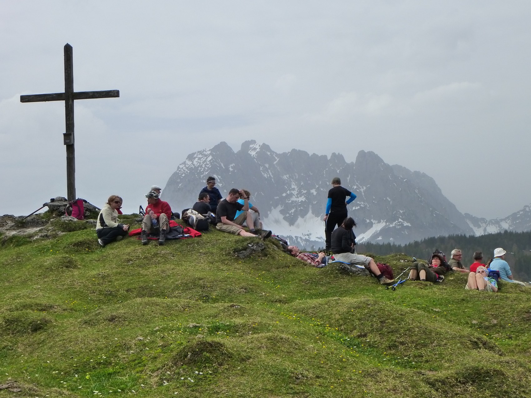 An diesem Tag hatten wir eine perfekte Wettereinteilung. Ausgangspunkt war Aschau in der Nähe von Kitzbühel. Die Kitzbüheler Berge sind als Skitourenberge bekannt. Unser Gipfel ist ein Grasberg, den wir nach ca. 3,5 Stunden erreichten. Zur Gipfelrast hatten wir noch ein bewölktes Wetter, aber beim Abstieg auf das Brechhornhaus sahen wir schon Regenwolken kommen. Wir kehrten natürlich im Brechhornhaus ein, und prompt fing es zu regnen an. Nach zwei Halbe Bier hatten wir wieder eitel Sonnenschein für den Abstieg. Zwei Stunden später erreichten wir das Tal und es kam ein Gewitter mit einem richten Wolkenbruch. Wir waren aber ohne einen Tropfen nass zu werden im Tal angekommen.
