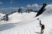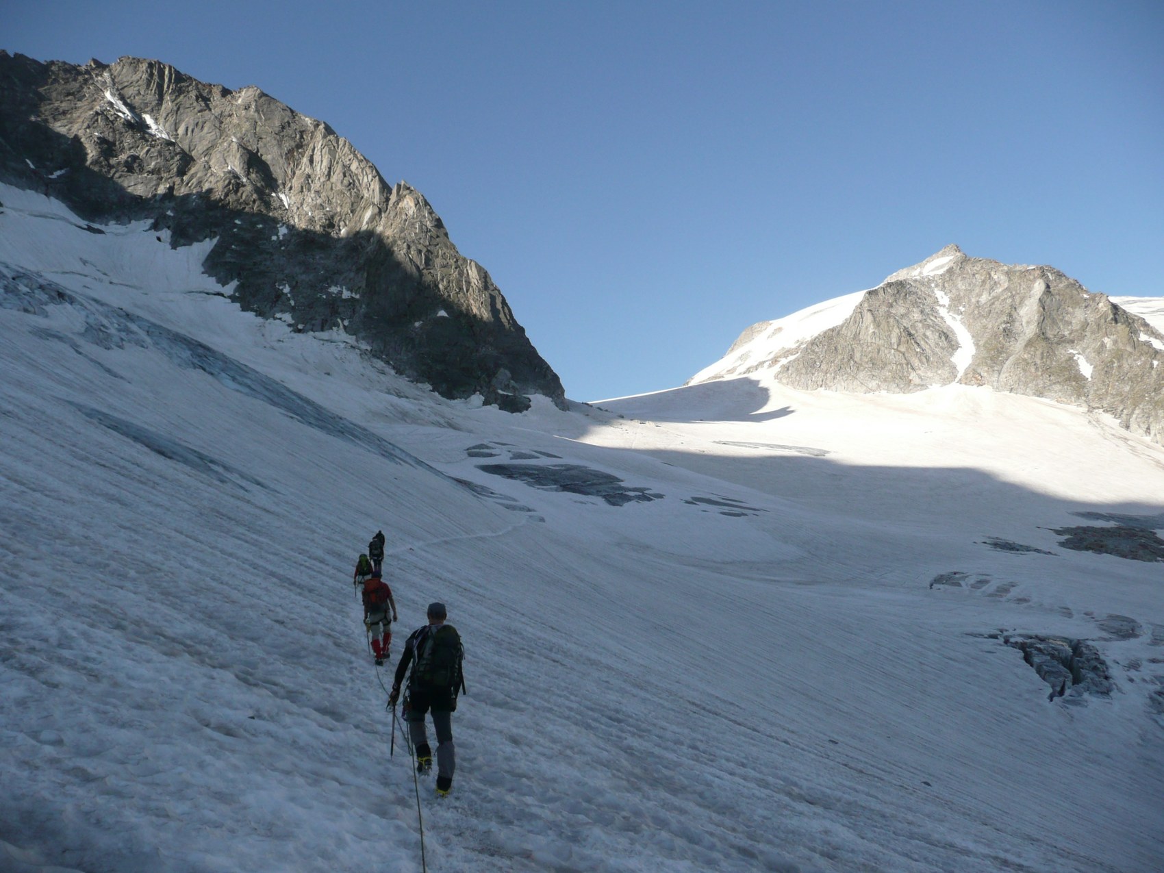 Ideale Bedingungen waren gegeben, als die 13-köpfige Gruppe aus Eggenfelden am Freitagnachmittag zur Wiesbadener Hütte (2 443 m) aufstieg. Es standen zahlreiche Übungen für klassische Hochtouren an: Steigeisentechnik im Eis, Seiltechnik für Fix- und Geländerseil, Handling mit Prusikknoten und Degengriff, Fixpunkt (Anker) setzen und Spaltenbergung waren die Voraussetzungen für die Gipfelstürmer. Mit drei Seilschaften wurden der Raukopf (3 101 m), der Piz Buin (3 312 m), die Dreiländerspitze (3 197 m) und das Silvrettahorn (3 244 m) erstiegen. Die alpinen Gipfelaufbauten wurden mit Respekt und meisterlicher Routine der Fachübungsleiter erklommen. Für die Hochtourenaspiranten waren die erlebnisreichen Tage perfekt und konnten abends mit den persönlichen Erfahrungen auf der Hütte gefeiert werden.