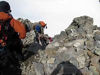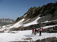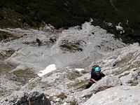 Das Bild zeigt uns beim Ausstieg aus der Kraterscharte unterhalb dem Wildseelodergipfel – der See liegt im Nebel.