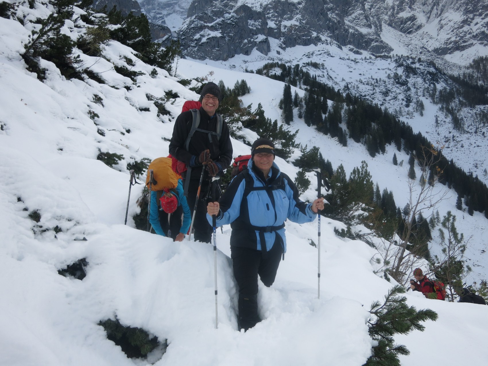 Das Gemeinschaftswochenende der Skitourengeher und Schneeschuhwanderer war ein voller Erfolg. Während die Skitourengeher bereits auf der Anfahrt trotz ungünstiger Witterungsbedingungen dem Geigelstein einen Besuch abstatteten, wanderten die Schneeschuhgeher gemütlich zum Kohllahnerkopf, einem weitgehend unbekannten aber lohnenden Winterziel. Nach einem schönen Abend im originellen Gasthof Griesenau gings am nächsten Tag für die Skitourer ins Winklkar im Zahmen Kaiser. Die Schneeschuhgeher bestiegen den Schneebichl und wurden mit einem wunderbaren Blick zum Wilden Kaiser belohnt. Alles in allem eine schöne Gemeinschaftsunternehmung, die ihre Fortsetzung finden wird.