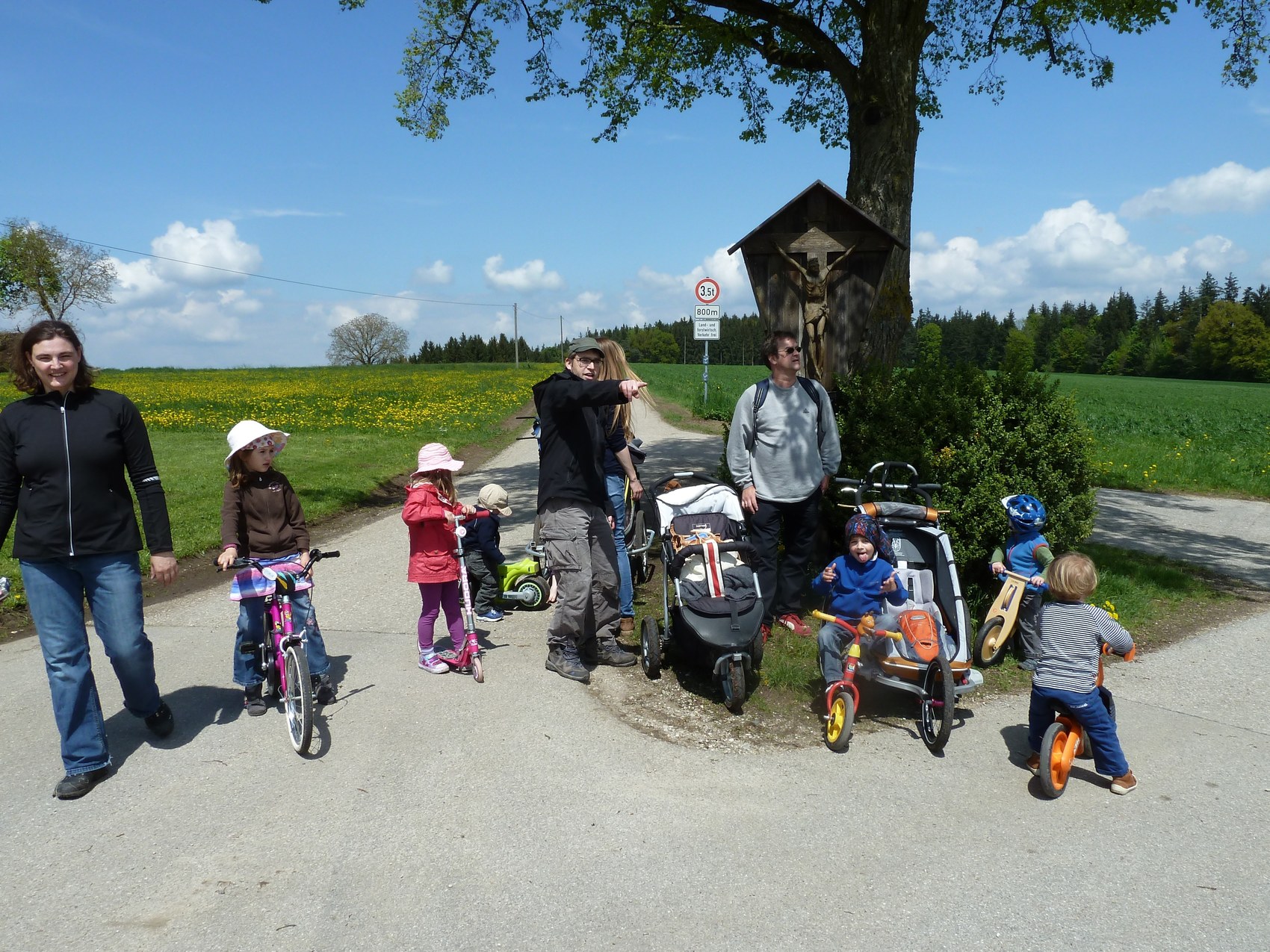 Bei strahlendem Sonnenschein und angenehmen Temperaturen unternahm die Familiengruppe eine Radltour mit einer Länge von ca. 27 km im Südwesten Eggenfeldens. Treffpunkt war wie üblich der Parkplatz des Gymnasiums, wo pünktlich um halb elf die Teilnehmer bereitstanden.