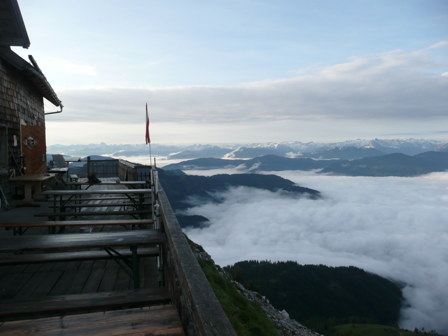 Nachdem unsere Frühjahrstour auf den Dreisessel wegen schlechter Wetterverhältnisse ausgefallen ist, stand die Übernachtungstour unter anderen Vorzeichen. Unser ausgeschriebenes Ziel, das Rotwandhaus, forderte so unanständig hohe Reservierungsgebühren, dass wir lieber das Ziel geändert haben. Das Wildseeloderhaus in Fieberbrunn sollte es jetzt sein. Die Wetterprognose passte auch: Samstag schön, Sonntag regnerisch. – Genau umgekehrt ist es dann eingetroffen, aber da waren wir schon unterwegs!