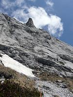 Nach knapp 950 Hm Aufstieg haben wir das Ziel, die Mühlhornwand, erreicht. Das Wetter war ungemütlich, so fiel die Entscheidung nicht schwer, einen besseren Rastplatz zu suchen, oder gar im Tal ins Wirtshaus zu gehen.