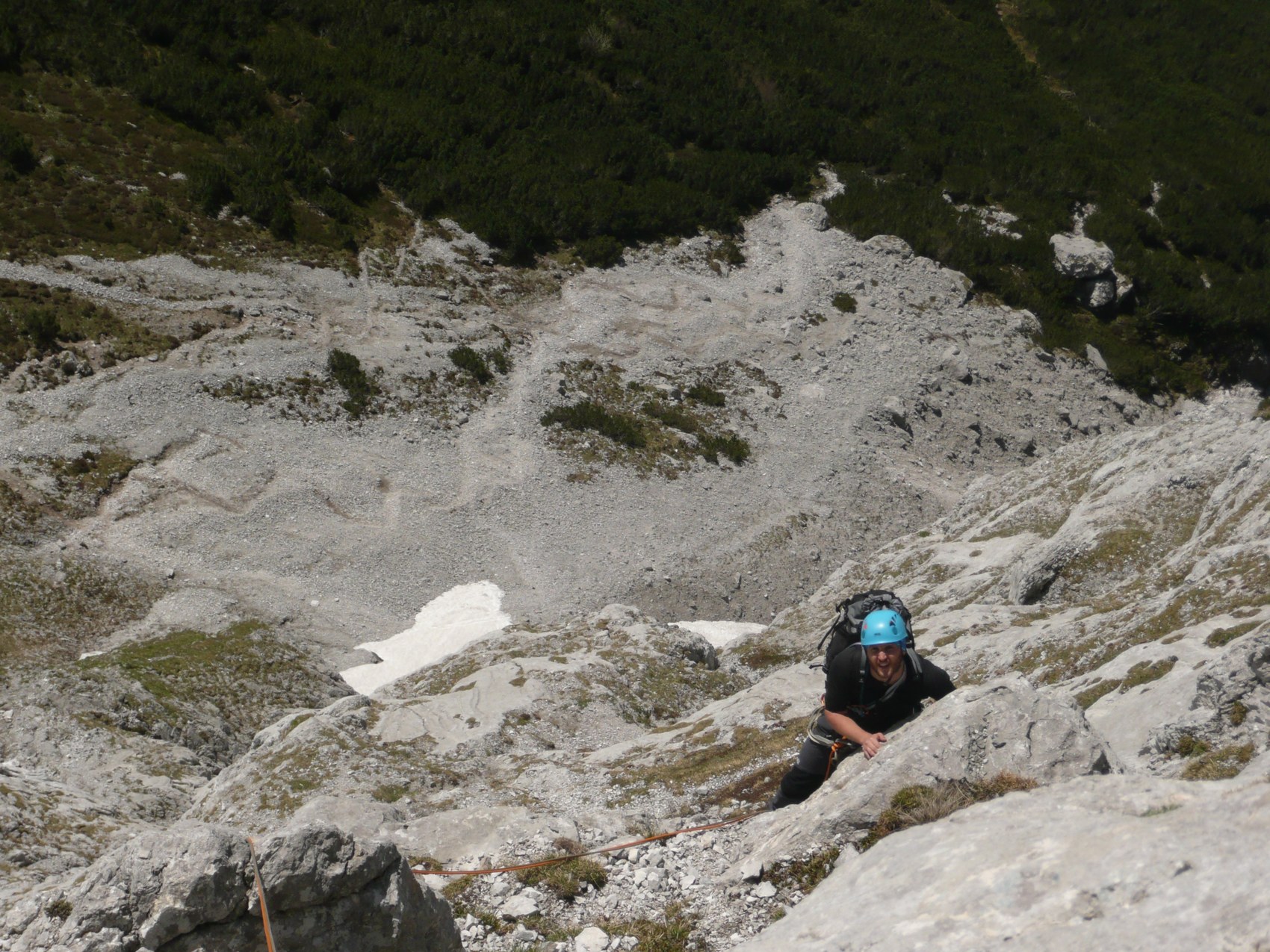 An diesem Wochenende war die JDAV gemeinsam mit dem DAV zum Klettern im Tennengebirge unterwegs. Alpine Klassiker wie die Südrampe (4+) und die Hillinger/Lanz (4+) wurden von uns gemeistert. Beide Kletterrouten brachten uns auf den Gipfel des Werfener Hochthrons (2 362 m). Letzterer ist bekannt für seine vielen Kamine, die sich 400 Meter durch die Südwestwand ziehen. Auch unsere Hallenkletterer kamen am hüttennahen Klettergarten auf ihre Kosten. Als Überraschung gab es am Abend auf der Hütte leckeres nepalesisches Dal Bhat.