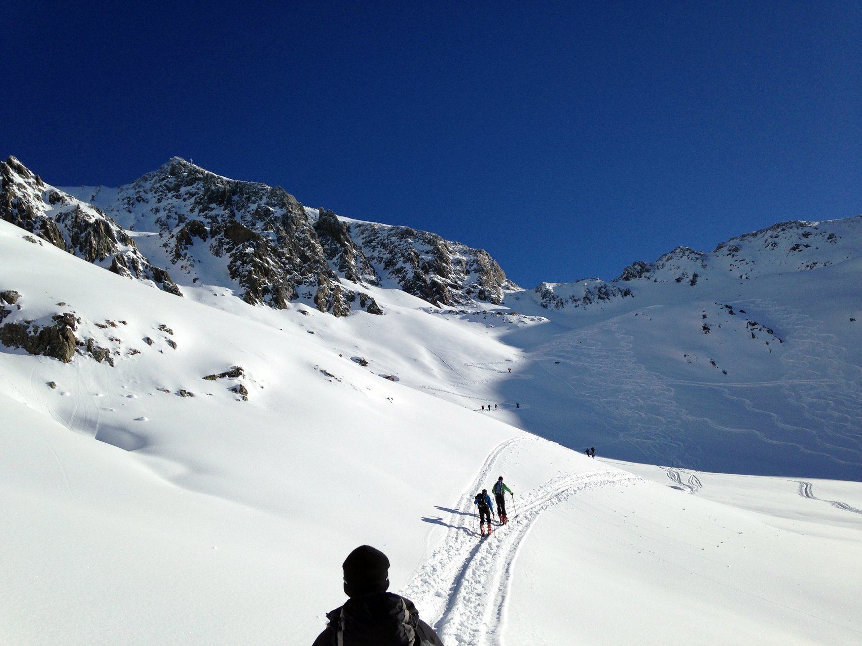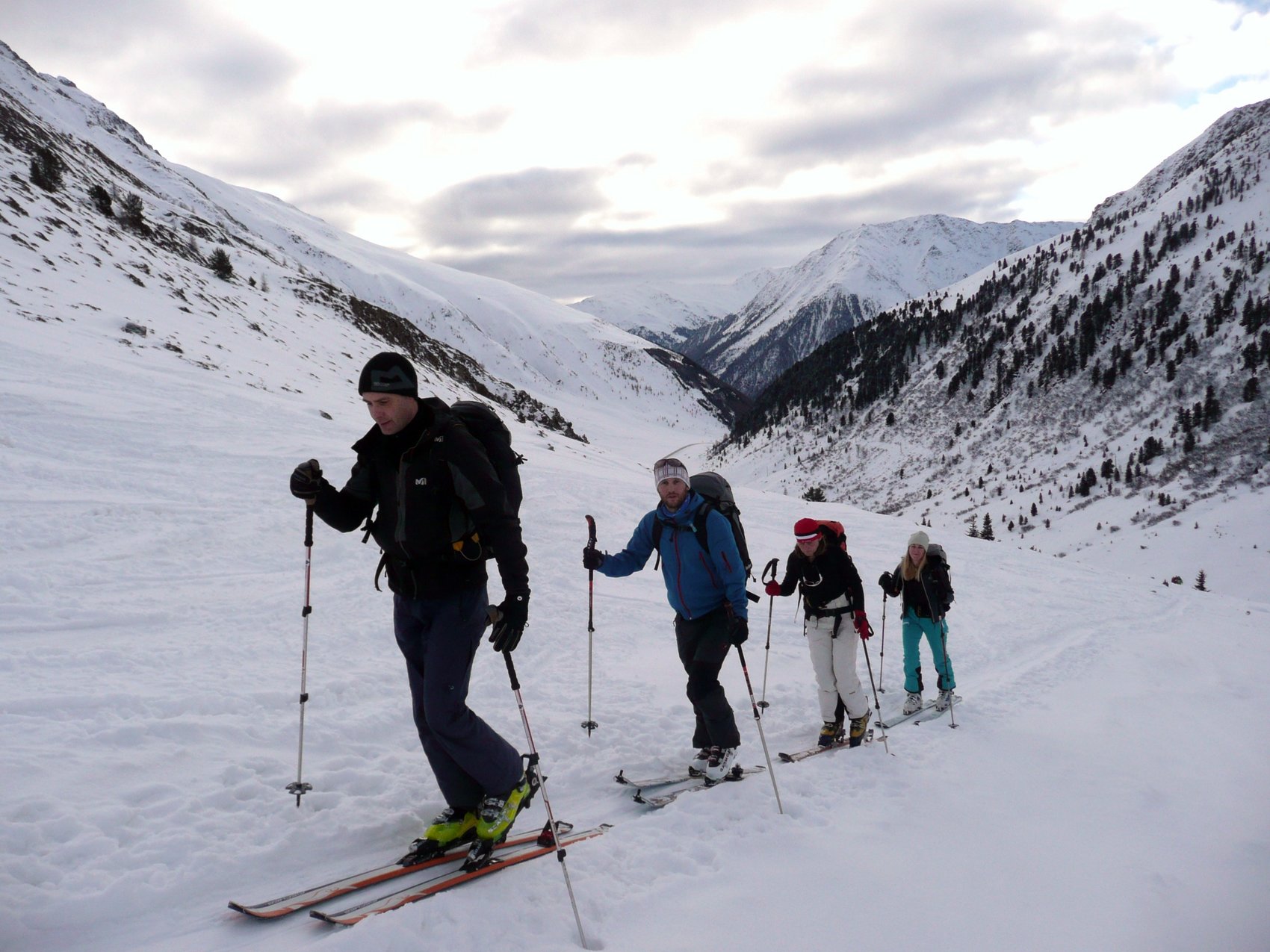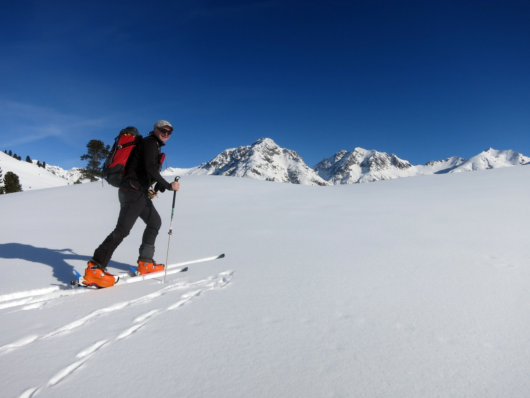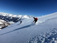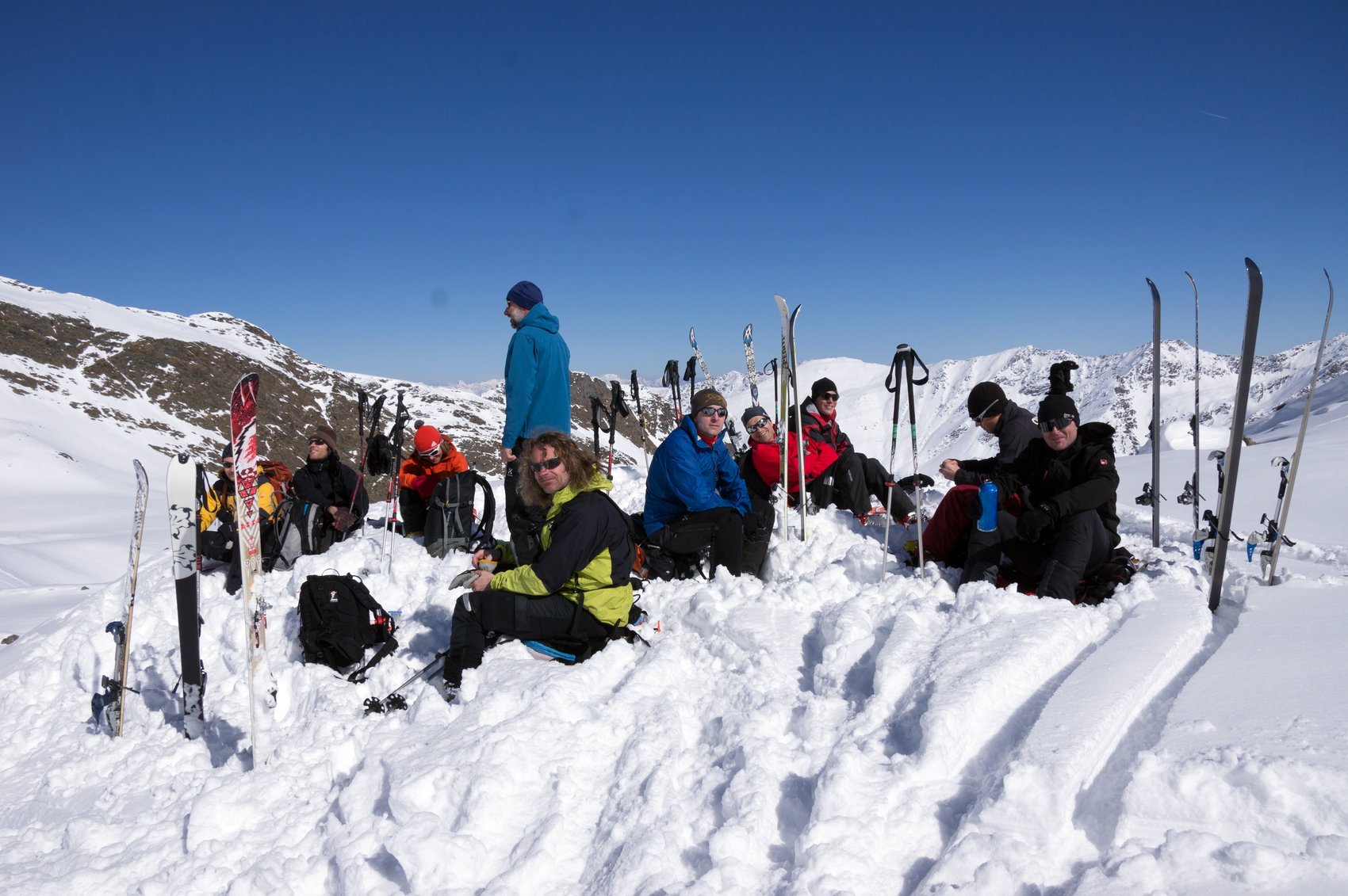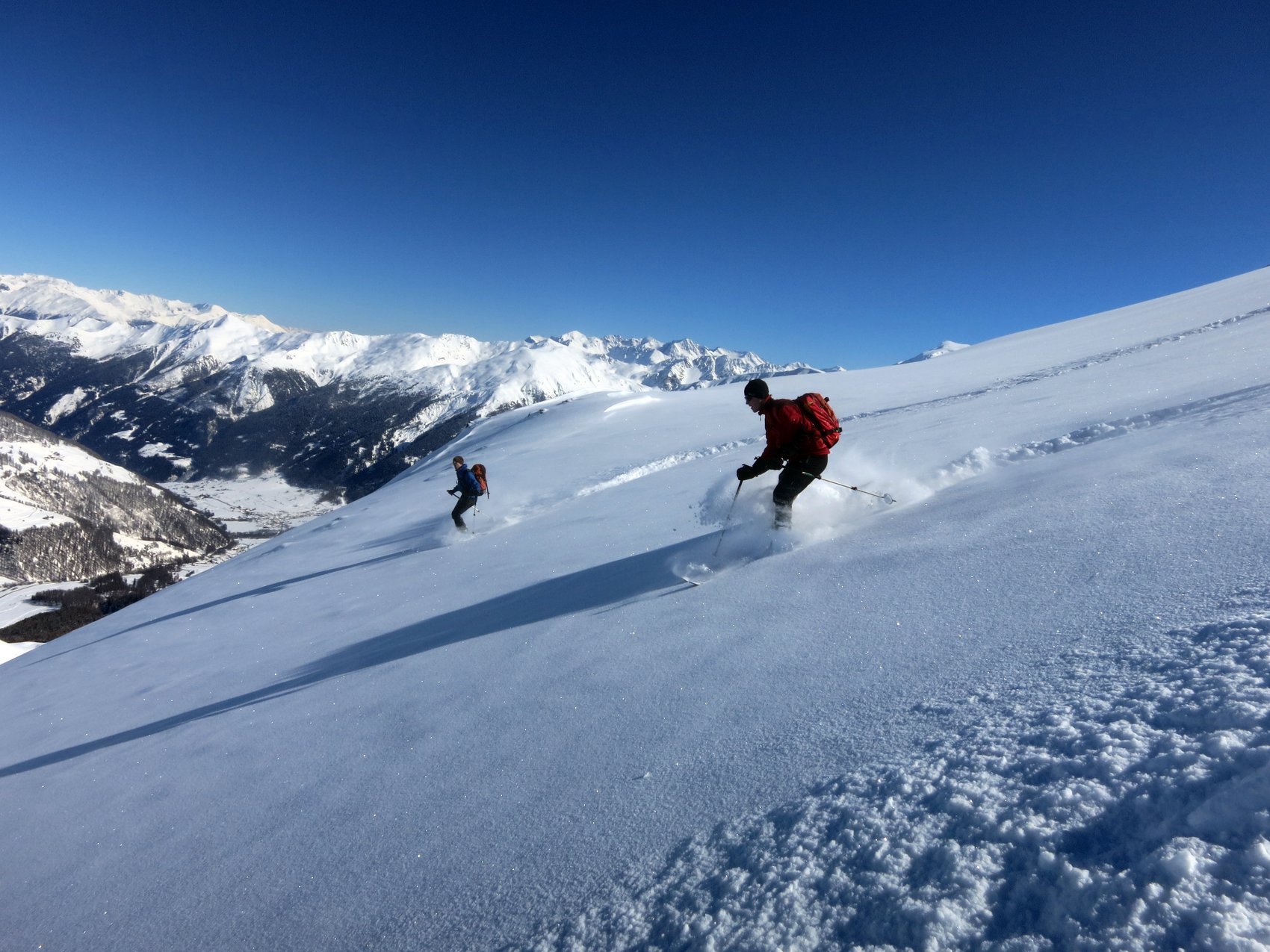 Am ersten Tag ging es bei strahlendem Sonnenschein auf den Piz Terza (2 907 m), dessen Besteigung wir anschließend bei einer Einkehr im Gasthof in Lü gebührend feierten. Die Kombitour auf Piz Turettas (2 957 m) und Piz Dora (2 951 m) am nächsten Tag mit Aufstieg von Fuldera und die Abfahrt durch unverspurte Pulverschneehänge war sicherlich einer der Höhepunkte unserer Tourentage.