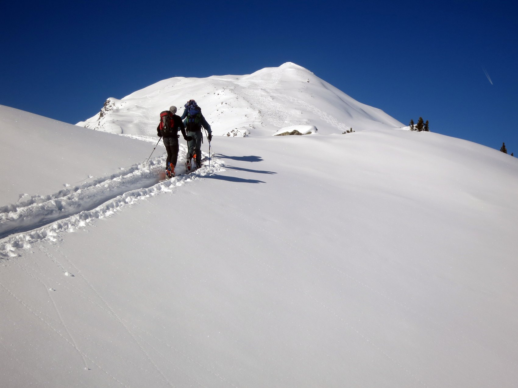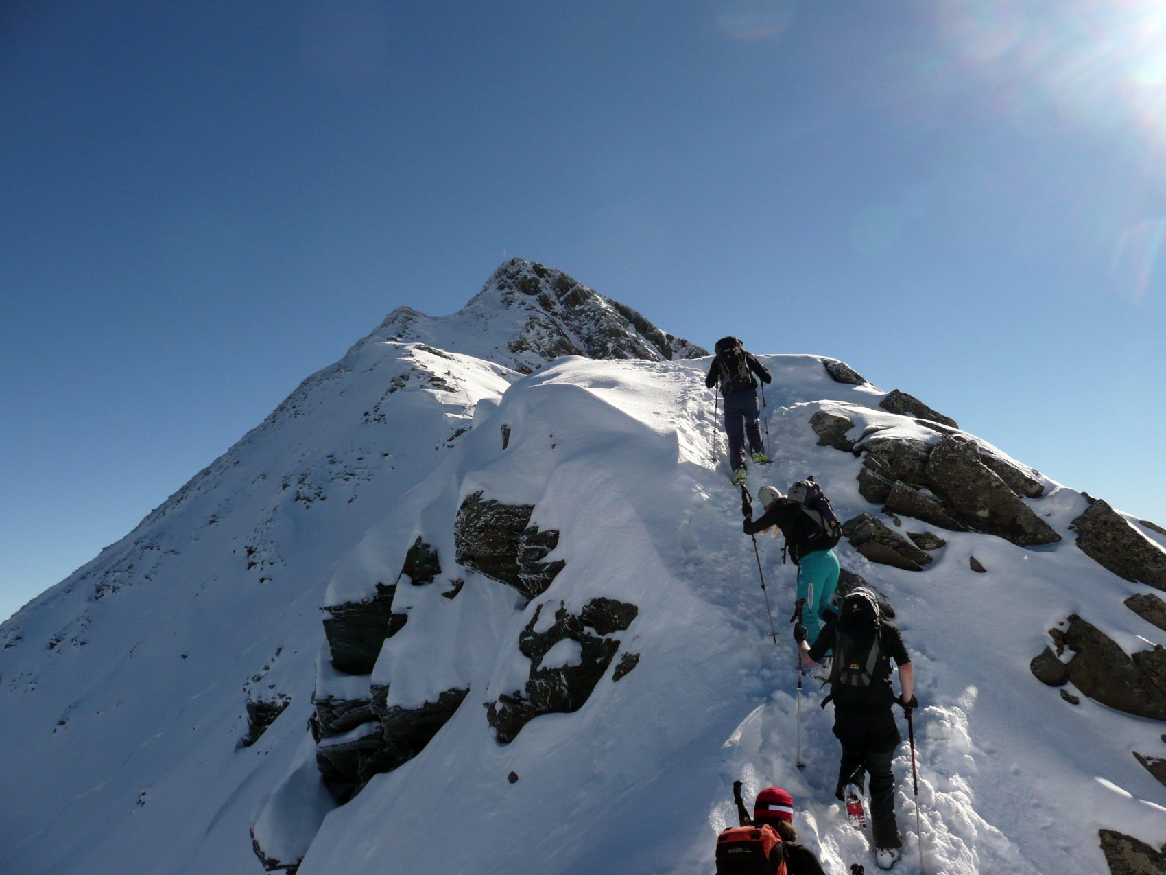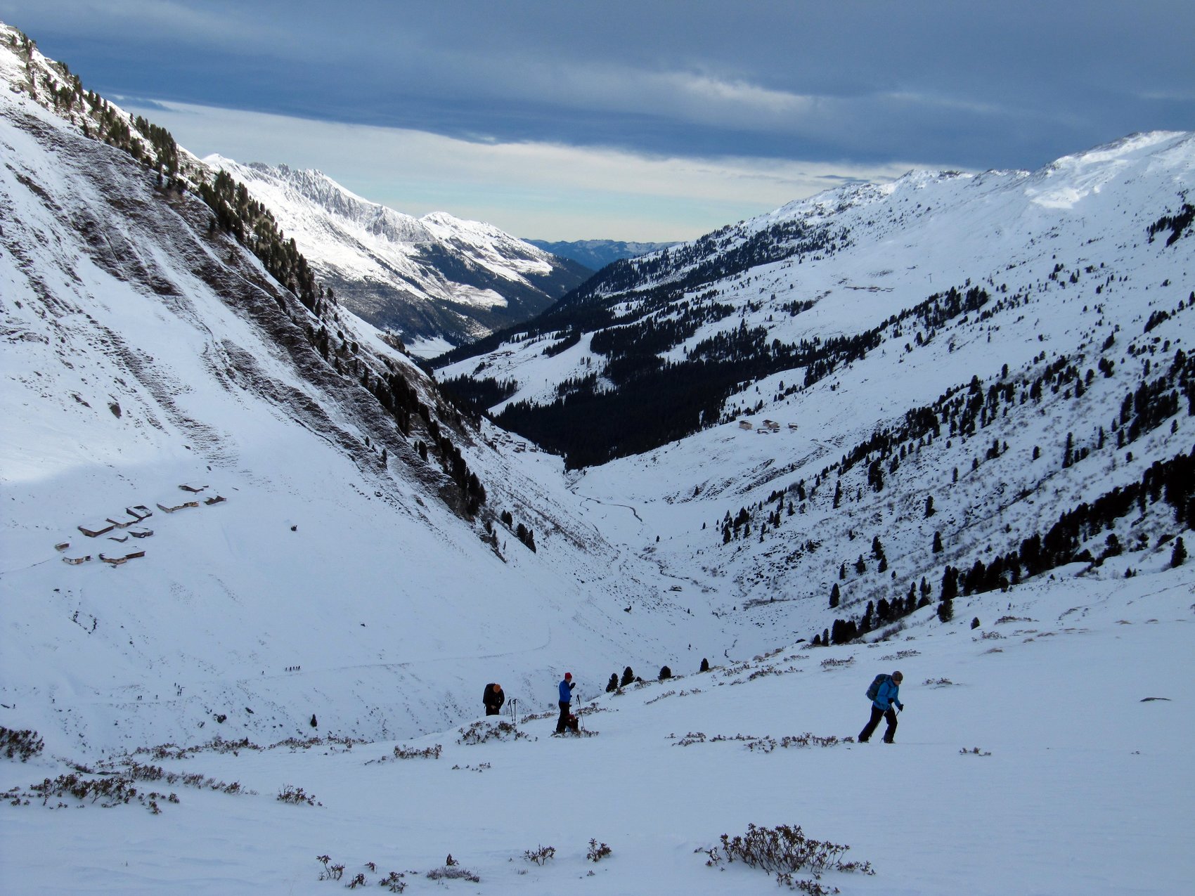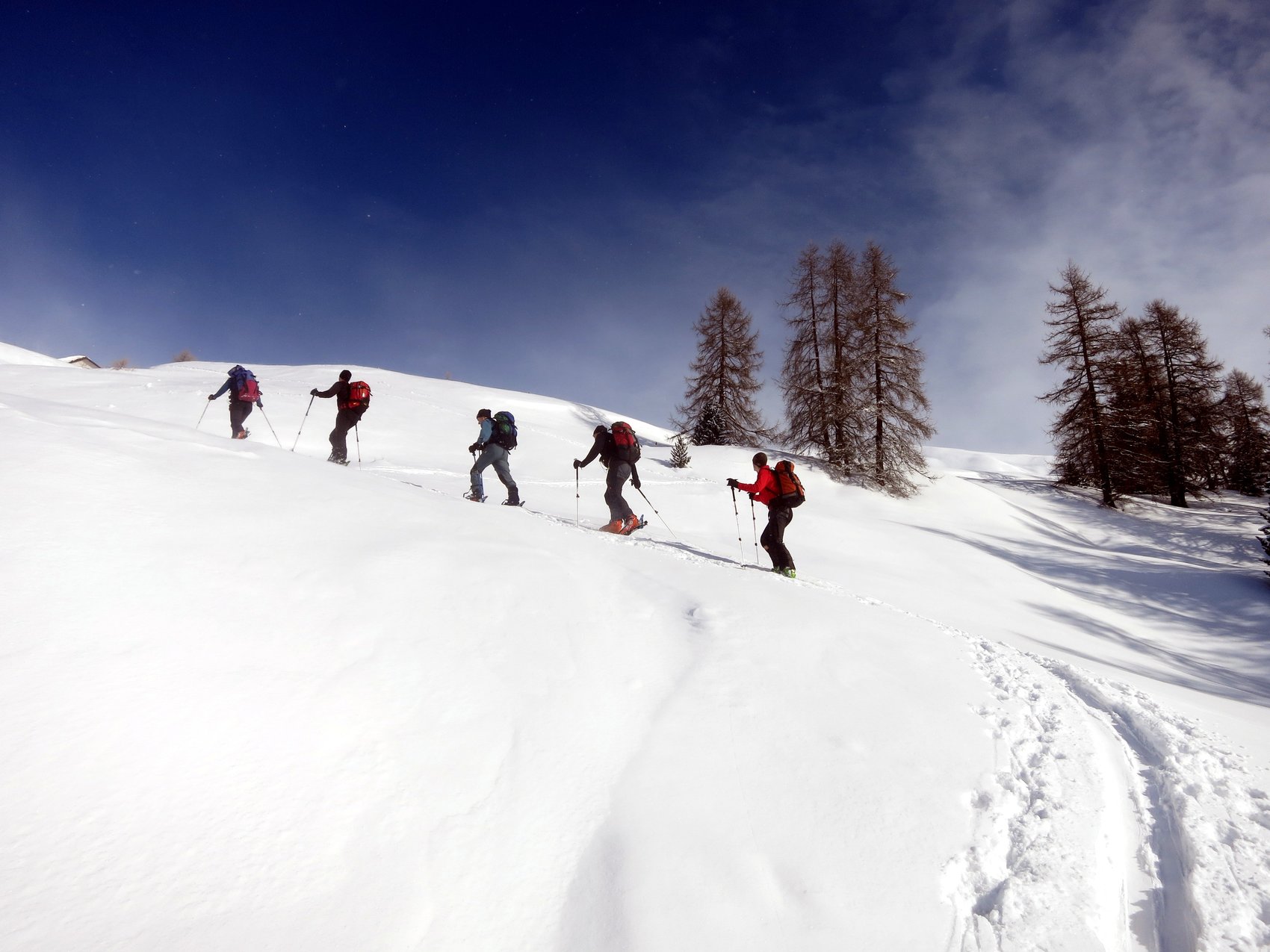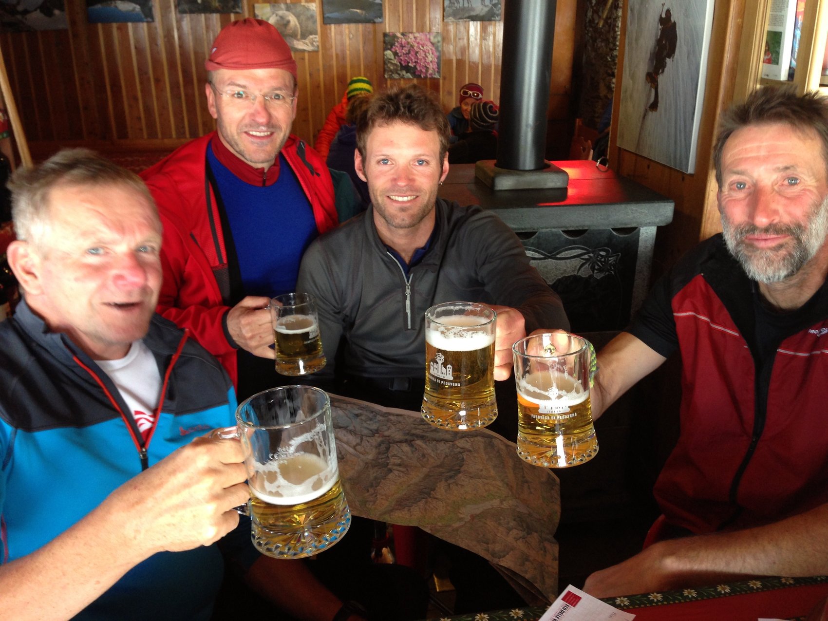 Am ersten Tag ging es bei strahlendem Sonnenschein auf den Piz Terza (2 907 m), dessen Besteigung wir anschließend bei einer Einkehr im Gasthof in Lü gebührend feierten. Die Kombitour auf Piz Turettas (2 957 m) und Piz Dora (2 951 m) am nächsten Tag mit Aufstieg von Fuldera und die Abfahrt durch unverspurte Pulverschneehänge war sicherlich einer der Höhepunkte unserer Tourentage.
