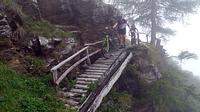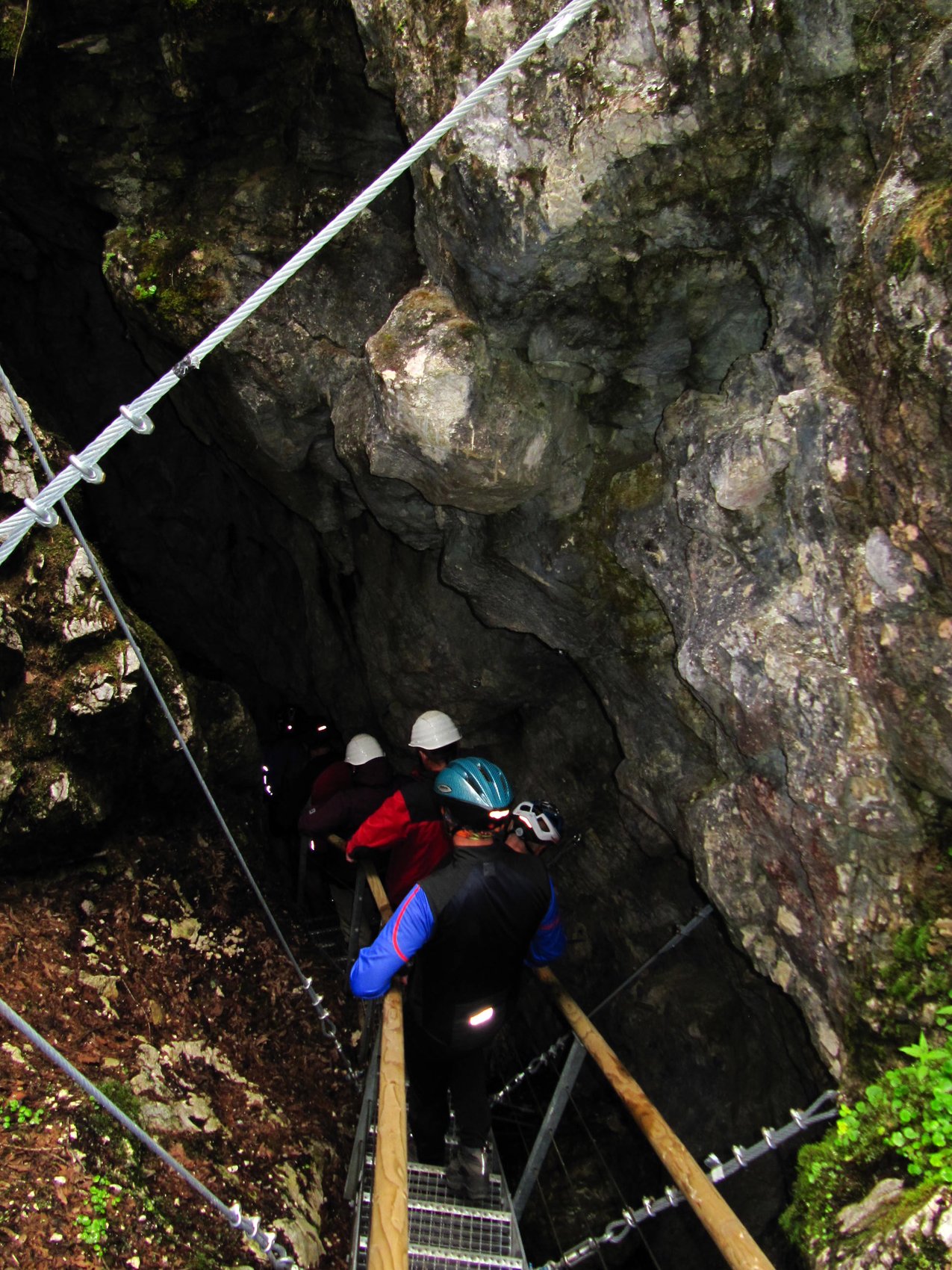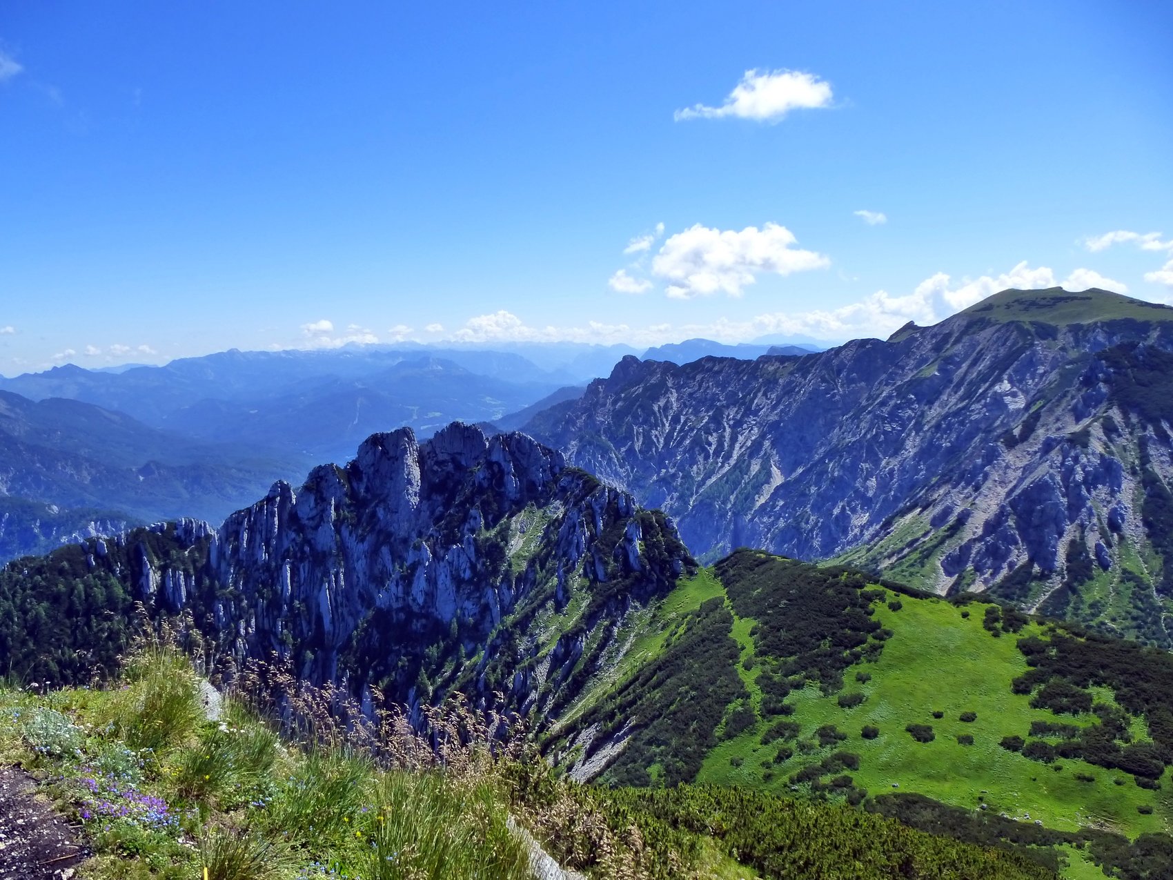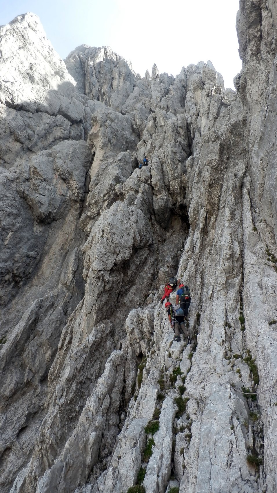 Beim Abstieg erlebten wir noch ein Naturschauspiel der besonderen Art. Über uns eine Regenwolke im selben Tempo wie wir mit leichtem Nieselregen, blieben wir stehen, waren wir wieder im Trockenen. Auf der Traunsteiner Hütte brauchten wir auf der Terrasse wieder den Sonnenschirm. Am nächsten Morgen ging es flott über den Schrecksteig wieder ins Tal, warteten doch die nächsten Regenwolken schon wieder.