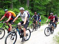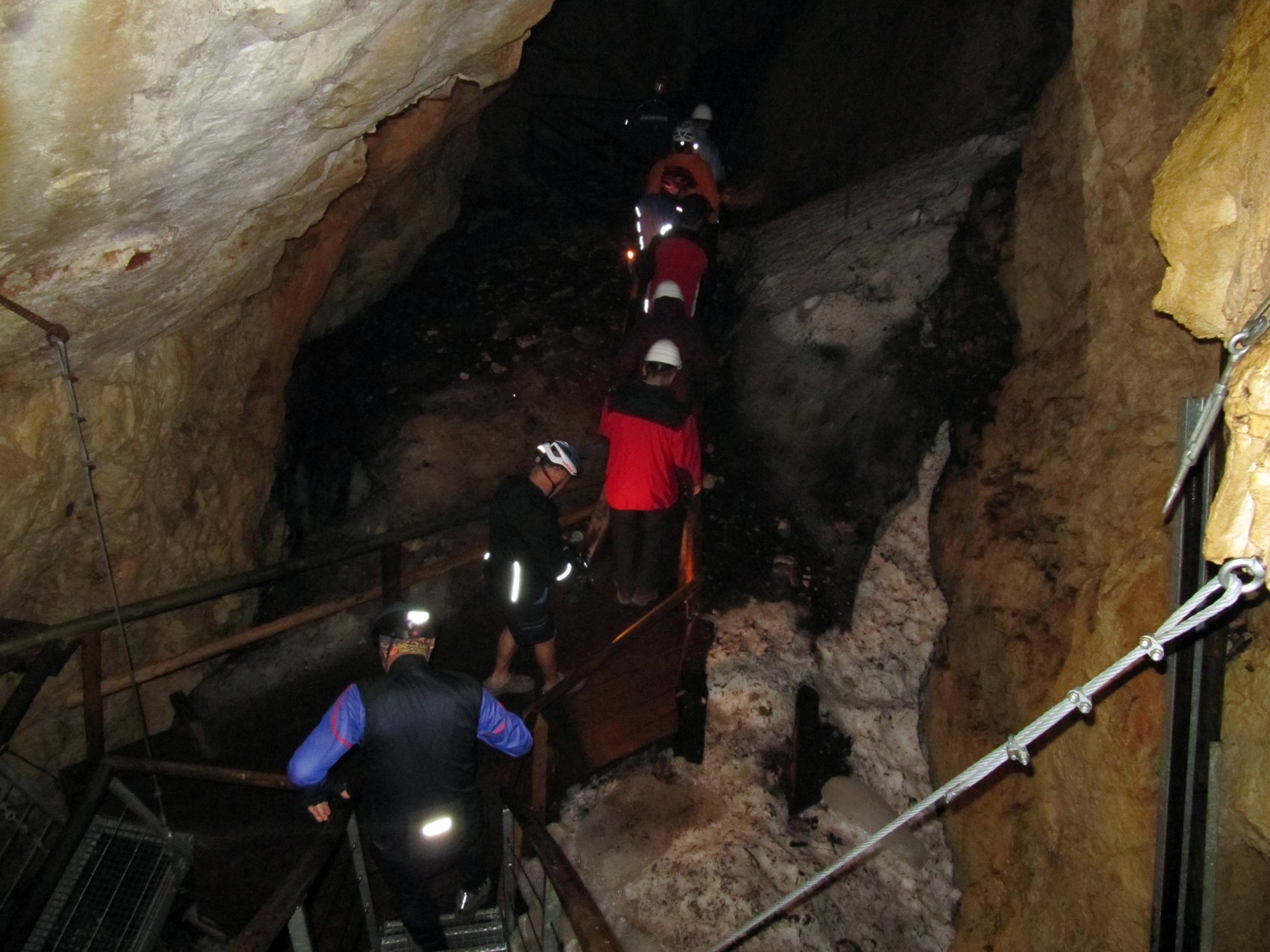 Vom Startpunkt am Dorfplatz Hinterthiersee fuhren wir gemütlich über das Glemmbachtal und Hasatal zur Buchackerhütte. Nach einer Kaffepause machten wir uns weiter auf zur Tropfstein- und Eishöhle. Ausgerüstet mit Karbidlampen starteten wir unsere geführte Höhlentour. Nach einem kurzen Trail bzw. einer Schiebepassage ging’s zur Abfahrt über die Köglalm nach Hinterthiersee.