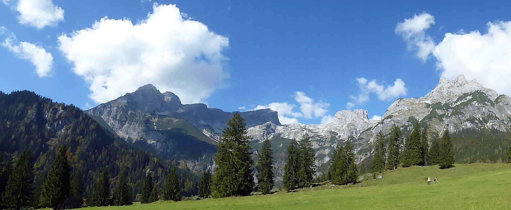 Zum Greifen nah schienen der Dachstein mit Gosaukamm und dem Tennengebirge.