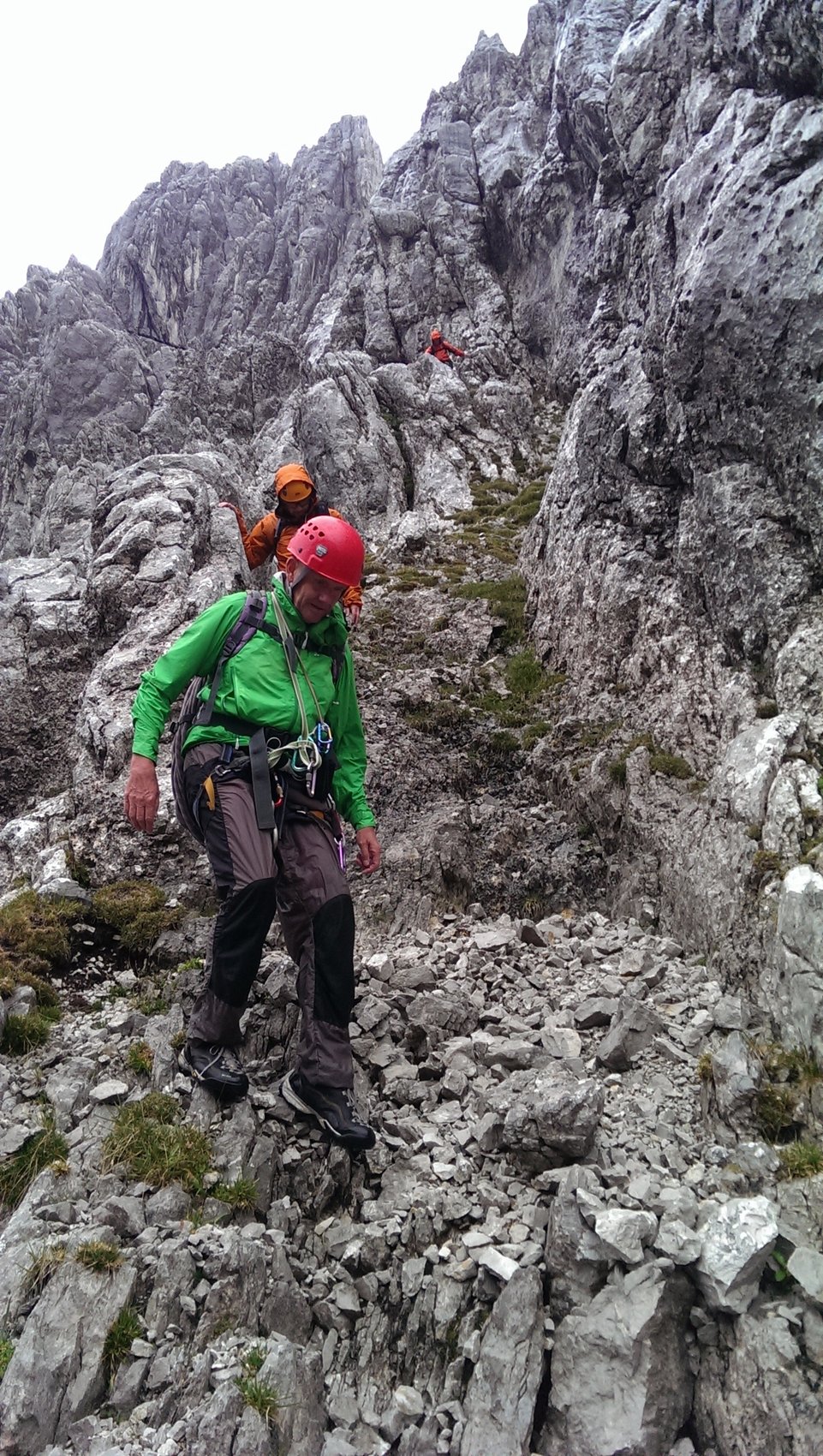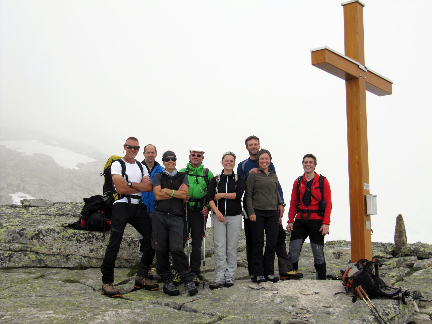 Obwohl sich auch in dieser Woche, wie den ganzen Sommer, das Wetter von seiner unbeständigen Seite zeigte, war es uns möglich, jeden Tag unterwegs zu sein, ohne nass zu werden. Mit dem Hotel Mater Dei hatten wir ein zentral gelegenes und gut geführtes Basislager. Vor allem die Wanderungen im Val Monzoni und Val Nicolo zeigten die berühmten Berge der Dolomiten von der schönsten Seite. Mit der Baita Monzoni und dem Wirt Nello fanden wir eine überaus urige Labestation. Neben den Klettersteigen zum Santnerpaß und auf die Rotwand wurden täglich Wanderungen unternommen. Überaus beeindruckend für die meisten Teilnehmer, einmal direkt am Fuße der berühmten Vajolett-Türme zu stehen. Ein Höhepunkt war aber sicher auch die Besteigung der nicht sehr bekannten, im Monzonital aber dominierenden Punta di Vallaccia (2 637 m), welche fast die gesamte Gruppe gemeinsam unternahm. Den Abschluss bildete eine Fahrt zum Passo San Pellegrino und der Aufstieg zur Punta Alochet (2 582 m) mit einer Einkehr in der wunderschön gelegenen Bergvagabundenhütte.