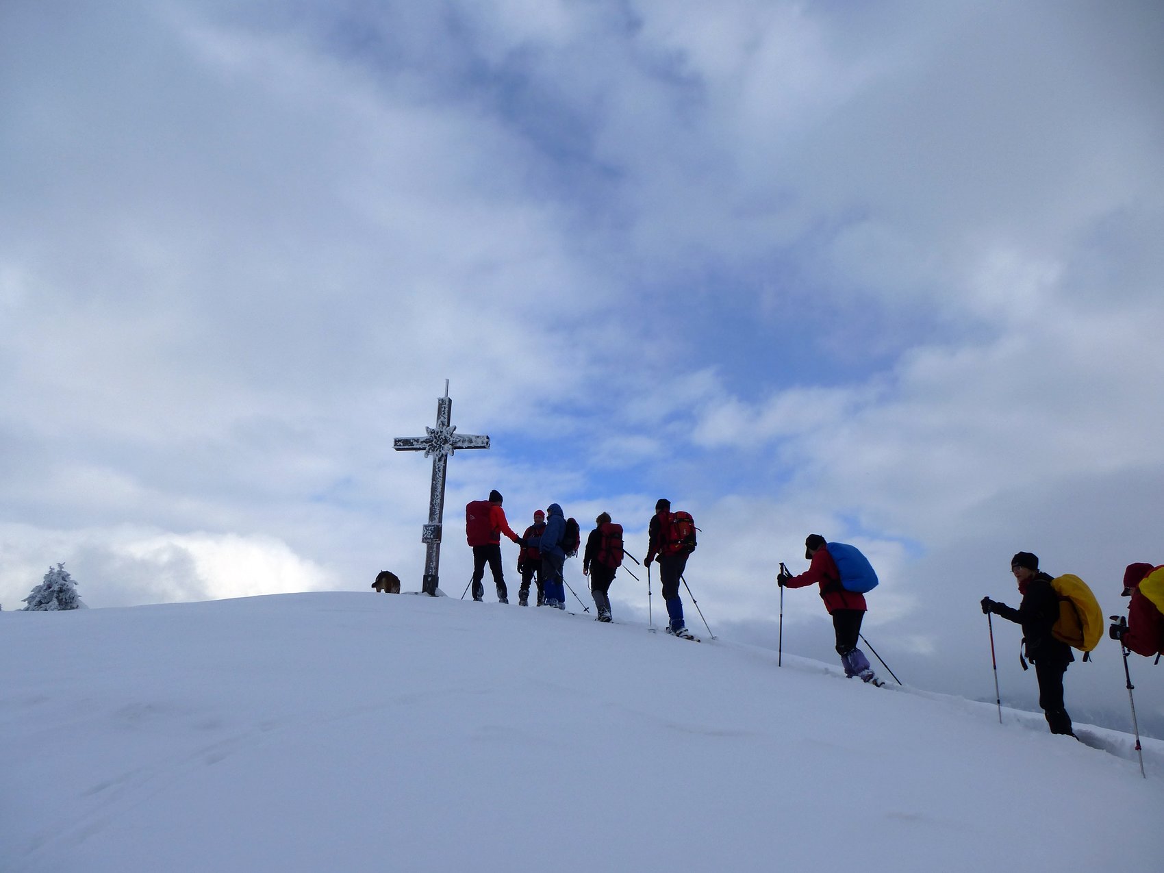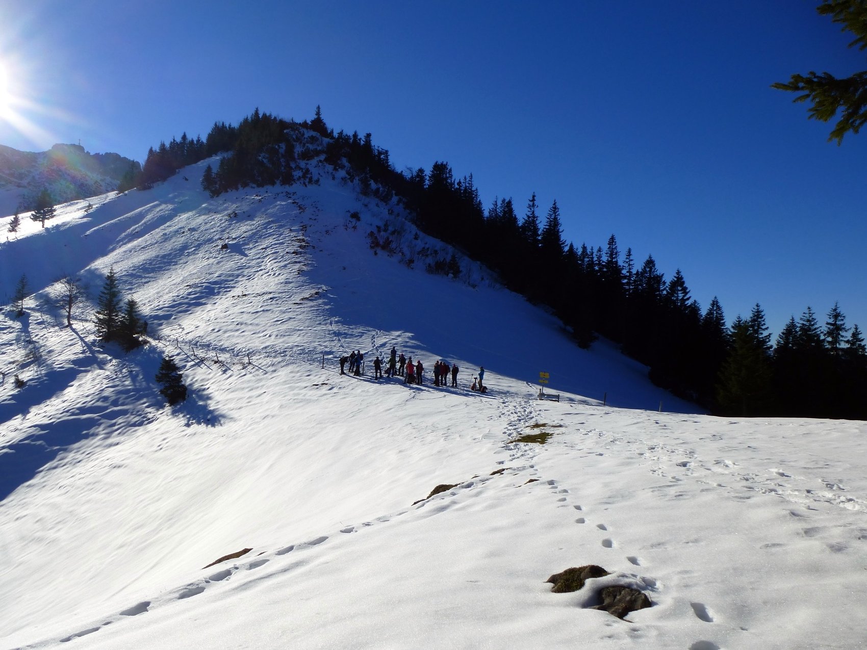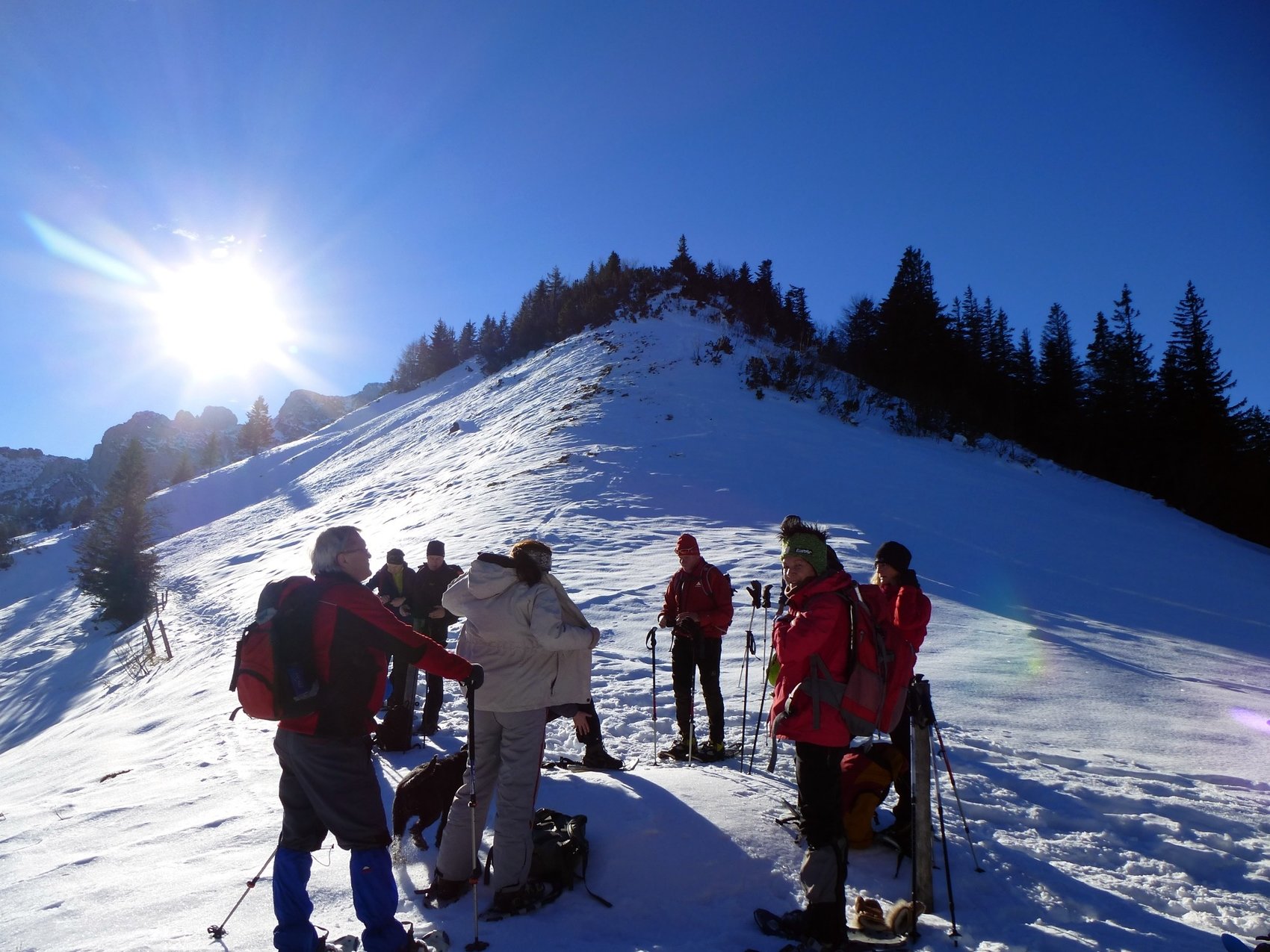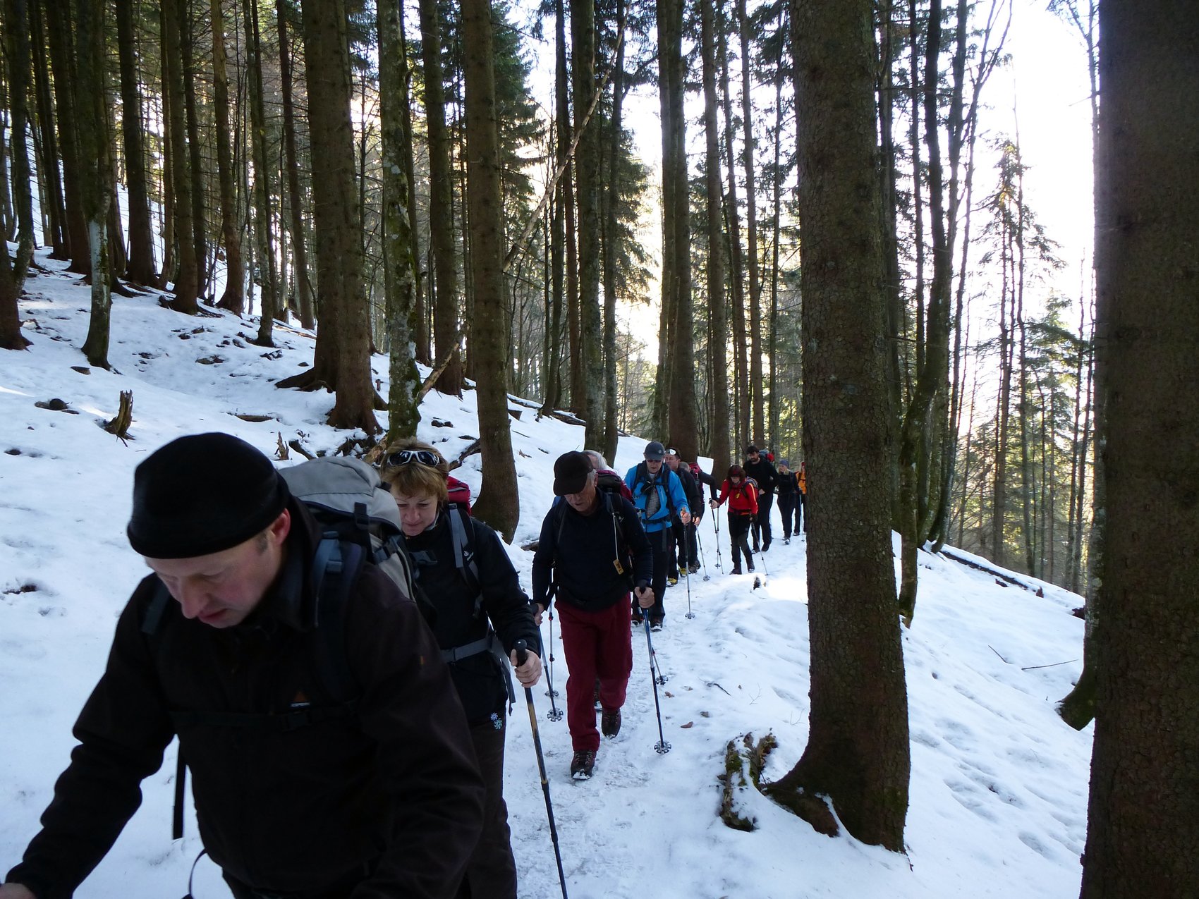 Der Schnee kam gerade noch rechtzeitig und in ausreichender Menge. Witterungsbedingt zogen wir die Tour um einen Tag vor, was leider zu einigen Absagen führte. Die elf glücklichen Teilnehmer erlebten dafür einen tollen Wintertag mit ungewohnten Schneemengen und tollen Ausblicken. Aufgrund der erforderlichen Spurarbeit zog sich der Anstieg doch etwas in die Länge, was jedoch nicht von einer Einkehr im Gasthof Griesenau bei der Heimfahrt abhielt.