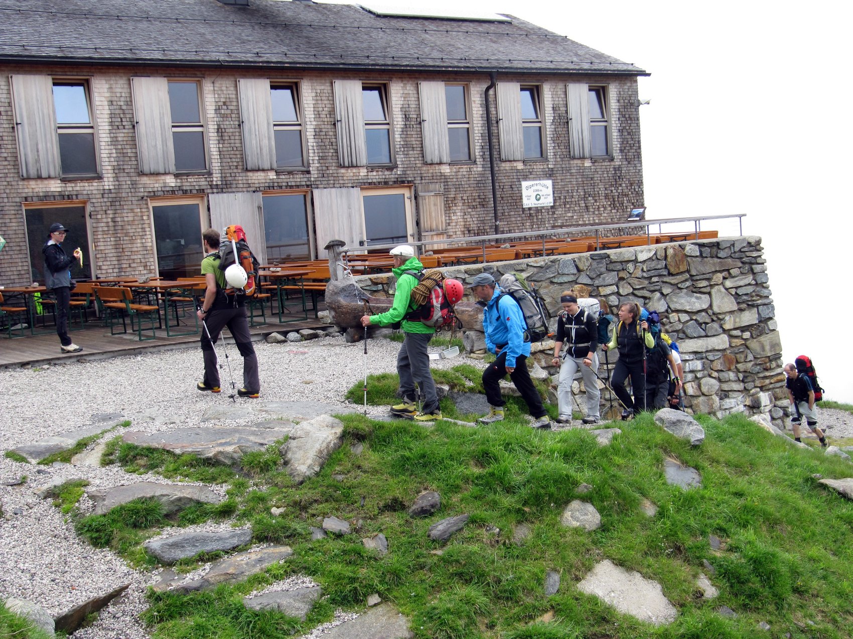 Die geplante 2-Tagestour wurde wegen zu unsicherem Wetter und daraus resultierender schwieriger Quartierreservierung auf einen Tag verkürzt. Um 9 Uhr vor der Talstation der Graukogelbahn Regen und die Sessel verschwanden im Nebel. So entschieden wir uns, die Tour im Kötschachtal am Grünen Baum zu beginnen, der unser geplanter Zielpunkt gewesen wäre. In Regenkleidung ging’s am Bach entlang talaufwärts, bald hörte der Regen auf und über eine Brücke ging’s Richtung Reedsee weiter, der dann mittags trocken und hungrig erreicht wurde. Die Zuversicht auf noch besseres Wetter stieg und so nahmen 14 Personen die insgesamt 1 250 Hm zur Palfnerscharte, wo die Sicht bis zum schneebedeckten und vergletscherten Ankogel reichte, in Angriff. Zur Bergstation der Graukogelbahn mussten wir noch fast 400 Hm absteigen, genossen Kaffe und Kuchen, manche auch ein Bier und fuhren mit der Bahn zurück nach Badgastein. Die Fahrer holten mit dem Taxi unsere Kfz zurück und wohlgelaunt ging’s nach Eggenfelden.