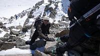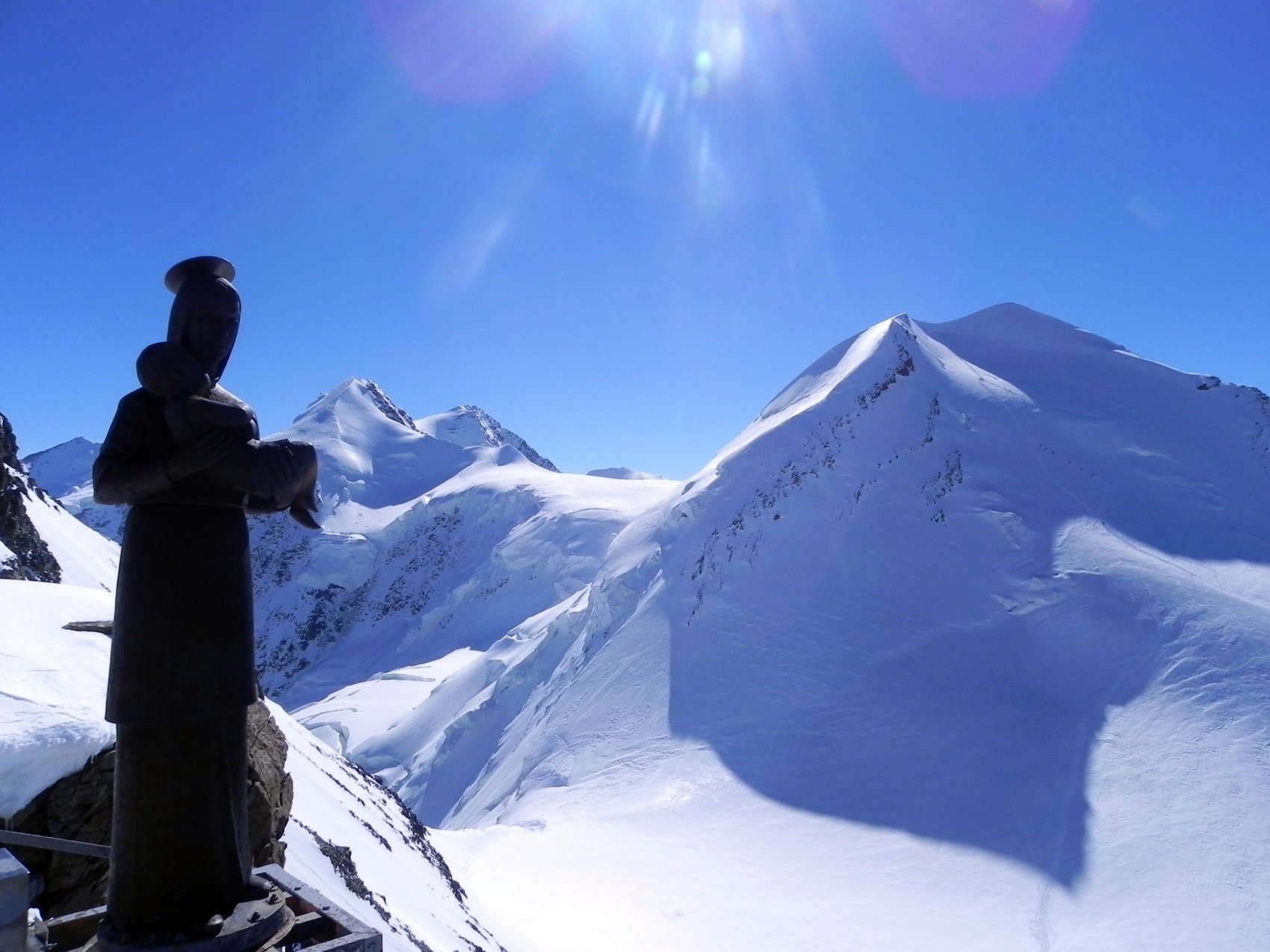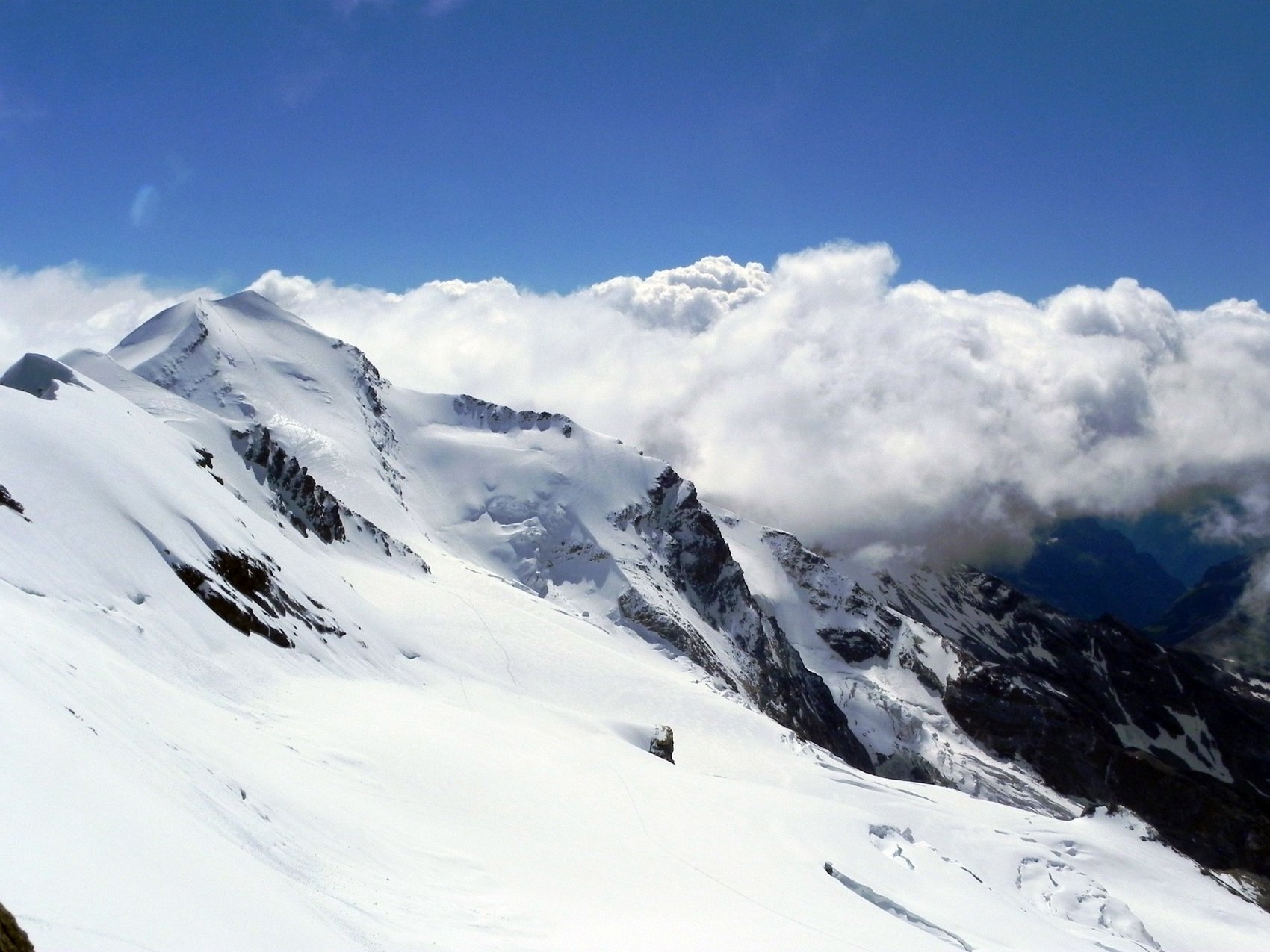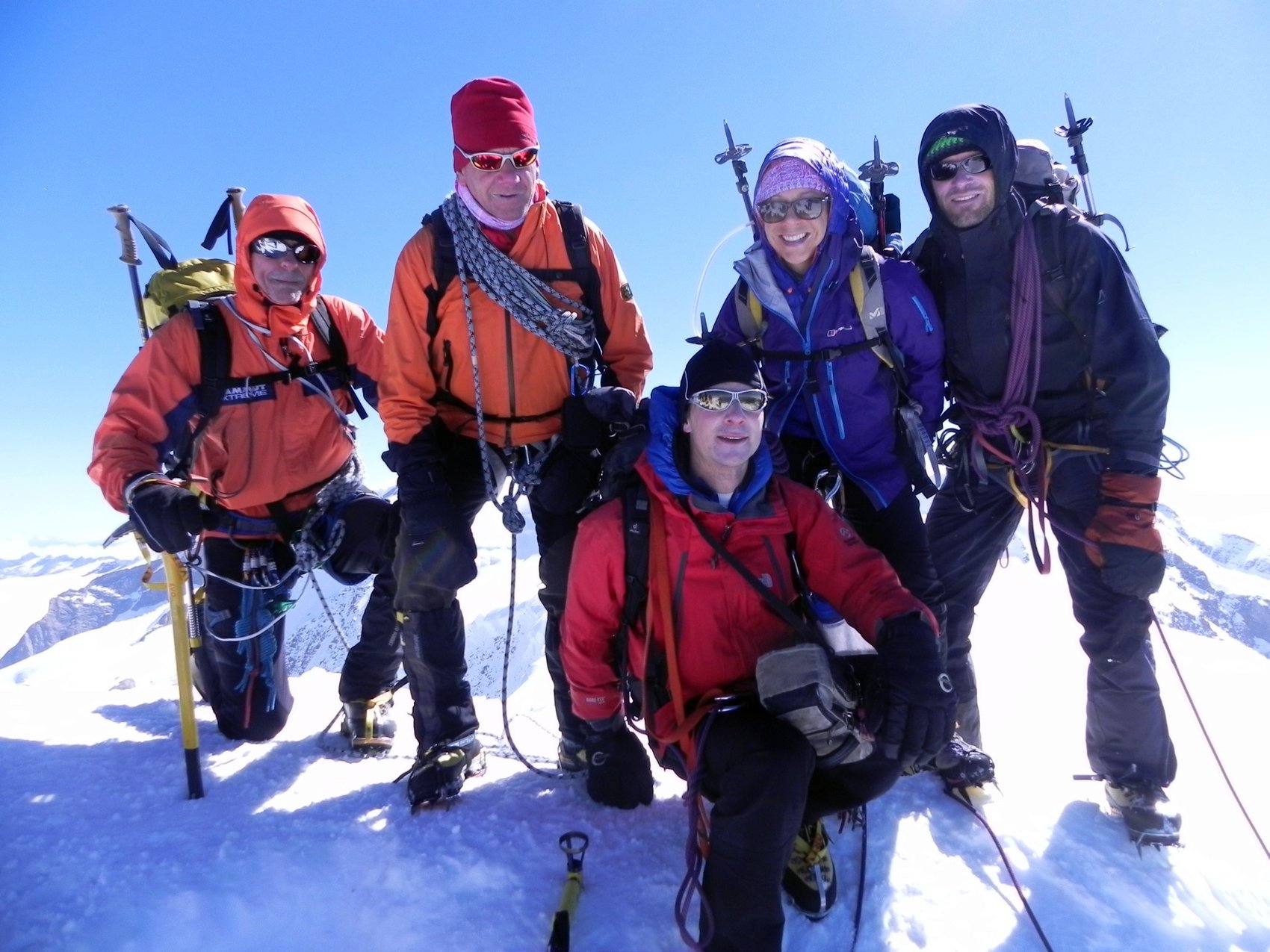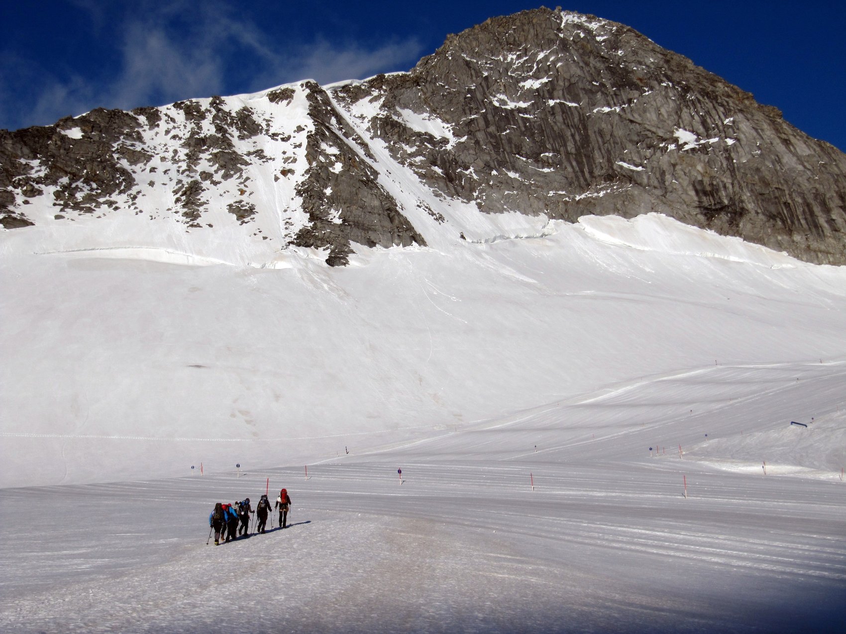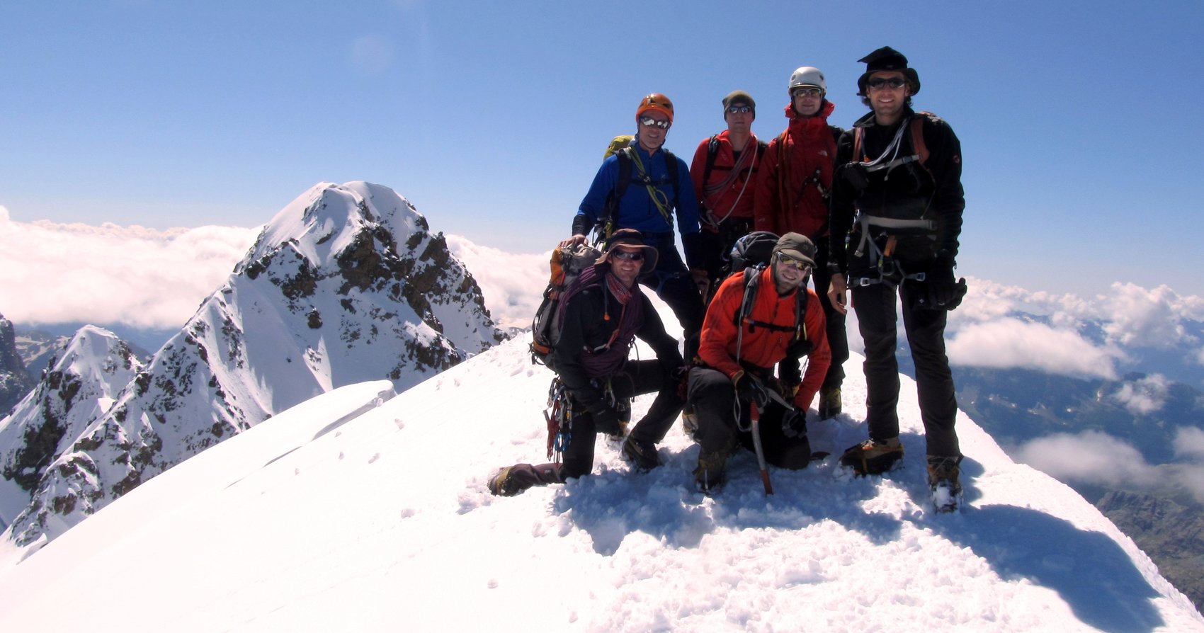 Mit unserem DAV-Bus fuhren wir die schöne Panoramastrecke über den Oberalppass nach Zermatt, wo wir am Campingplatz im Matratzenlager unsere erste Nacht verbrachten. Am frühen Morgen ging es mit der Klein?-?Matterhornbahn auf (3 883 m) und weiter zu Fuß in die Scharte zwischen Breithornzwillingen und Breithorn-Mittelgipfel. Winterliche Bedingungen, mit einem Mix aus Fels, Eis und mehreren Firnfeldern erwarteten uns beim Klettern des Westgrats zum Mittelgipfel. Unser zweiter Tourentag brachte einen schönen Firnanstieg auf den 4 223 m hohen Castor, unseren höchsten Gipfel dieser Unternehmung. Am dritten Tourentag erwartete uns eine schöne Felskletterei am Madonnen-Gipfel und ein ausgesetzter Firngrat auf den Hauptgipfel des Pollux. Am selben Tag ging es noch mit der Klein-Matterhornbahn zurück in die Zivilisation nach Zermatt.