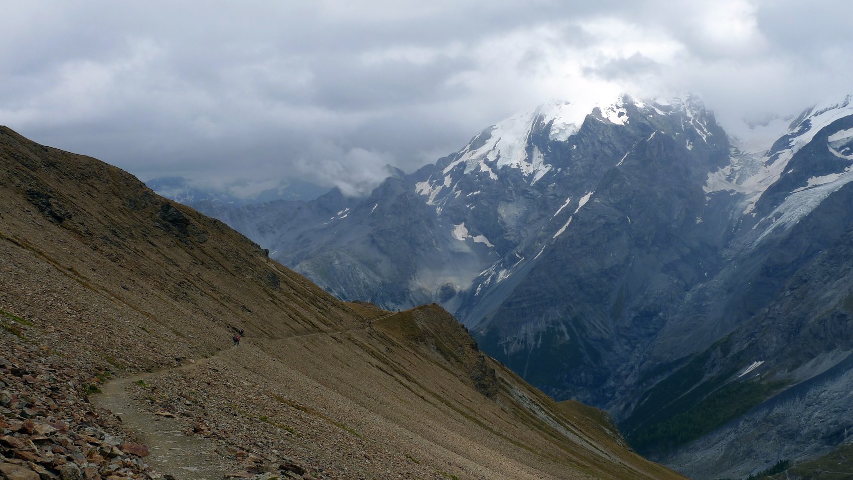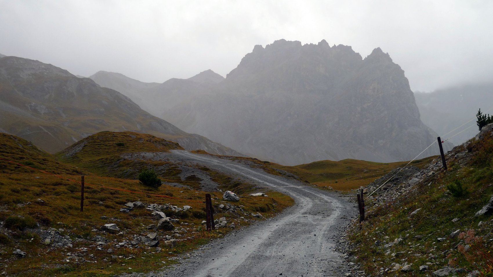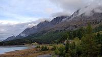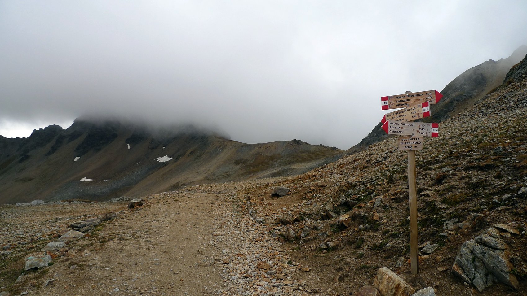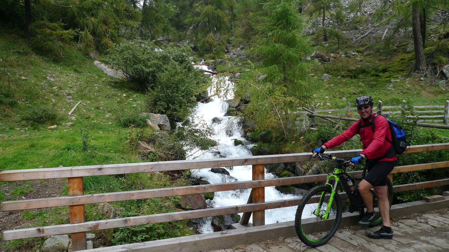 Am zweiten Tag ging’s über vom Quartier in Tschutt über sehr schöne Waalwege hinauf ins Matscher Tal und wieder hinab nach Mals, wo eine längere Rast anstand. Einen Achter zentrieren, der rechts und links in der Gabel anschlägt, dauert halt, und für den nächsten Abschnitt zum zweiten Quartier am Lago di Concano, über Münstertal und Val Mora galt es ordentlich Kohlehydrate zu tanken, standen doch über 1400 Hm auf dem Programm, nach den 800 vom Vormittag. Herrliche Landschaft, im Dauerregen und Nebel haben wir leider nicht viel davon gesehen. Entschädigt hat dann das üppige 4-gängige Menü in der Herberge.
