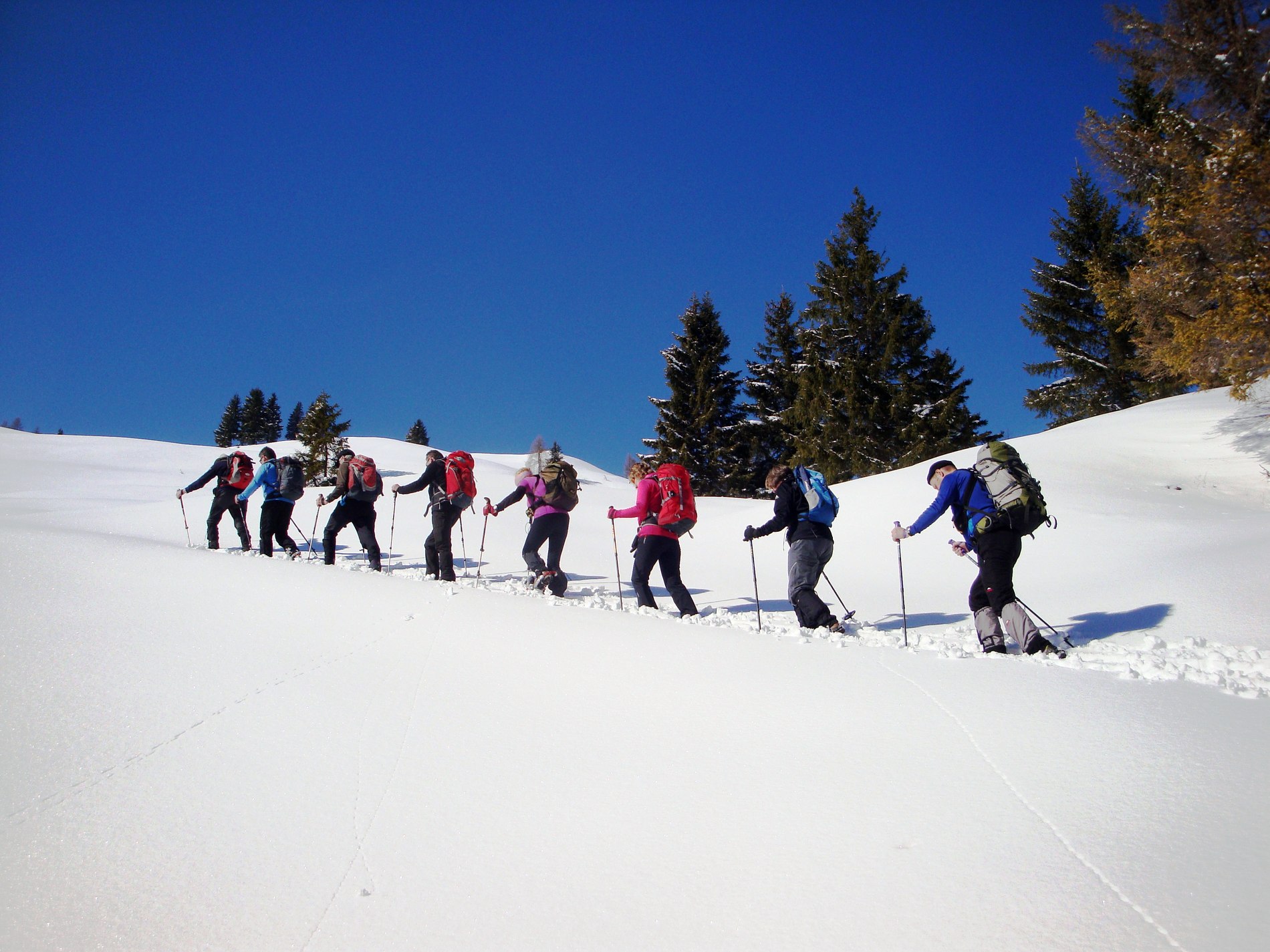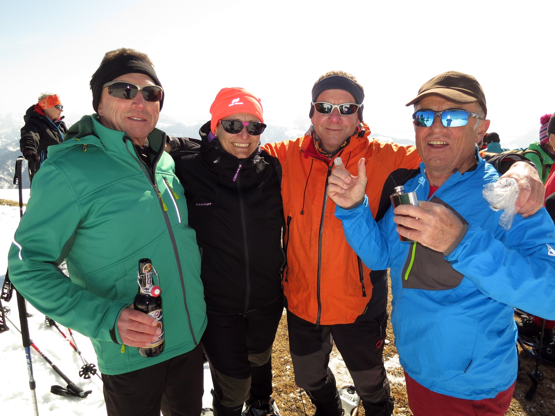 Am ersten Tag bestiegen die Skitourengeher das Gamsfeld (2 027 m) und die Schneeschuhwanderer den Bodenberg (1 523 m). Beim Abstieg bzw. der Abfahrt trafen sich beide Gruppen auf der Terrasse der Rinnbergalm, wo die Gipfelerfolge gleich begossen wurden. Der Abend stand im Zeichen gemütlichen Beisammenseins, zu dem der Gangkofer Hans mit der Ziehharmonika einen schönen Beitrag leistete. Am zweiten Tag wählten die Skitourengeher mit dem Korein (1 850 m) ein bekanntes Ziel, während die Schneeschuhgeher am Einberg (1 688 m) sehr einsam unterwegs waren. 23 glückliche und zufriedene Teilnehmer kamen am Abend wieder in Eggenfelden an.