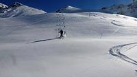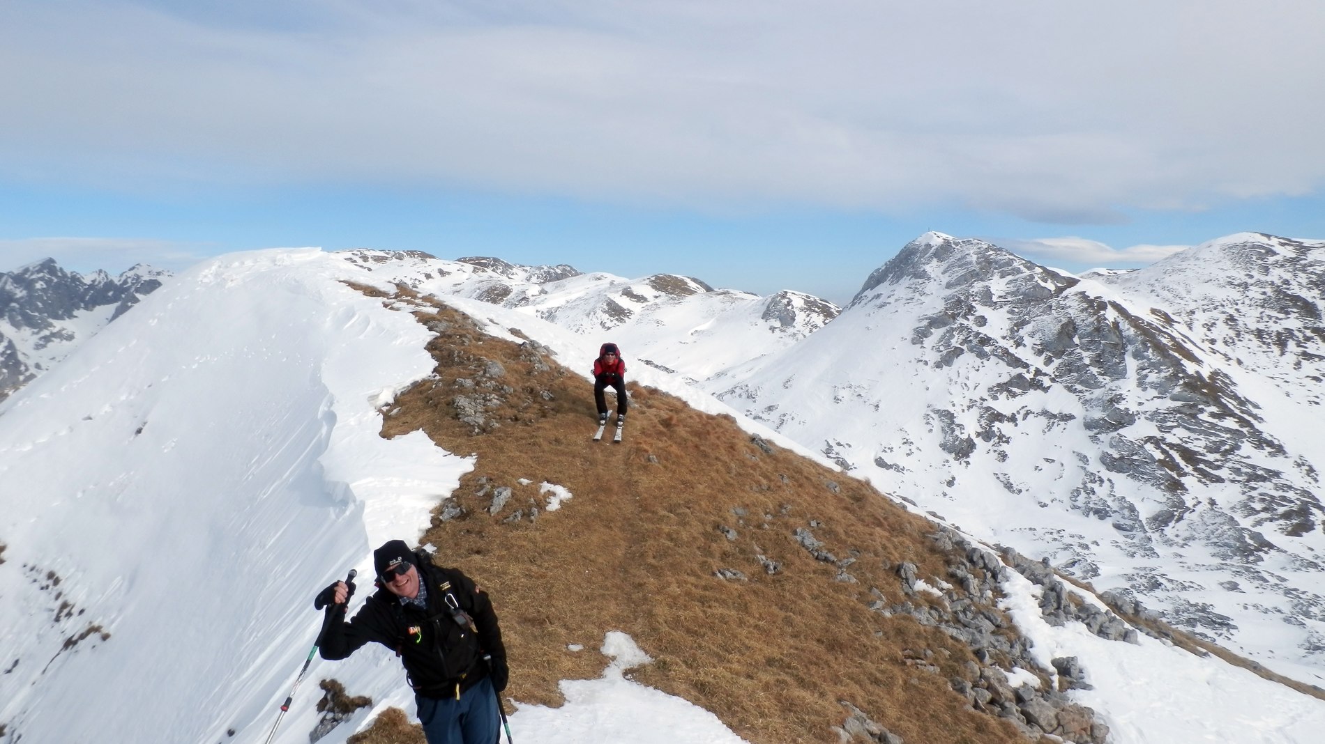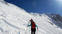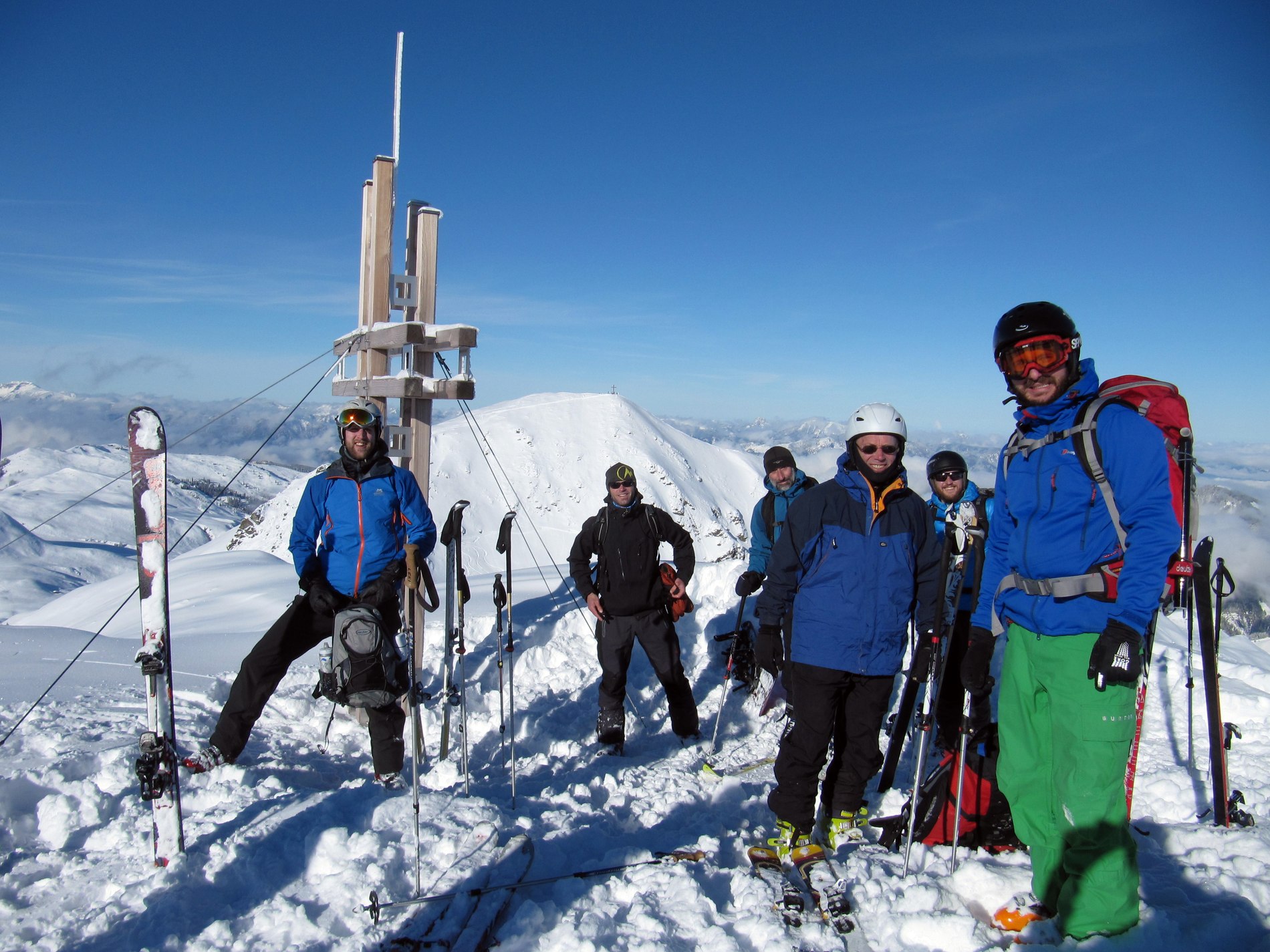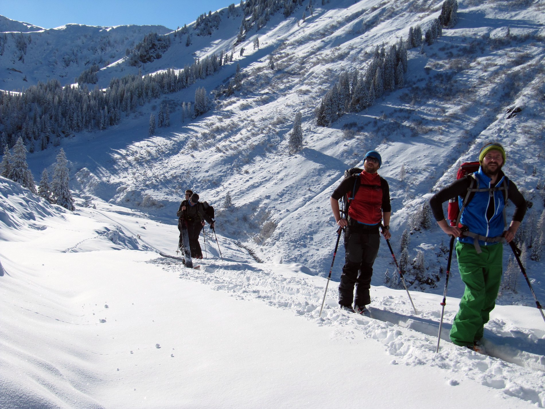 Eine bessere Schneelage war in den Kitzbüheler Alpen zu erwarten. Also planten wir die Besteigung des kleinen Beils von Osten aus dem Luegergraben aus. Über einen Fahrweg ging’s zunächst weit ins Tal hinein, bevor wir über die coupierten Westhänge richtig bergauf anstiegen. Richtig viel Schnee lag auch hier nicht, aber es reichte grad so für so manchen staubenden Tiefschneeschwung. Eine kleine Lehreinheit in Lawinenkunde gab’s am Gipfel, als ein Skifahrer am Südhang des Lempersbergs eine Lawine auslöste, was aber glücklicherweise ohne Folgen blieb.