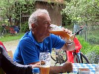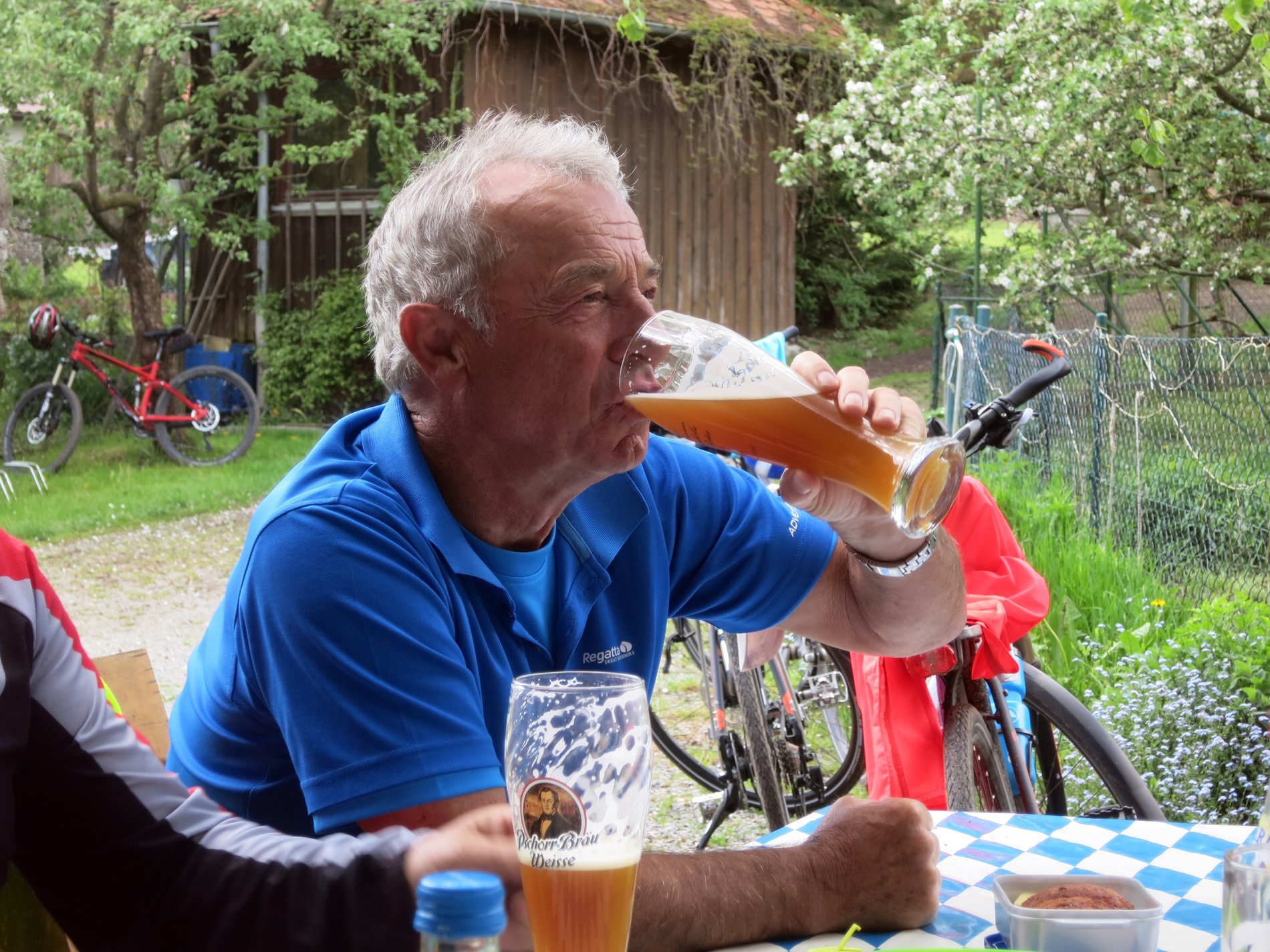 Witterungsbedingt mussten wir diese Traditionsunternehmung um eine Woche verschieben, wodurch sich die Teilnehmerzahl etwas verringerte. Bei annehmbarem Wetter radelten wir eine große Runde, bis wir die Kleinbrauerei Hermann Vilzmann im Burgholz erreichten. Die Sonne kam heraus, so dass wir im Freien das schmackhafte Bier und unsere mitgebrachte Brotzeit genießen konnten.