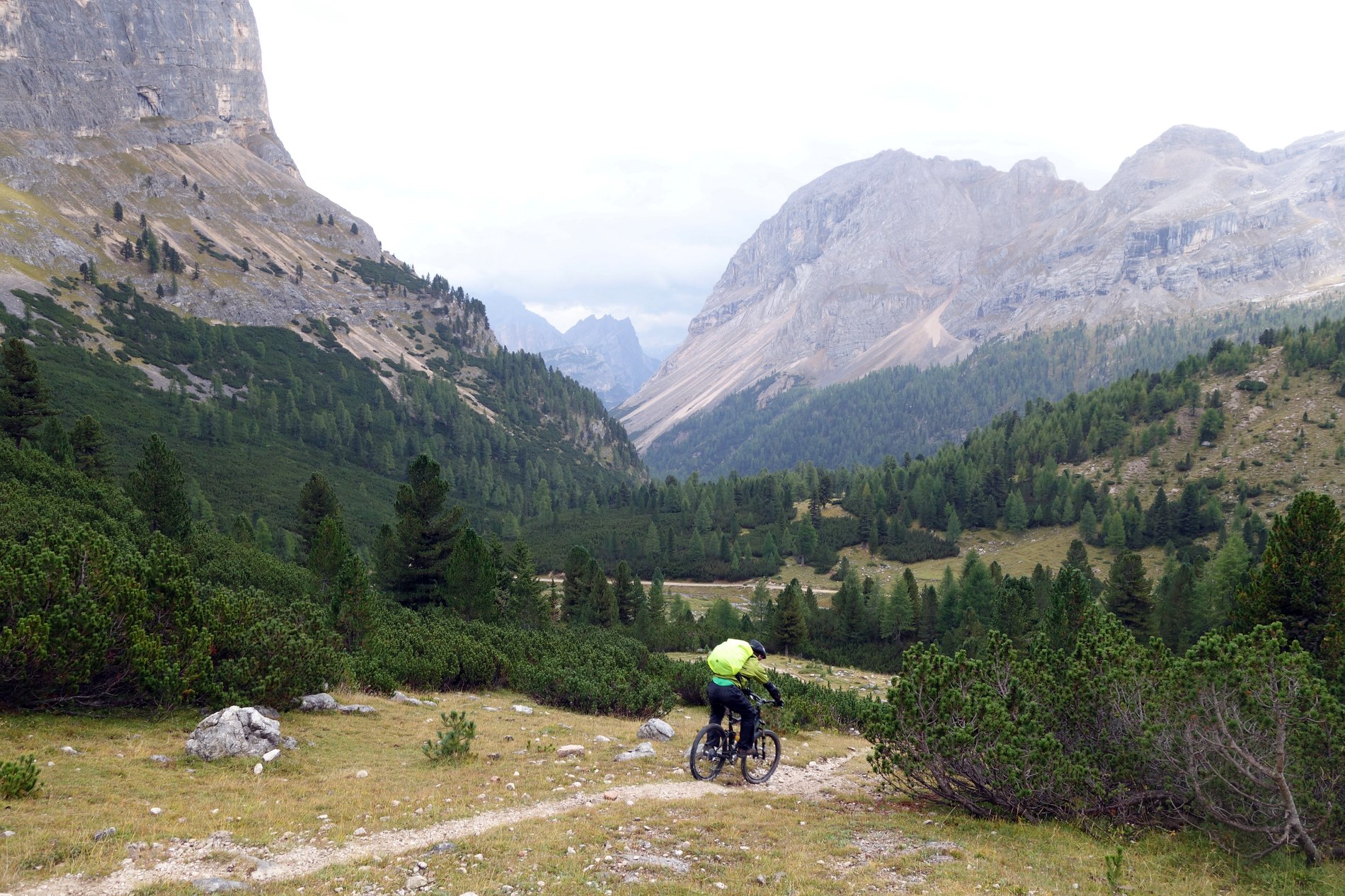 Das Schöne am Mountainbikefahren ist, daß man auch in wenigen Tagen weit rumkommt. In den Dolomiten bedeutet das auch steile Anstiege und super Trails auf langen Abfahrten.