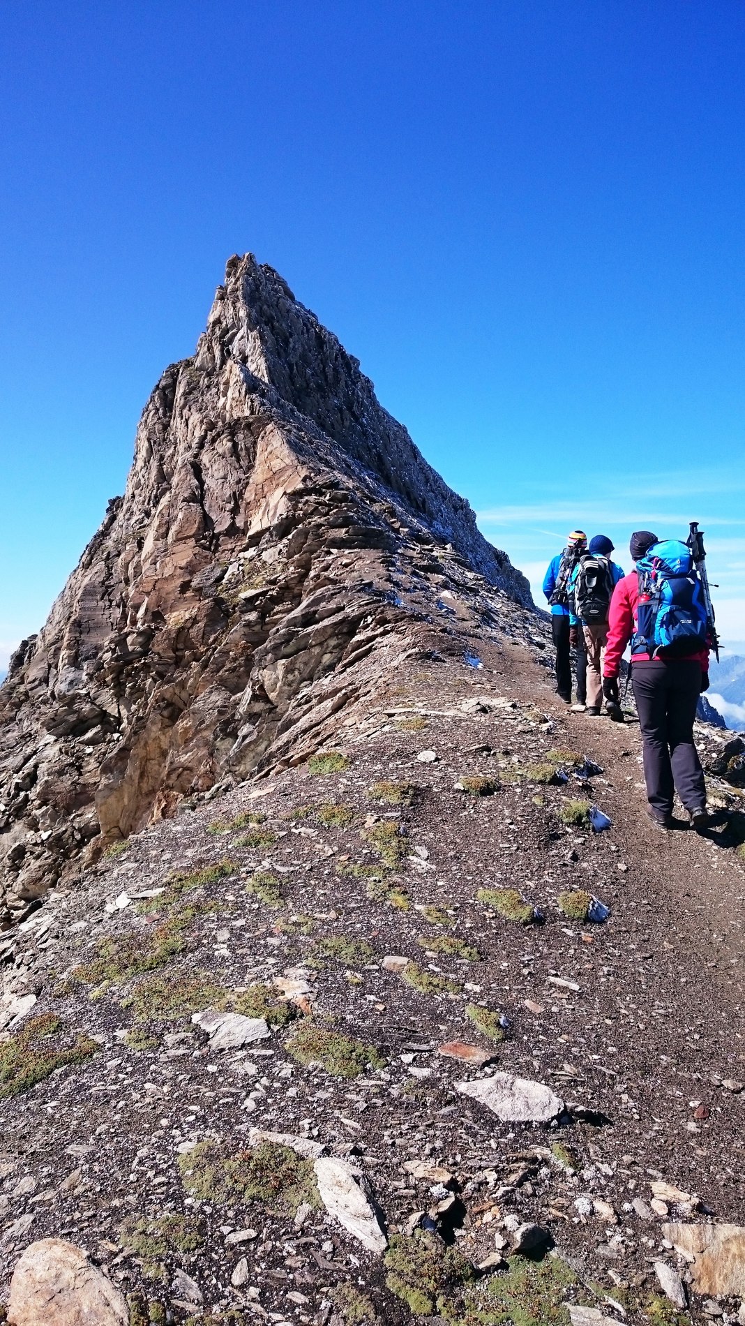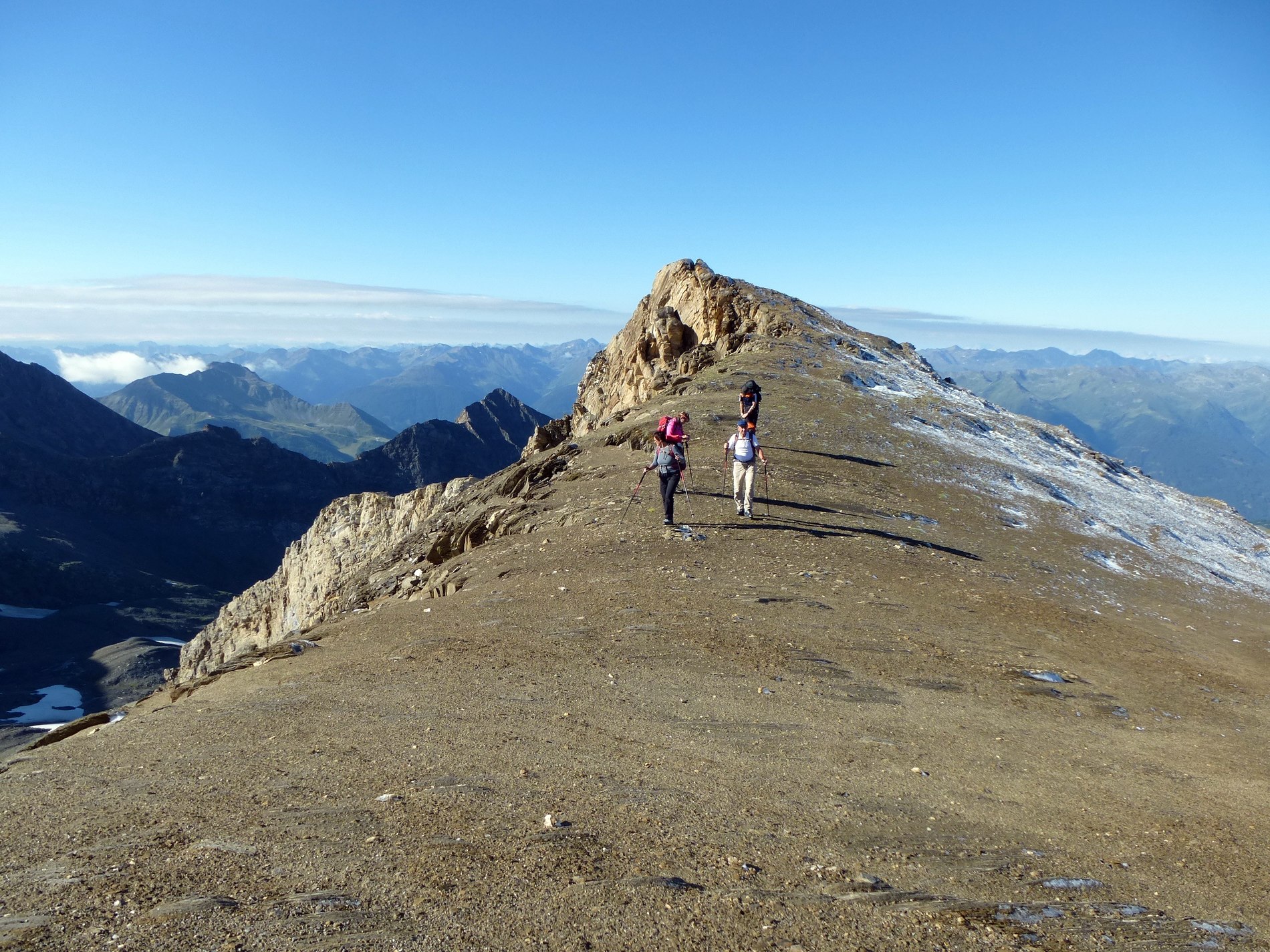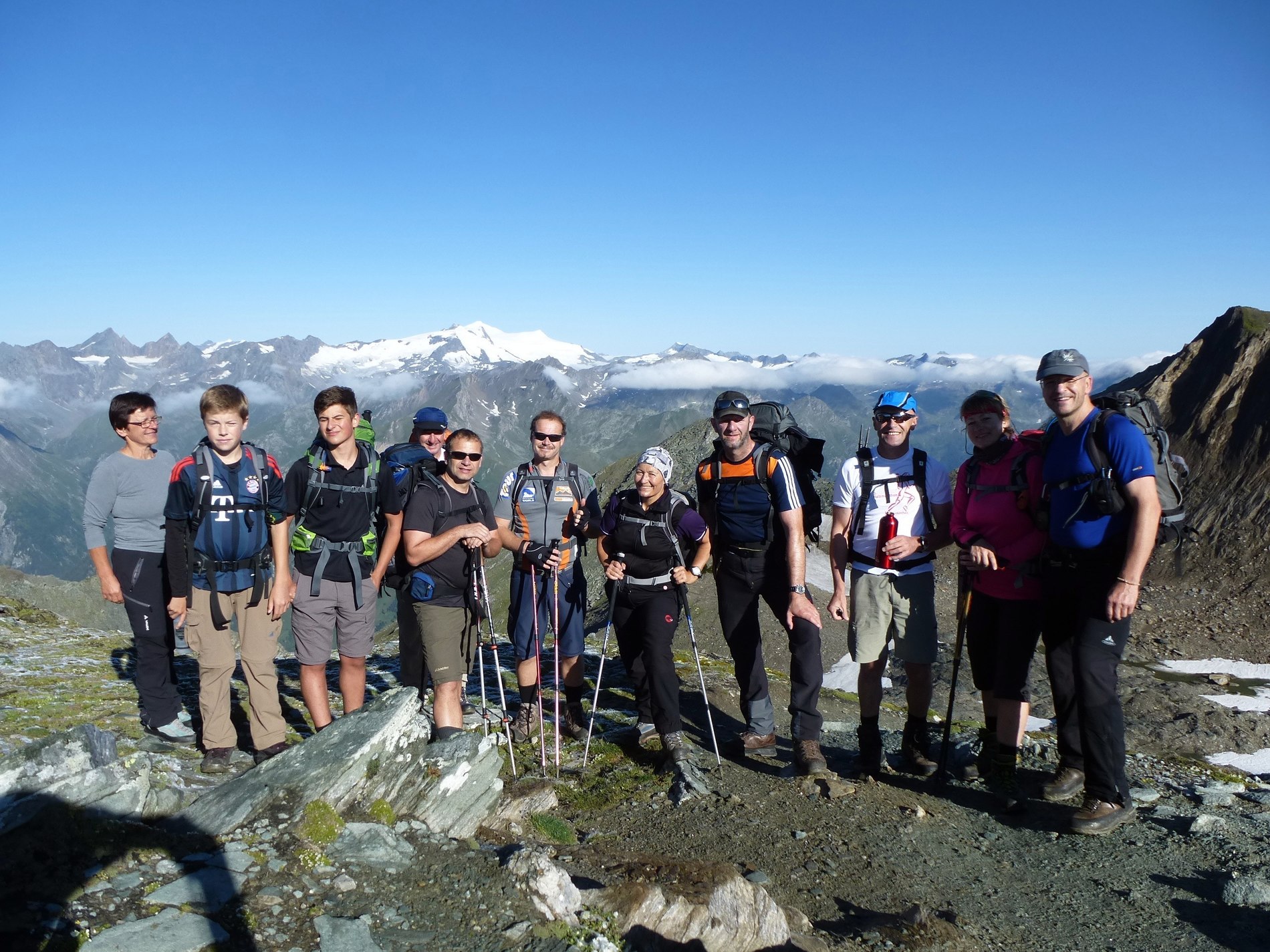 Unser Gipfeltag war wolkenlos und sonnig, trotzdem waren die Temperaturen früh morgens am Gefrierpunkt. Unser erster Gipfel waren die Wellachköpfe (2 960 m), bei denen unsere beiden Jüngsten mit 15 Jahren fest vorausmarschierten.