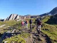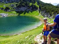 Der Abstieg am Sonntag ist erst einmal ein Aufstieg zum Murspitzsattel, wo wir einige Gämsen aufscheuchen. Ab hier geht’s dann nur noch bergab, erst zur Mittagspause am Duisitzkarsee und dann zur Eschachalm.