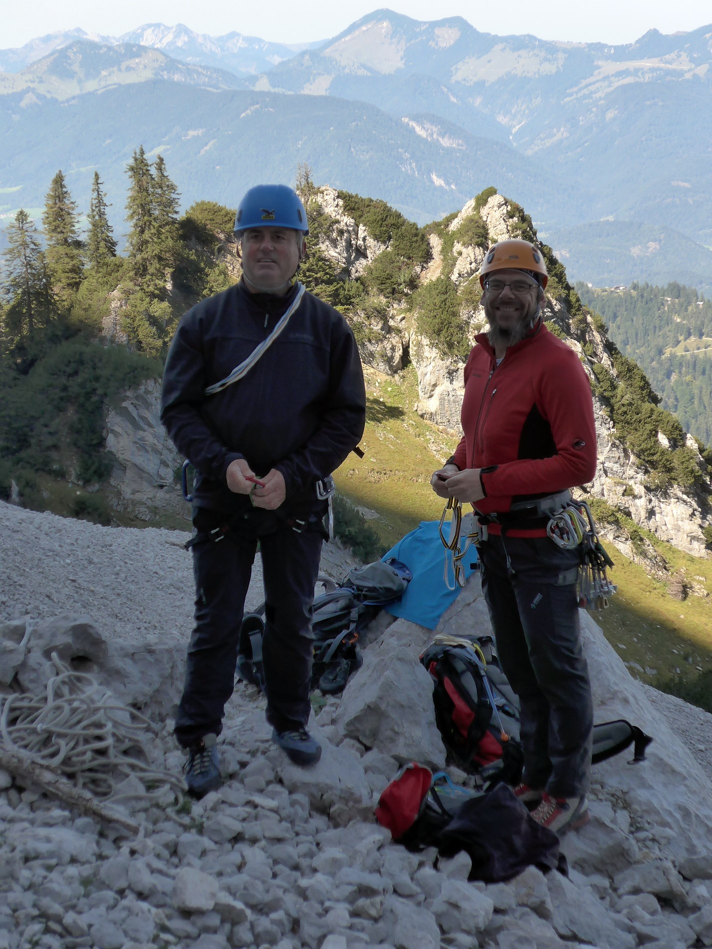 Am nächsten Tag wurden wir von den Sonnenstrahlen geweckt. Nach dem Frühstück stiegen Claudia und Sigi Bloos sowie Valentin und Marcel Kießling zum Gipfel des Spitzsteins (1 596 m) auf und genossen den eindrucksvollen Blick über die Chiemgauer Alpen und das benachbarte Kaisergebirge. Die anderen Bergsteiger erkundeten die Gegend in Hüttennähe.