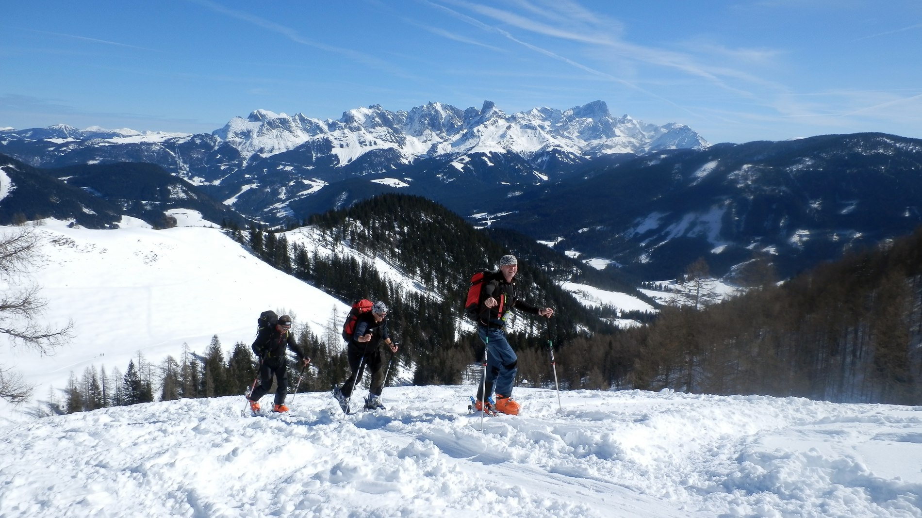 Ein Skitourenklassiker in den Berchtesgadener Bergen ist die kleine Reib’n. Den Anstieg verkürzten wir uns mit der Jennerbahn. Bei traumhaftem, wenn auch etwas windigem Wetter, erfolgte der Anstieg zum Schneibstein. Nach einer kurzen Rast querten wir Richtung Weitschartenkopf, nach der Abfahrt zum Seeleinsee folgte der Anstieg zum Fagstein, über die Rossfelder und die Skipiste ging’s wieder ins Tal. Bei einer zünftigen Einkehr fand der Tag seinen Ausklang.