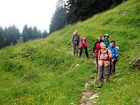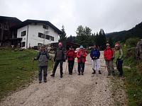 Der Abstieg zur Zwiesel-Alm dauerte dann noch eine knappe Stunde. Kaum angekommen, hat es dann richtig fest zu regnen angefangen, was unserer guten Laune aber keinen Abbruch tat. Bei strahlendem Sonnenschein ging es dann zum Parkplatz weiter.