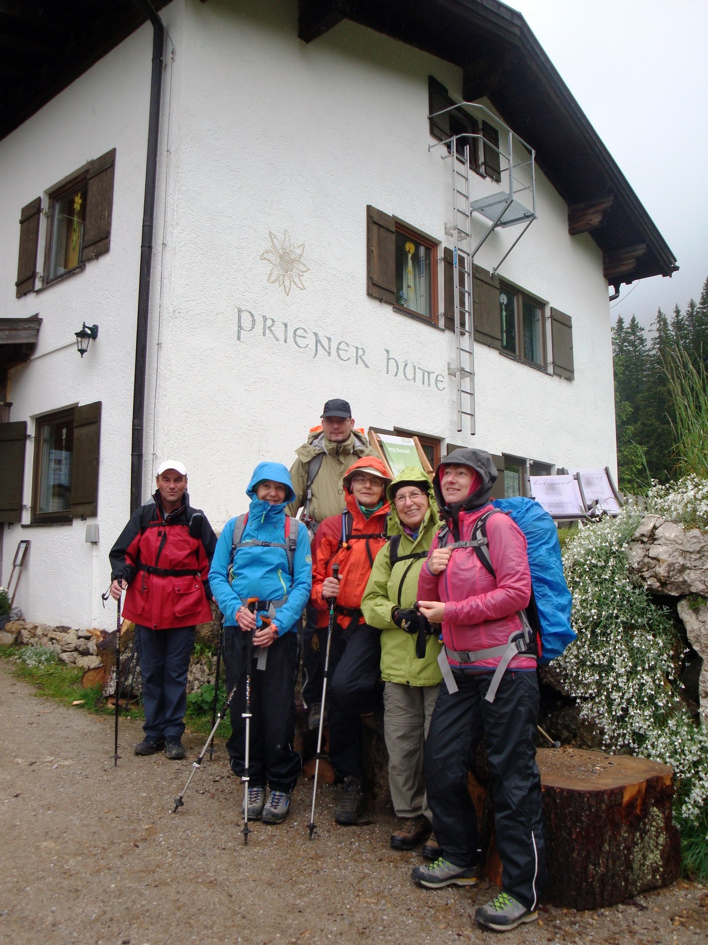 Sollen wir fahren oder nicht? Das war die Frage. Der Wetterbericht war nicht einladend, noch weniger die Anfahrt. So wählten wir auch einen kurzen Anstieg zur Priener Hütte. Aber nach einer guten halben Stunde Gehzeit kam die Sonne raus? – da hat die Welt gleich ganz anders ausgeschaut. Abends haben wir uns von der Wirtin Moni gut verwöhnen lassen, beim karamellisierten Kaiserschmarrn konnte jemand nicht mehr auf die Eröffnung des Nachspeisenbuffets warten?. Nach einem super Frühstück ging’s los, wieder in Regenmontur, die uns schnell nichts mehr ausgemacht hat. Mehr als leichter Nieselregen war es nicht. So sind wir erst mal zum Breitenstein rüber und dann zum Geigelstein. Gemütlich wurde es dann in der Rossalm, da gabs einen warmen Kaffee und Schnittlauchbrote mit wildem Schnittlauch. Wieder von innen und außen gewärmt, ging’s dann rüber zum Weitlahner, vom dem wir dann über die Dalsenalmen vorbei an wildem Wasser abgestiegen sind. Wir durften am Sonntag auch Claudias Geburtstag feiern. Wir waren uns danach einig: Es war gut, dass wir gefahren sind.