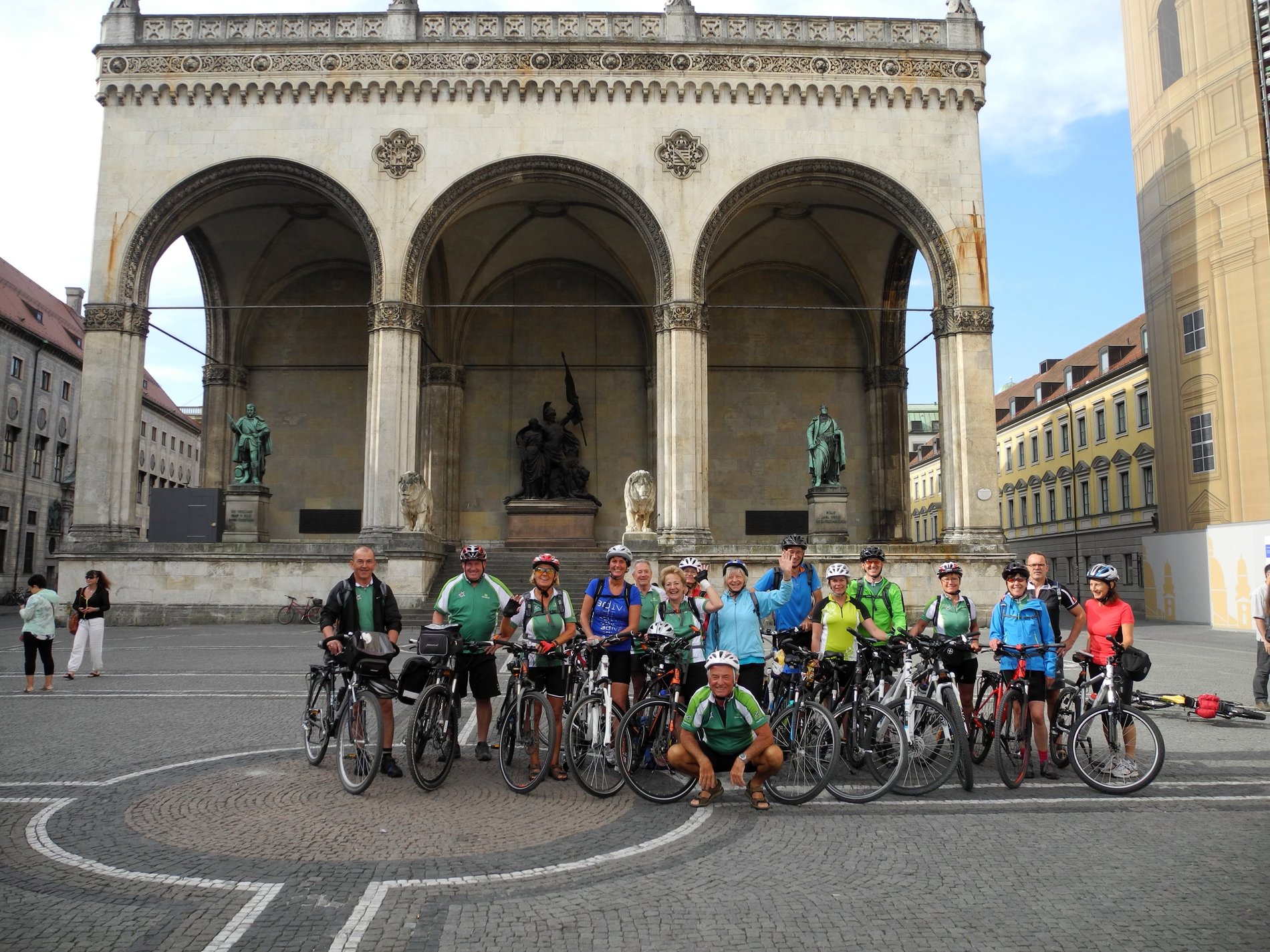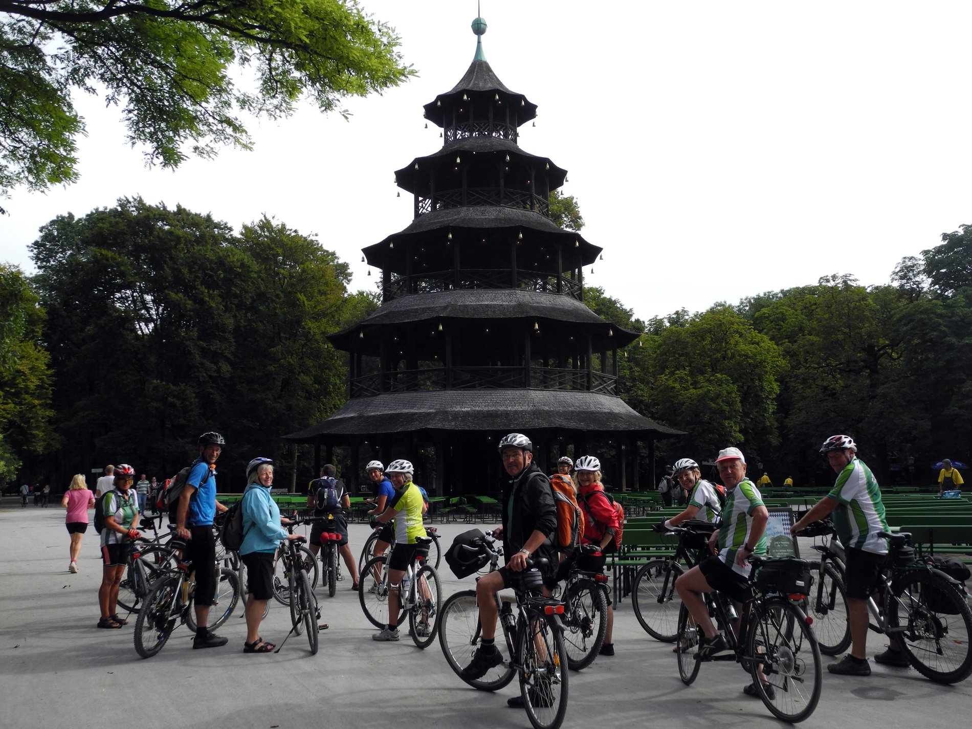 Vom Ostbahnhof ging es durch das beschauliche Haidhausen und durch das Isartor ins Zentrum. Am „Alten Peter“ begann unsere kleine Stadtrundfahrt. Viele wunderten sich, wie ruhig sich die sonst so hektische Innenstadt um diese Uhrzeit präsentierte. Dann ging es vom Marienplatz zum Hofgarten und durch das Siegestor in den „Englischen Garten“, wo wir die Eisbach-Surfer bewundern konnten. Vorbei am Chinesischen Turm und Kleinhesseloher See erreichten wir die Isar und an ihr entlang Freising. Bei einer kleinen Stadtrundfahrt durch die Bischofsstadt gab es einige Kleinode zu entdecken. Weiter ging es immer entlang des Isarradweges bis nach Landshut. Aufgrund von Gleisbauarbeiten mussten wir unsere Radtour gezwungenermaßen bis nach Geisenhausen verlängern, wo wir in letzter Sekunde den Zug erreichten. Immerhin 120 Rad-Kilometer kamen an diesem Tag zusammen. Kein Wunder, dass die Teilnehmer mehr oder weniger müde in Eggenfelden eintrafen.